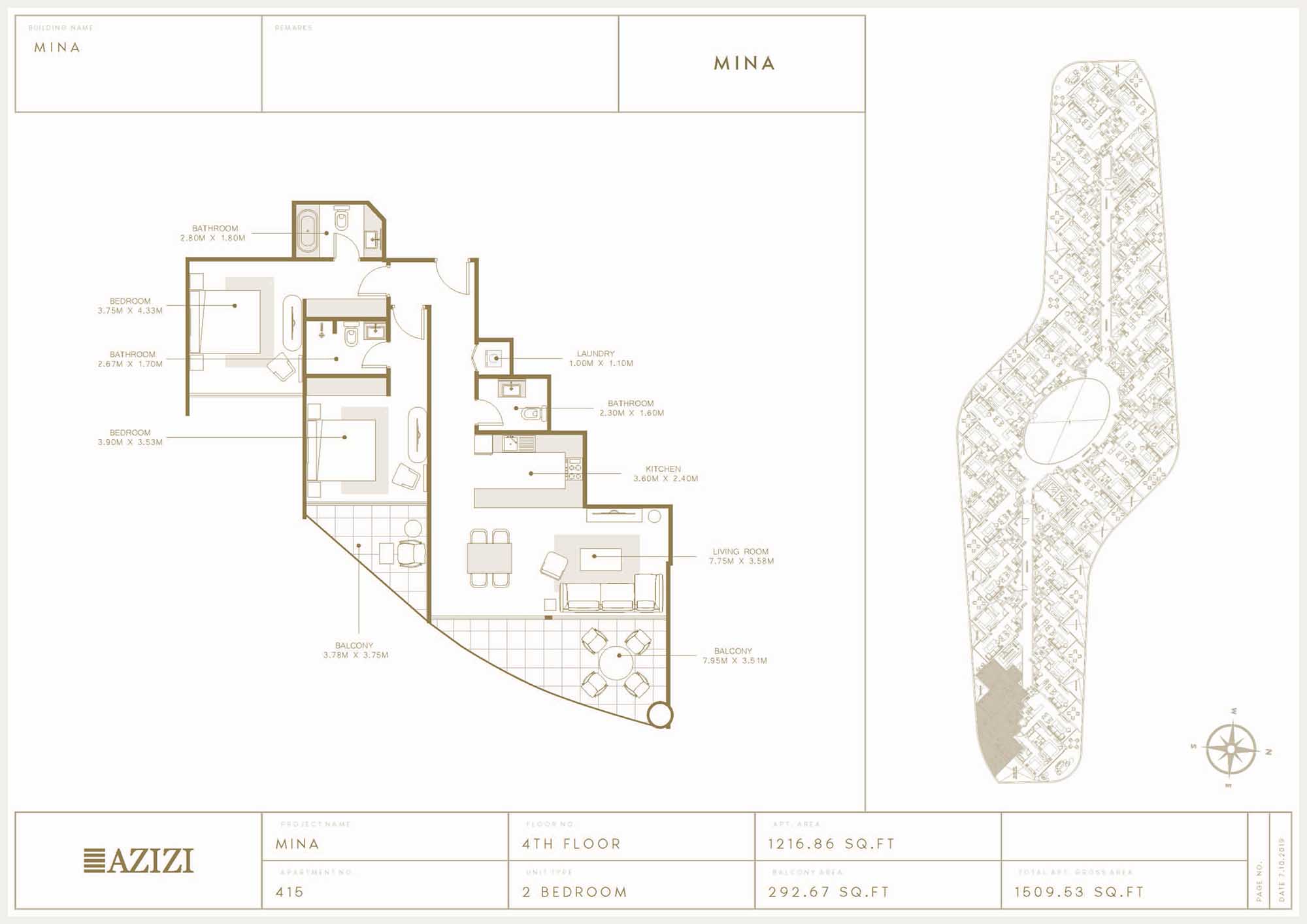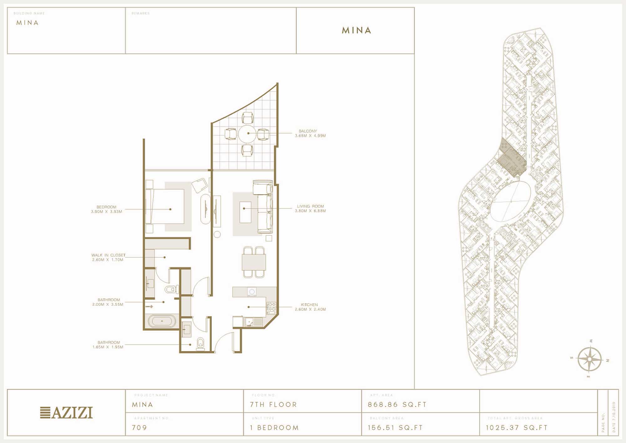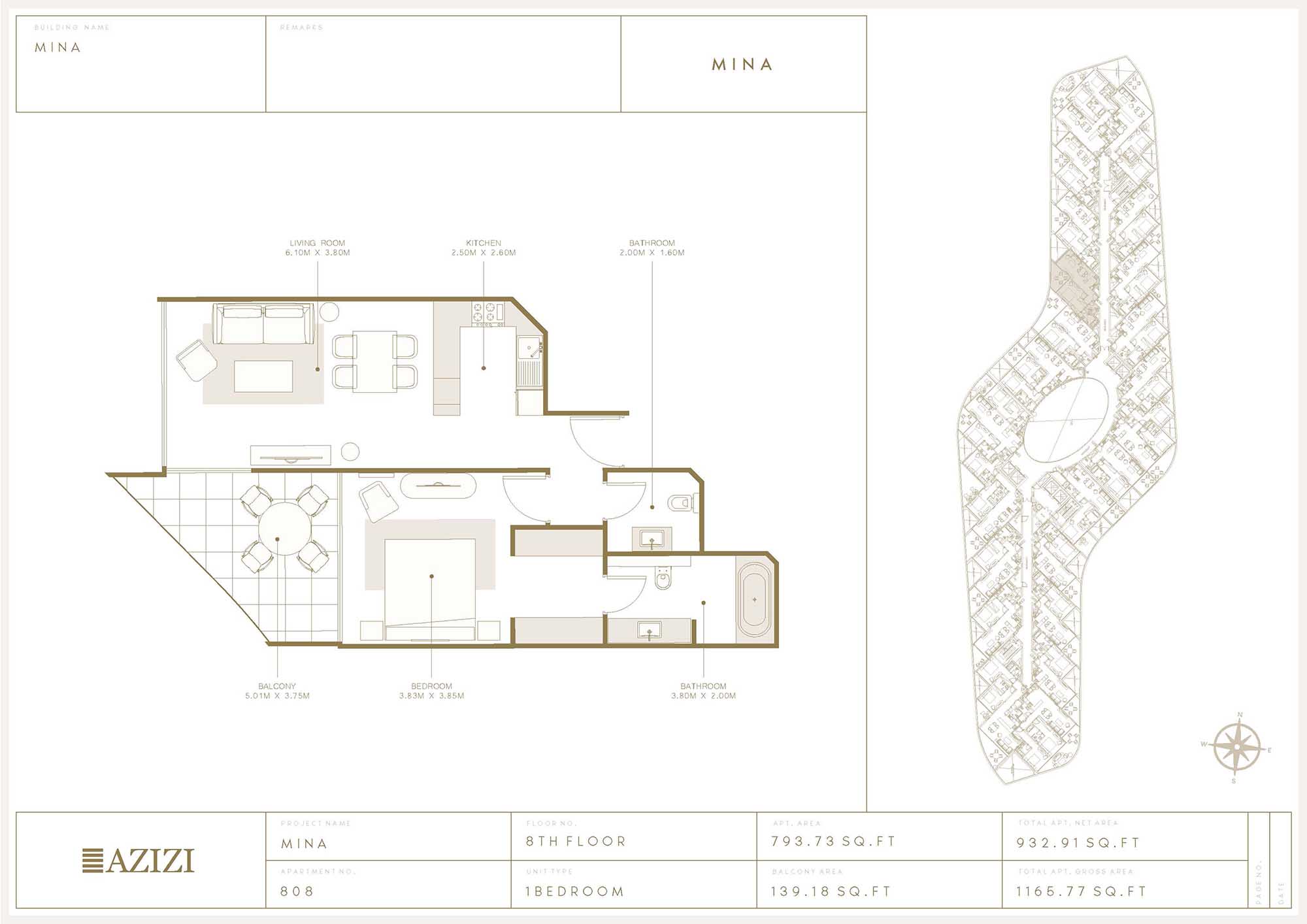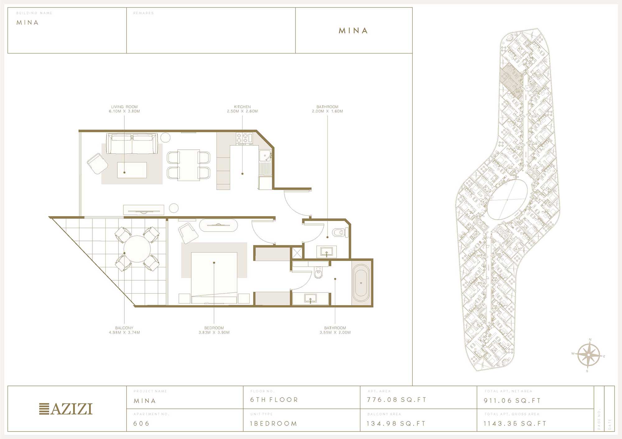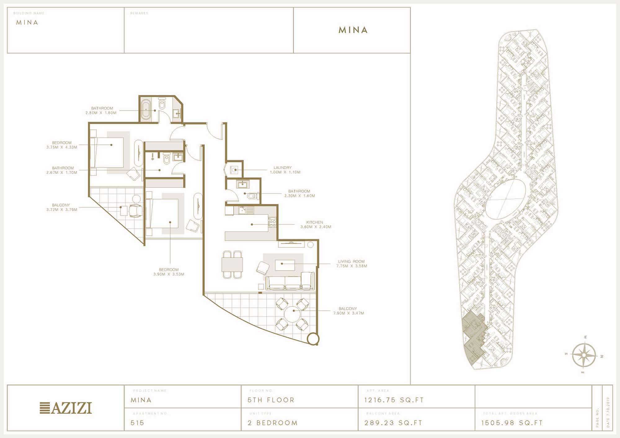 Azizi Mina provides spacious floor plan options offering waterfront designed 1 & 2-bedroom apartments and penthouses located in the serene community of the Palm Jumeirah. The development offers a total no of 178 elegant designed waterfront homes that further offers 120 one-bedroom, and 54 two-bedroom apartments along with four penthouses that are spread over an area of the total gross area of more than 2.3 hectares. While at the same time offers stunning views of the sea, deluxe amenities and interiors in a perfect backdrop of nature and style.