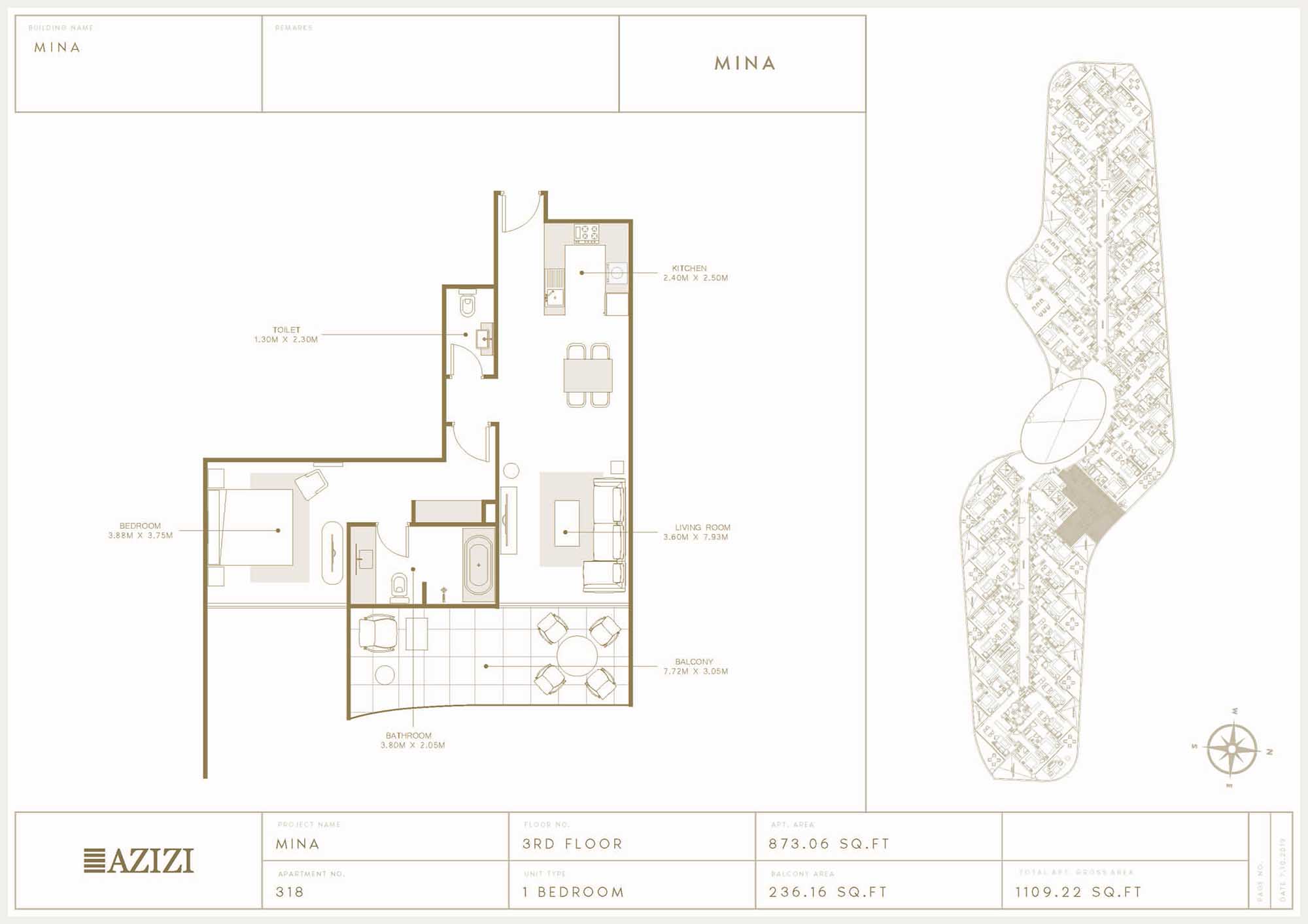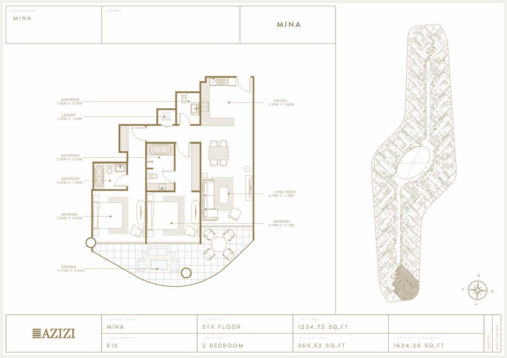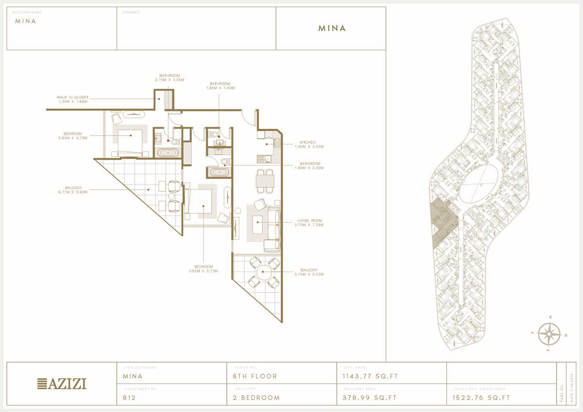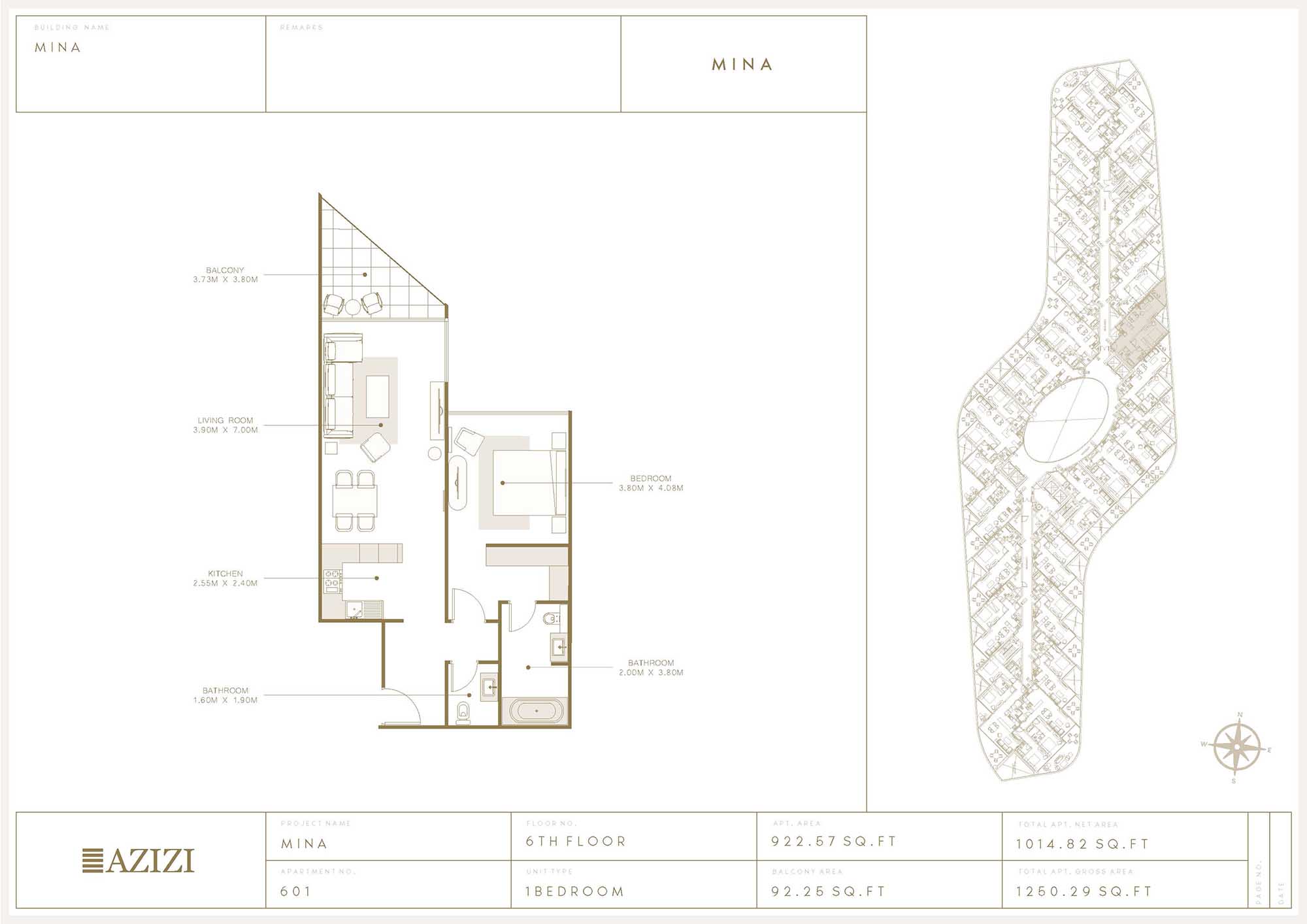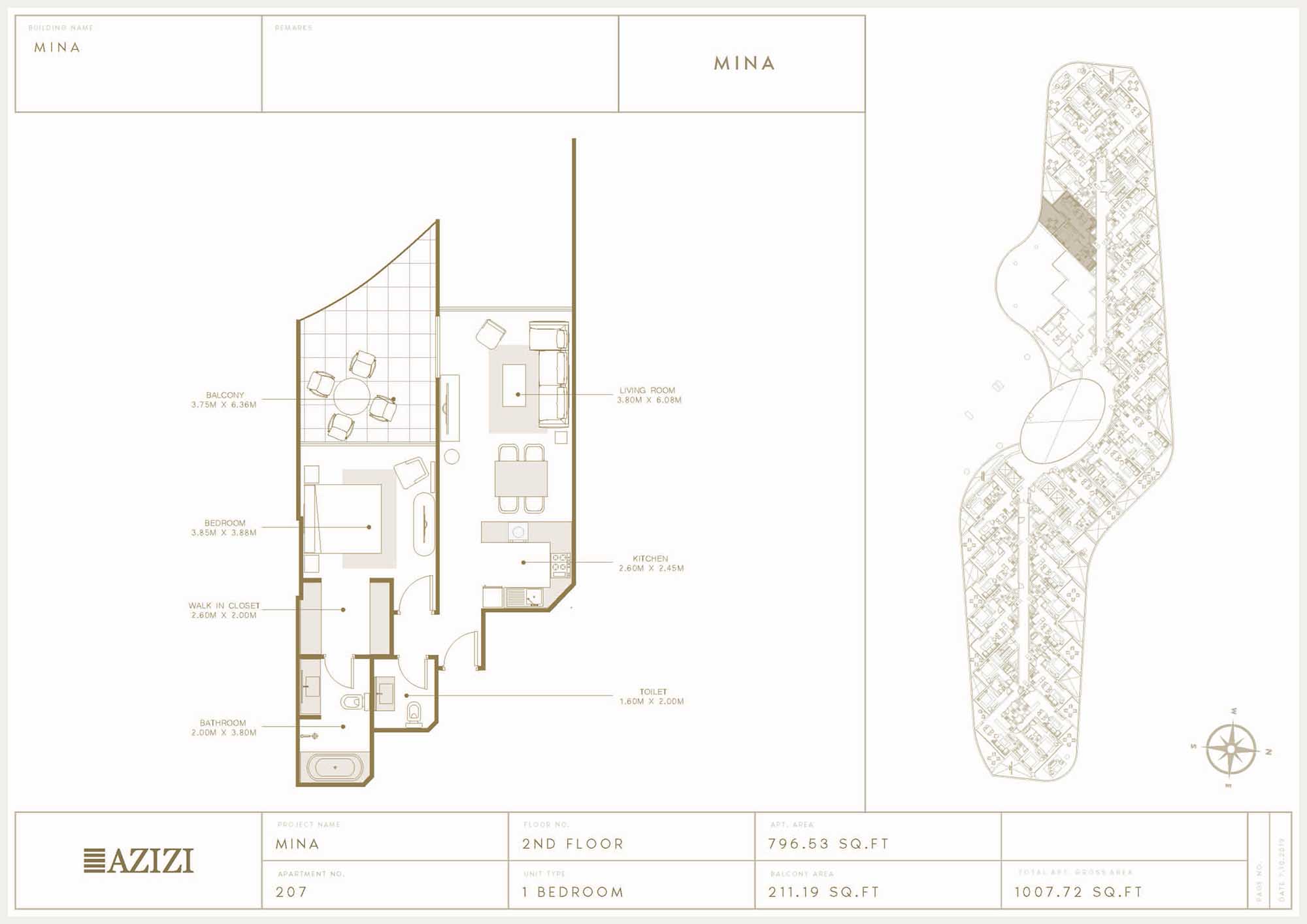 Azizi Mina provides spacious floor plan options offering waterfront designed 1 & 2-bedroom apartments and penthouses located in the serene community of the Palm Jumeirah. The development offers a total no of 178 elegant designed waterfront homes that further offers 120 one-bedroom, and 54 two-bedroom apartments along with four penthouses that are spread over an area of the total gross area of more than 2.3 hectares. While at the same time offers stunning views of the sea, deluxe amenities and interiors in a perfect backdrop of nature and style.