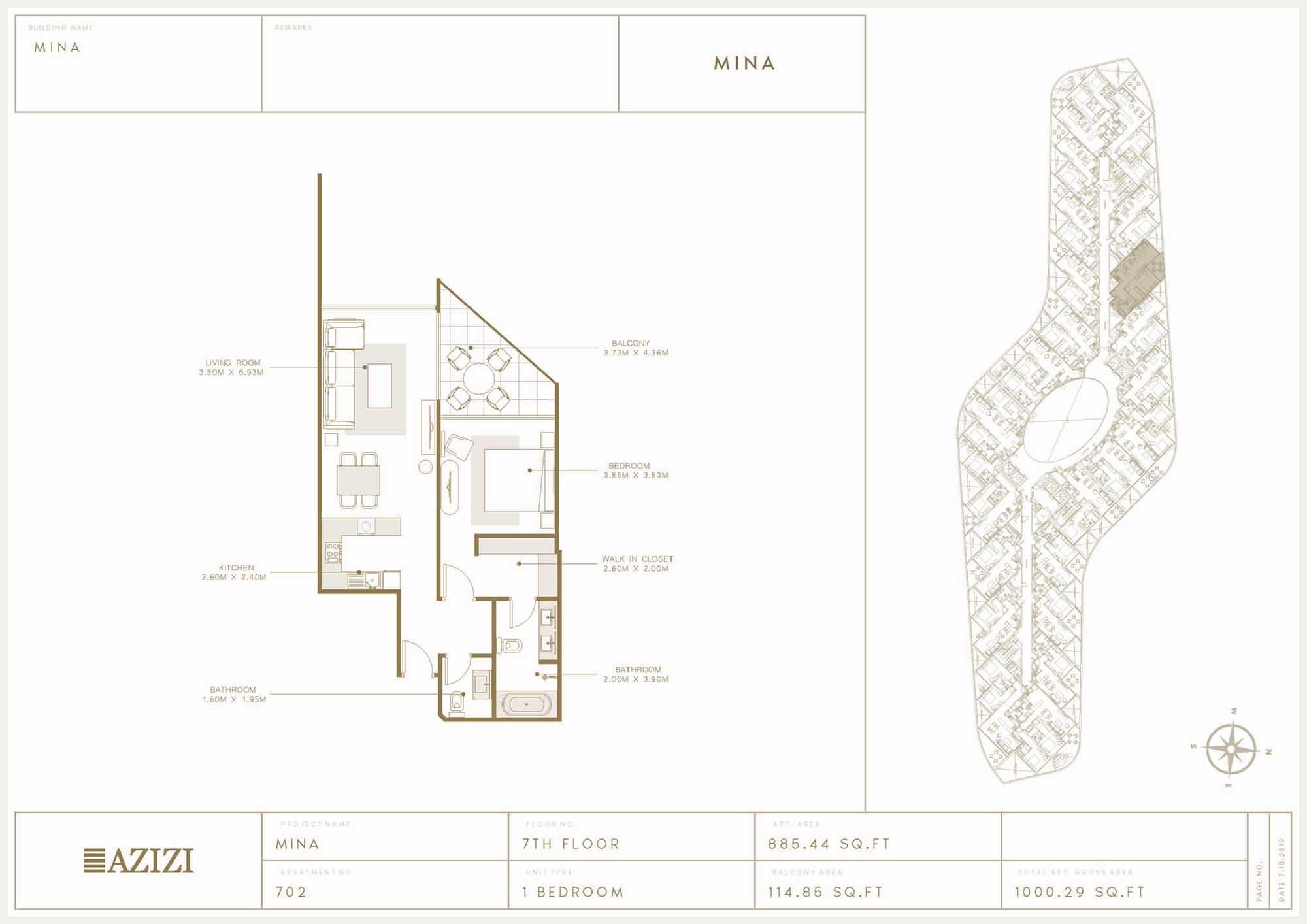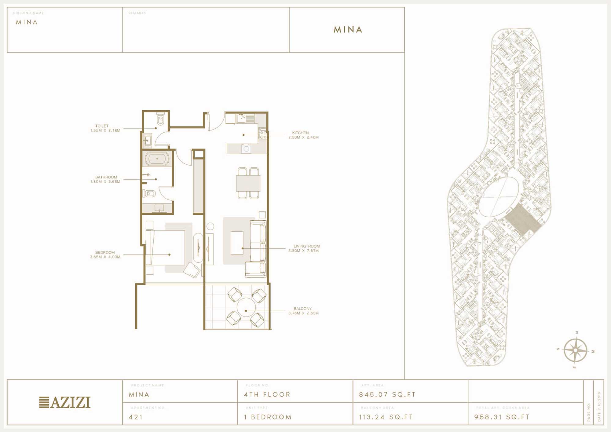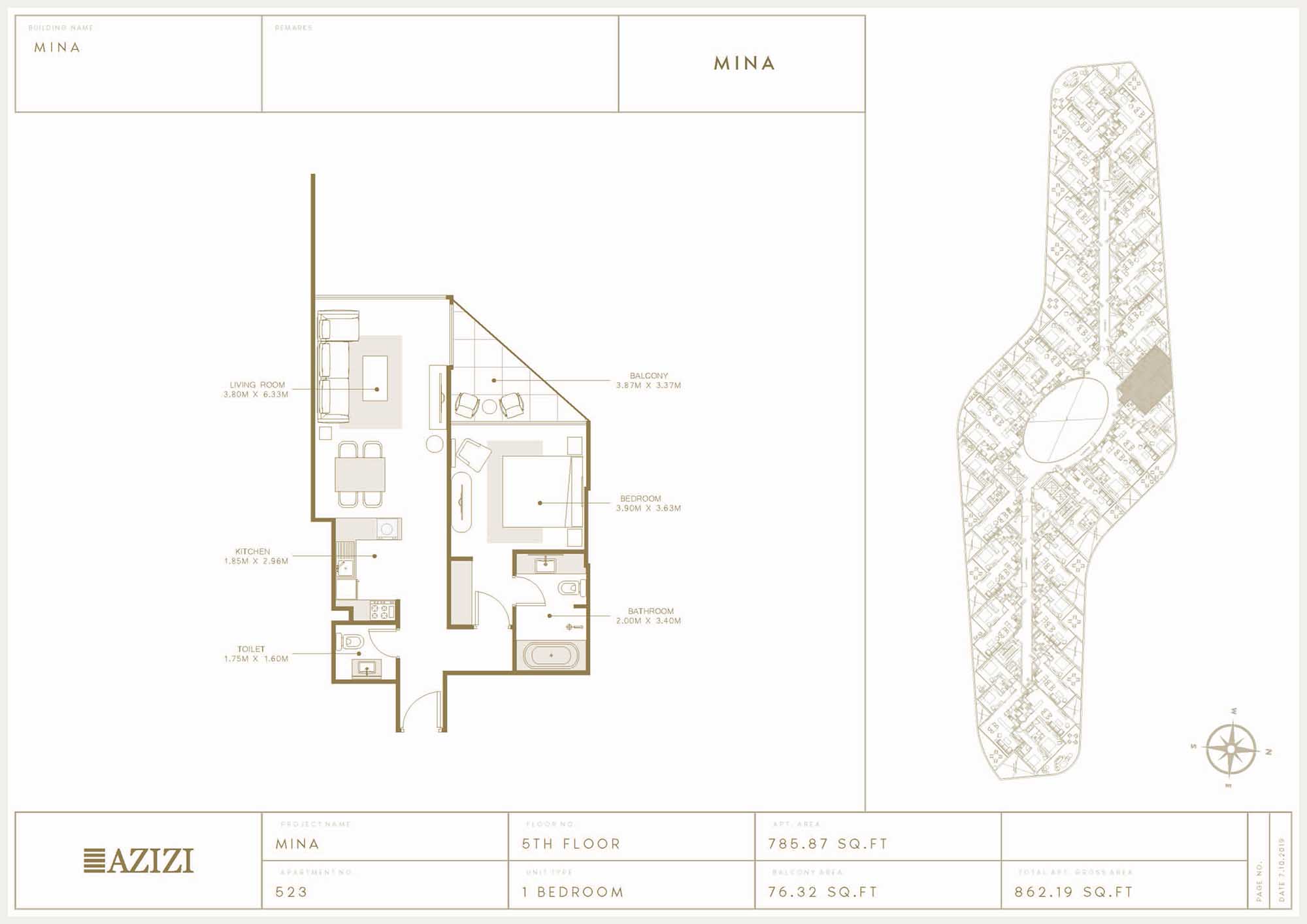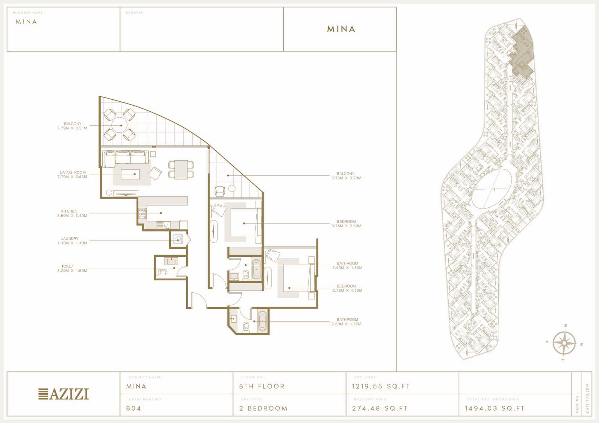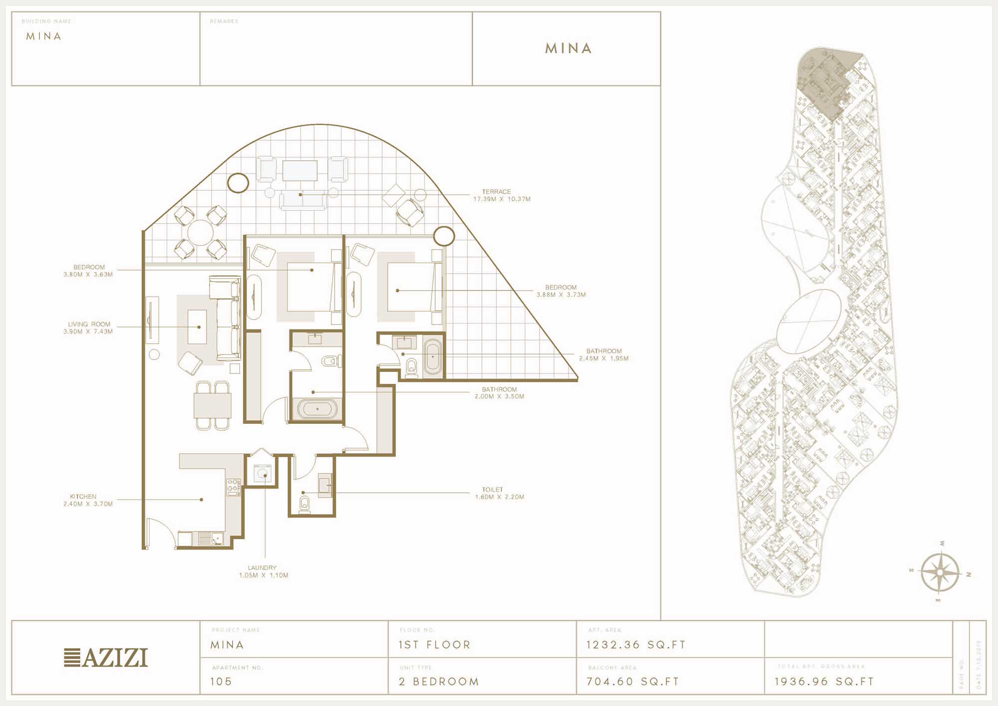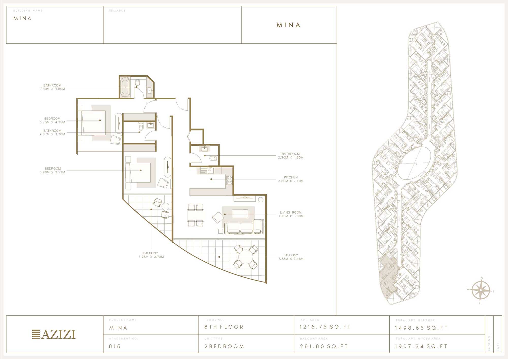 Azizi Mina provides spacious floor plan options offering waterfront designed 1 & 2-bedroom apartments and penthouses located in the serene community of the Palm Jumeirah. The development offers a total no of 178 elegant designed waterfront homes that further offers 120 one-bedroom, and 54 two-bedroom apartments along with four penthouses that are spread over an area of the total gross area of more than 2.3 hectares. While at the same time offers stunning views of the sea, deluxe amenities and interiors in a perfect backdrop of nature and style.
