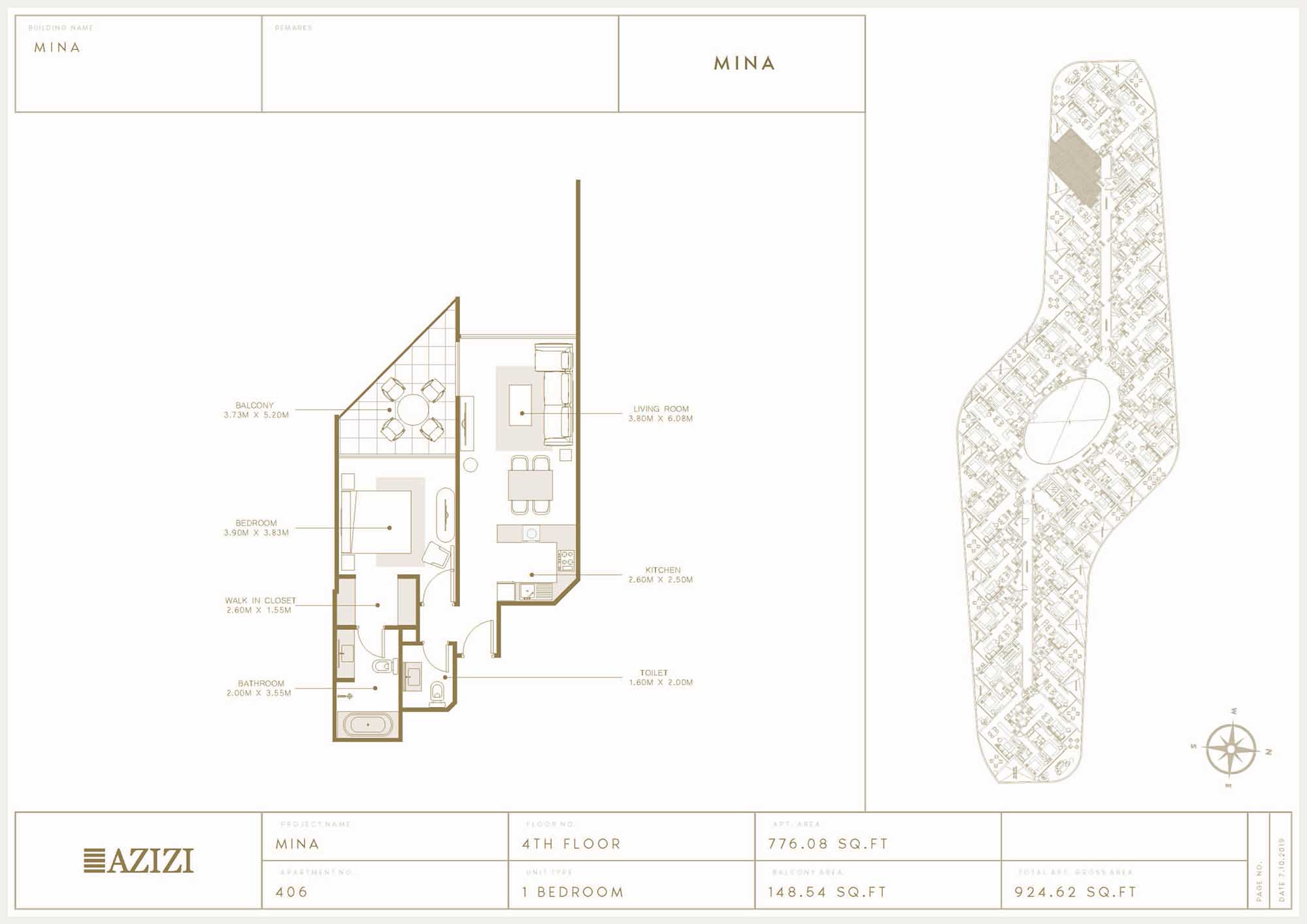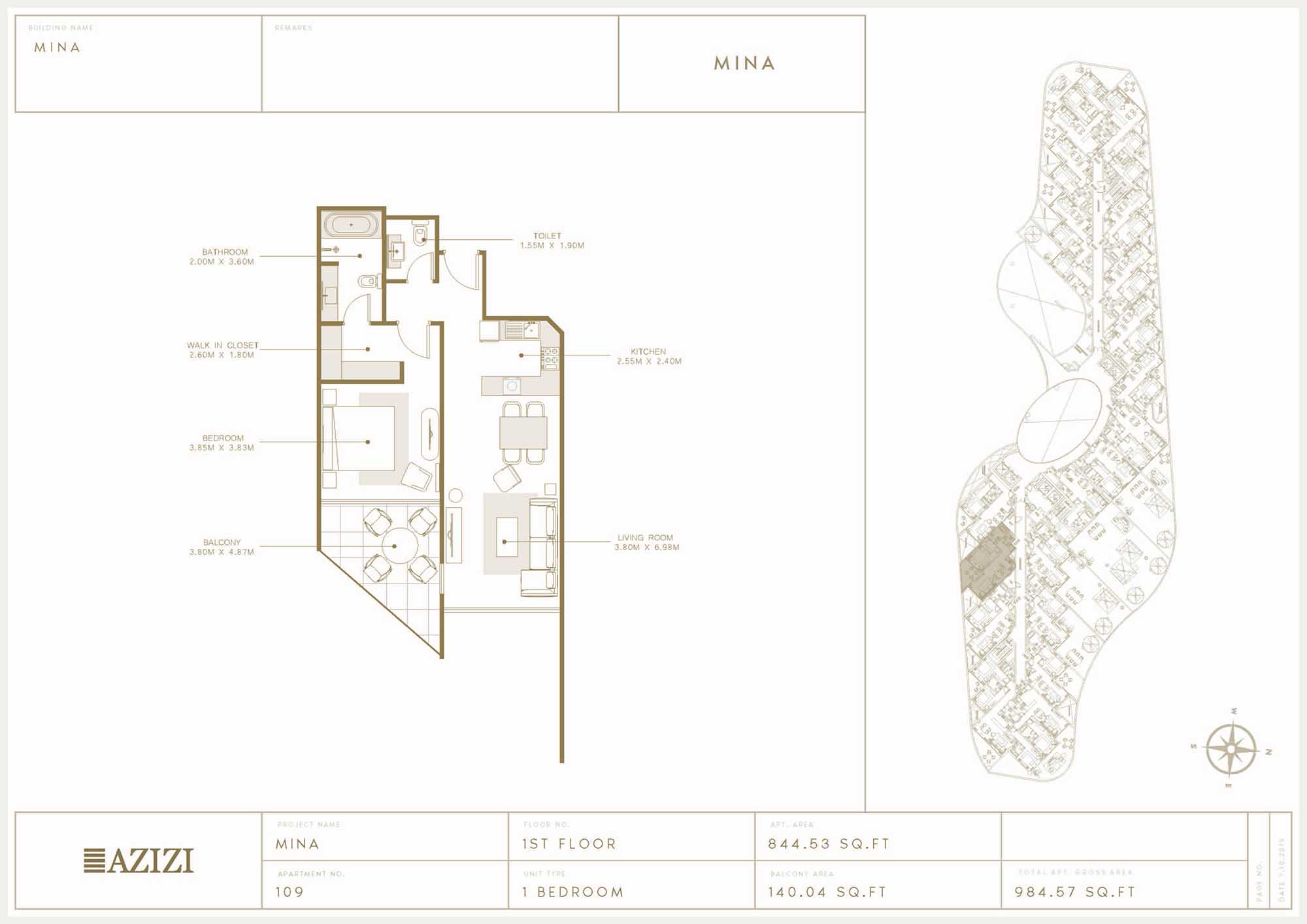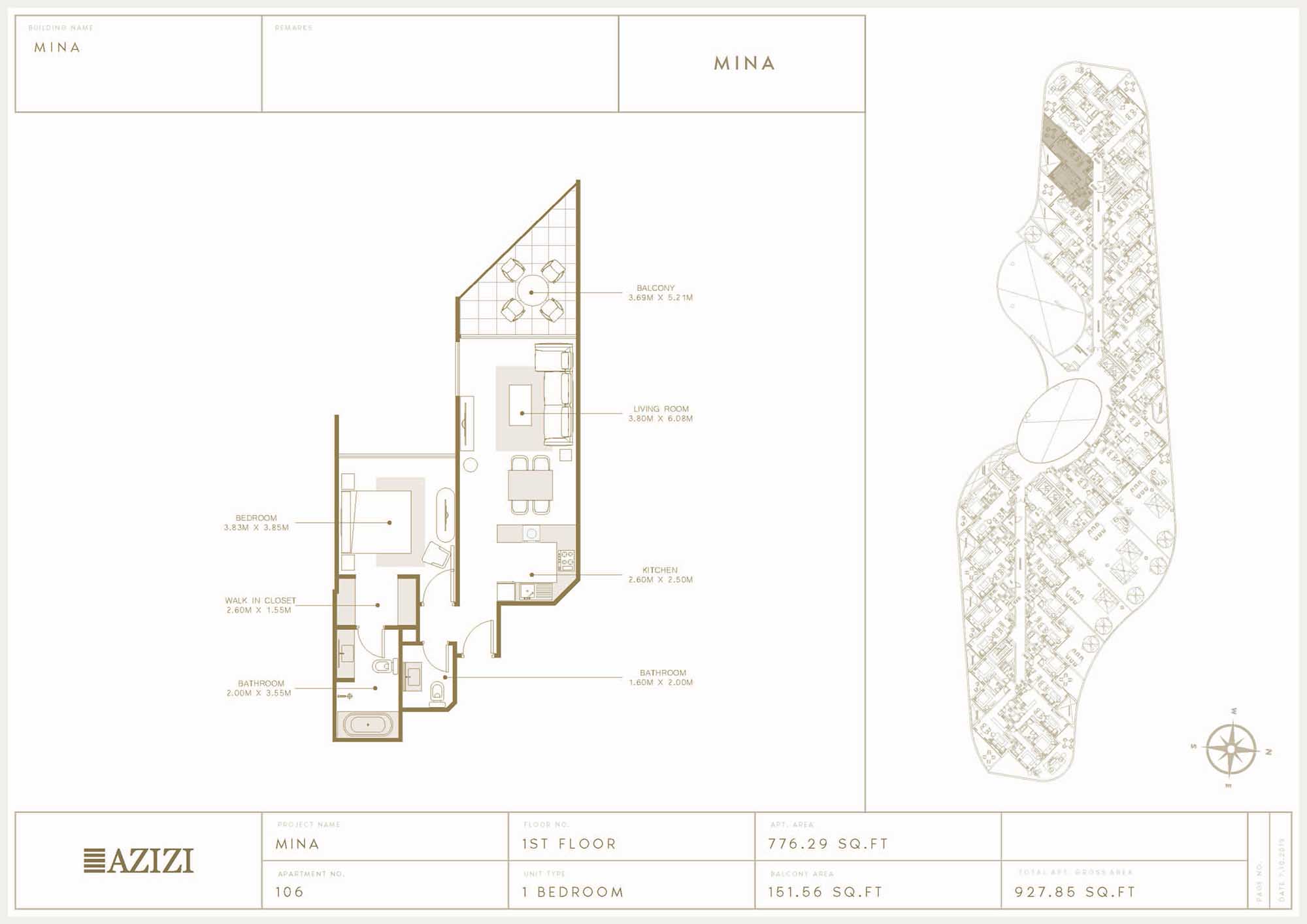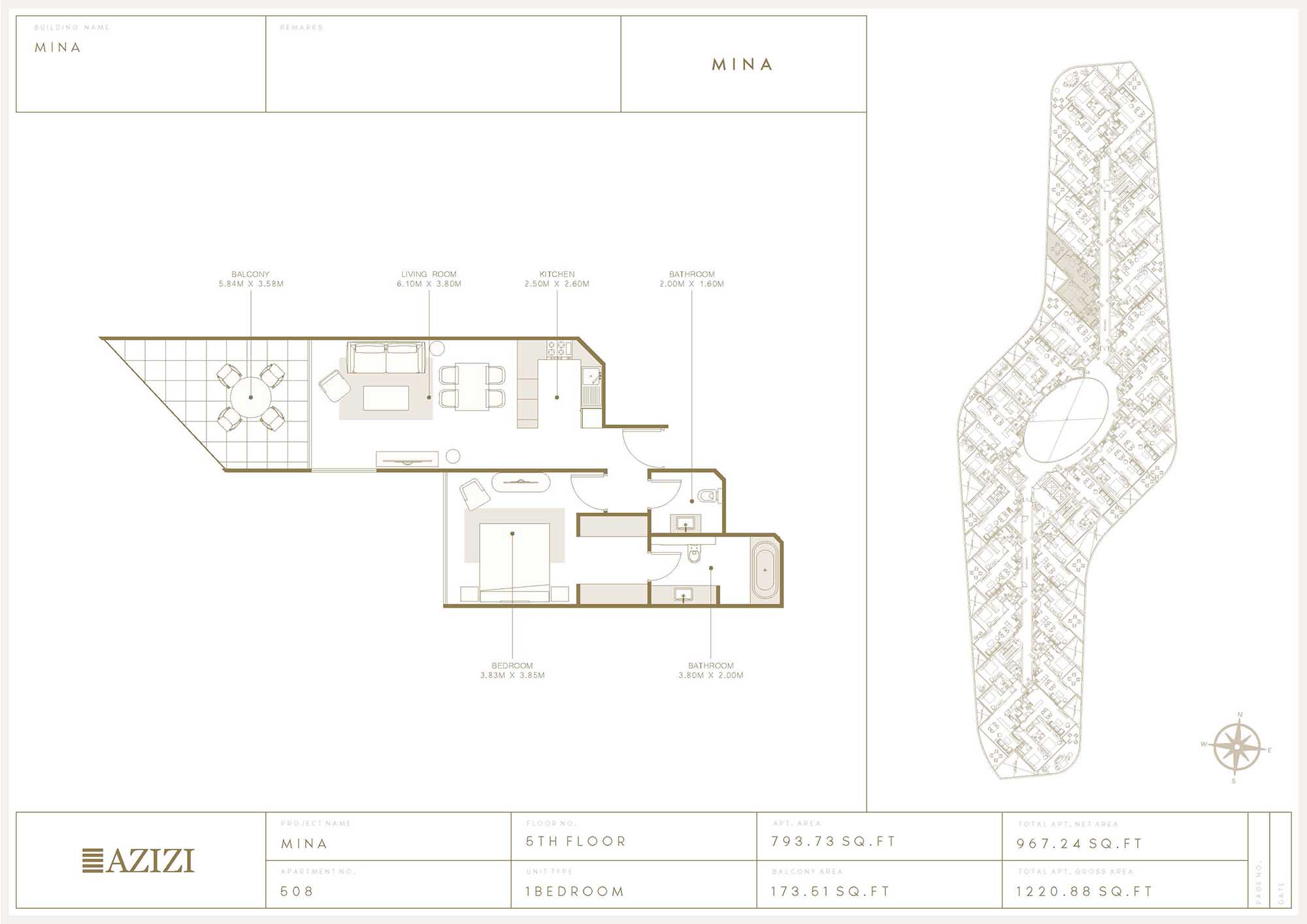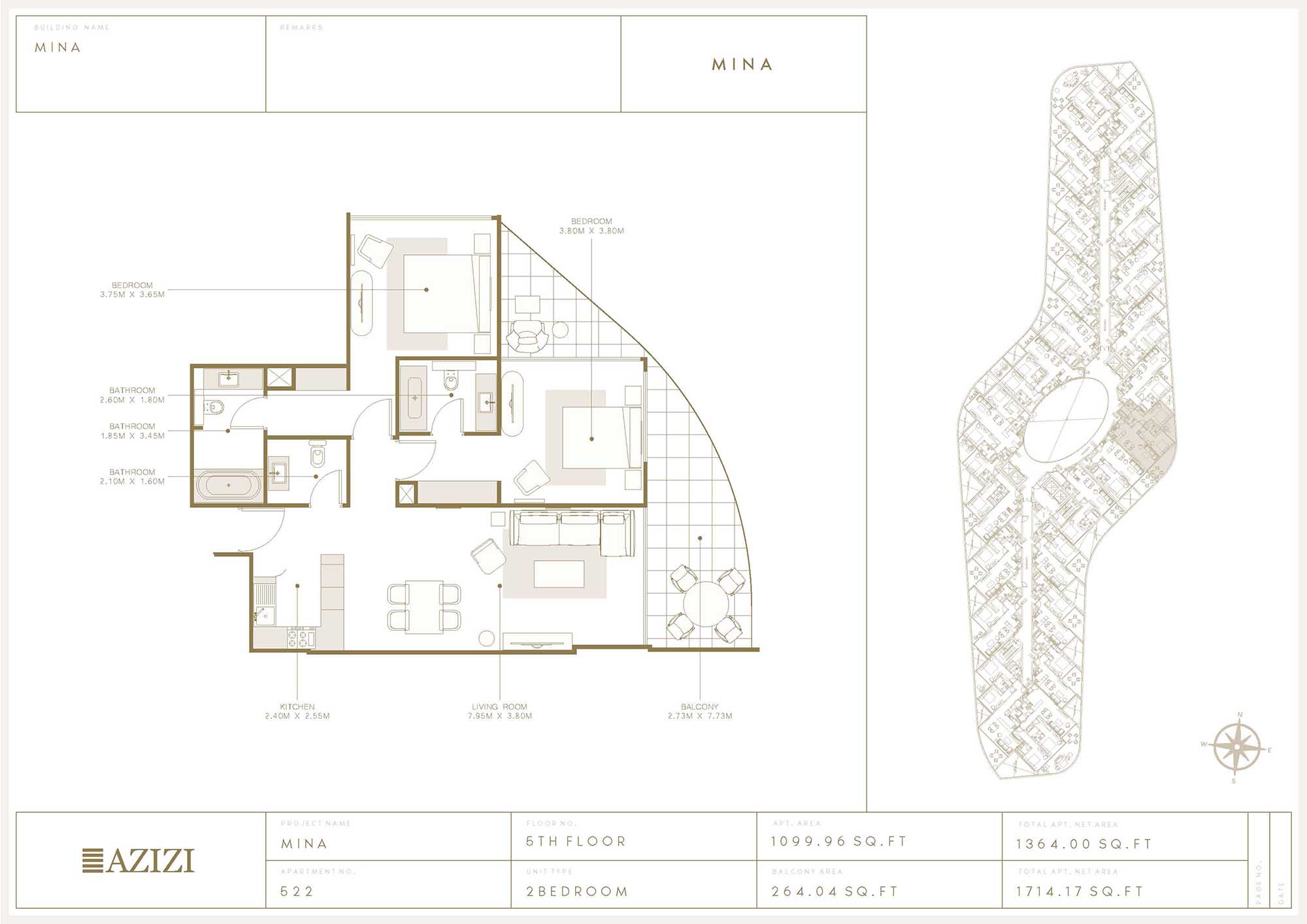 Azizi Mina provides spacious floor plan options offering waterfront designed 1 & 2-bedroom apartments and penthouses located in the serene community of the Palm Jumeirah. The development offers a total no of 178 elegant designed waterfront homes that further offers 120 one-bedroom, and 54 two-bedroom apartments along with four penthouses that are spread over an area of the total gross area of more than 2.3 hectares. While at the same time offers stunning views of the sea, deluxe amenities and interiors in a perfect backdrop of nature and style.