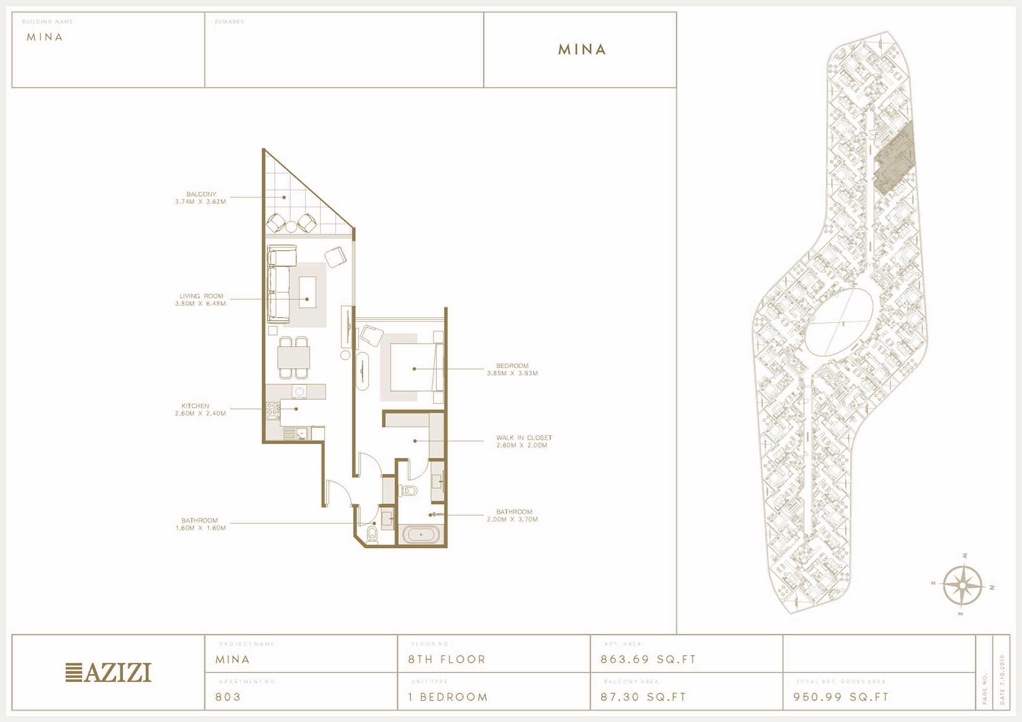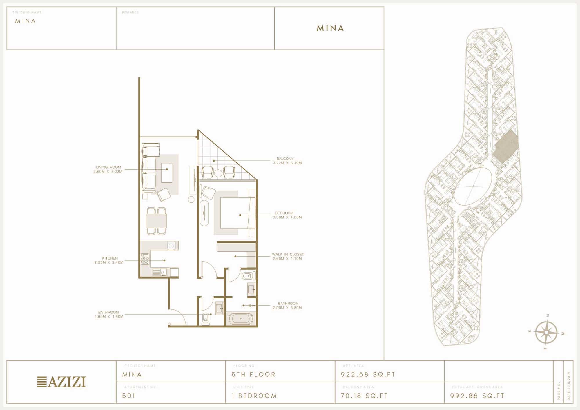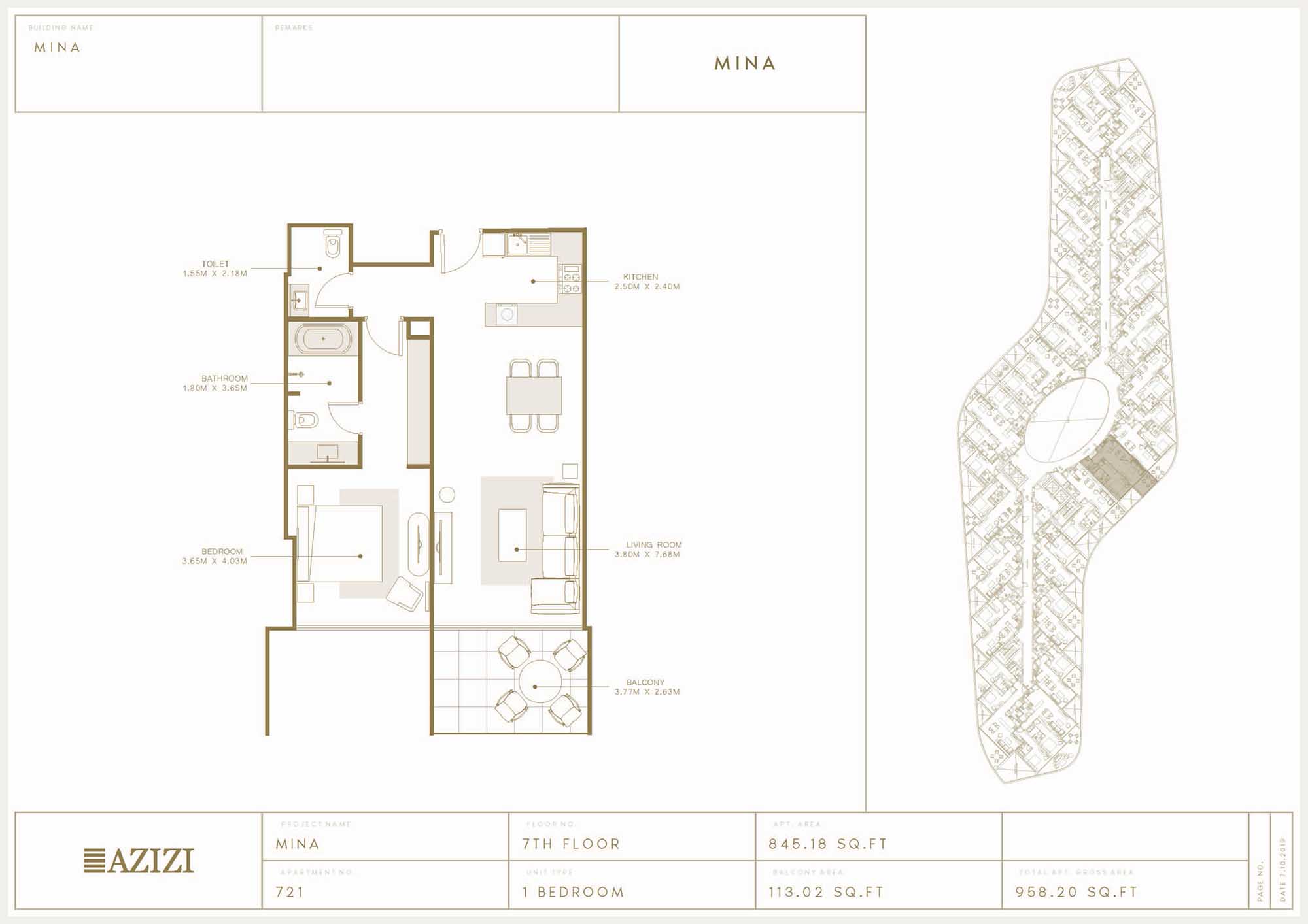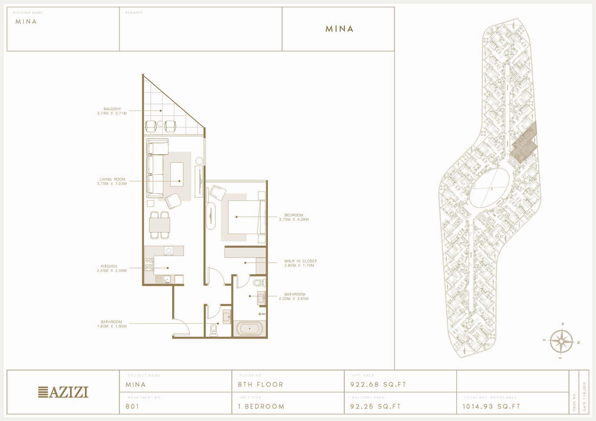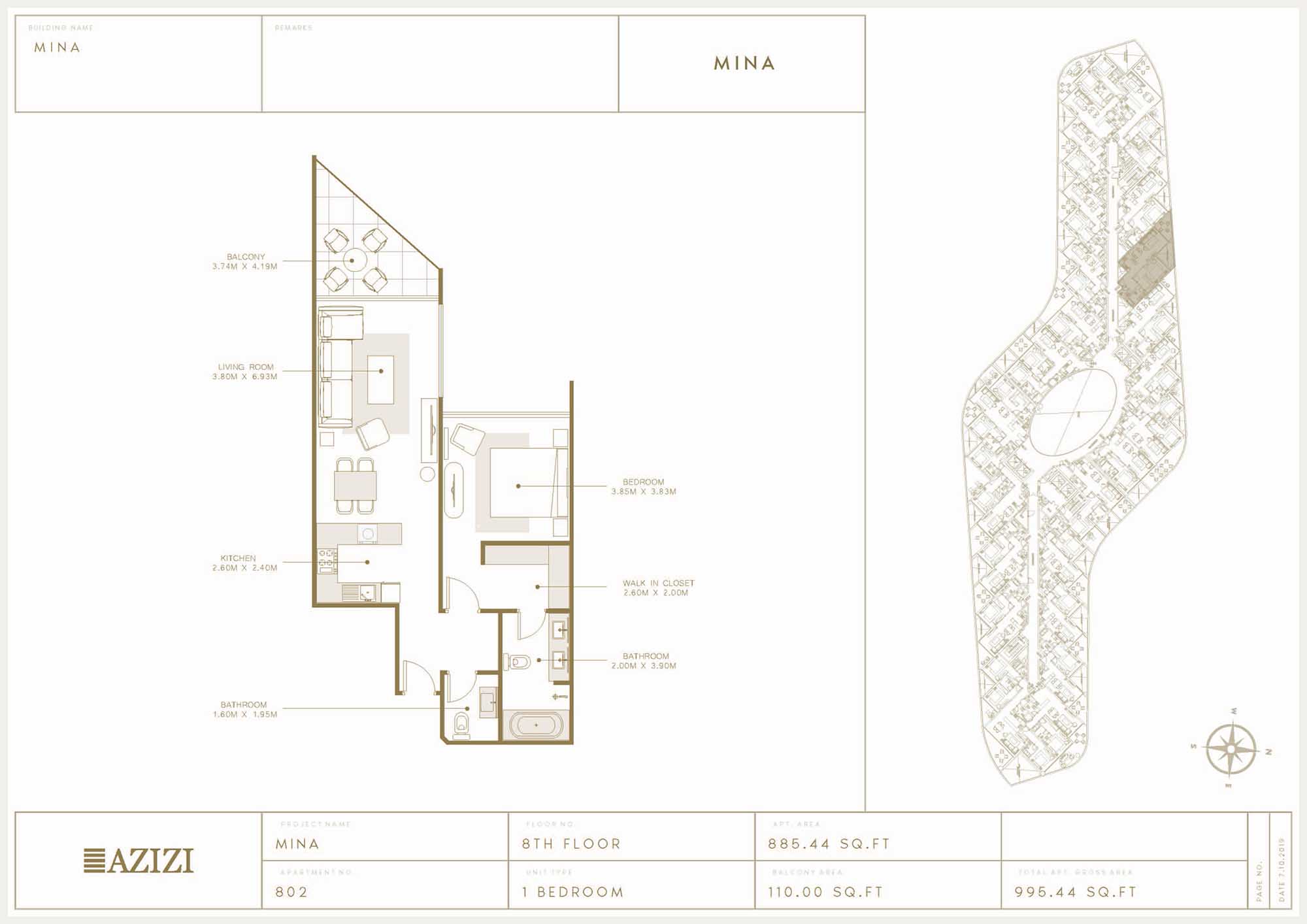 Azizi Mina provides spacious floor plan options offering waterfront designed 1 & 2-bedroom apartments and penthouses located in the serene community of the Palm Jumeirah. The development offers a total no of 178 elegant designed waterfront homes that further offers 120 one-bedroom, and 54 two-bedroom apartments along with four penthouses that are spread over an area of the total gross area of more than 2.3 hectares. While at the same time offers stunning views of the sea, deluxe amenities and interiors in a perfect backdrop of nature and style.