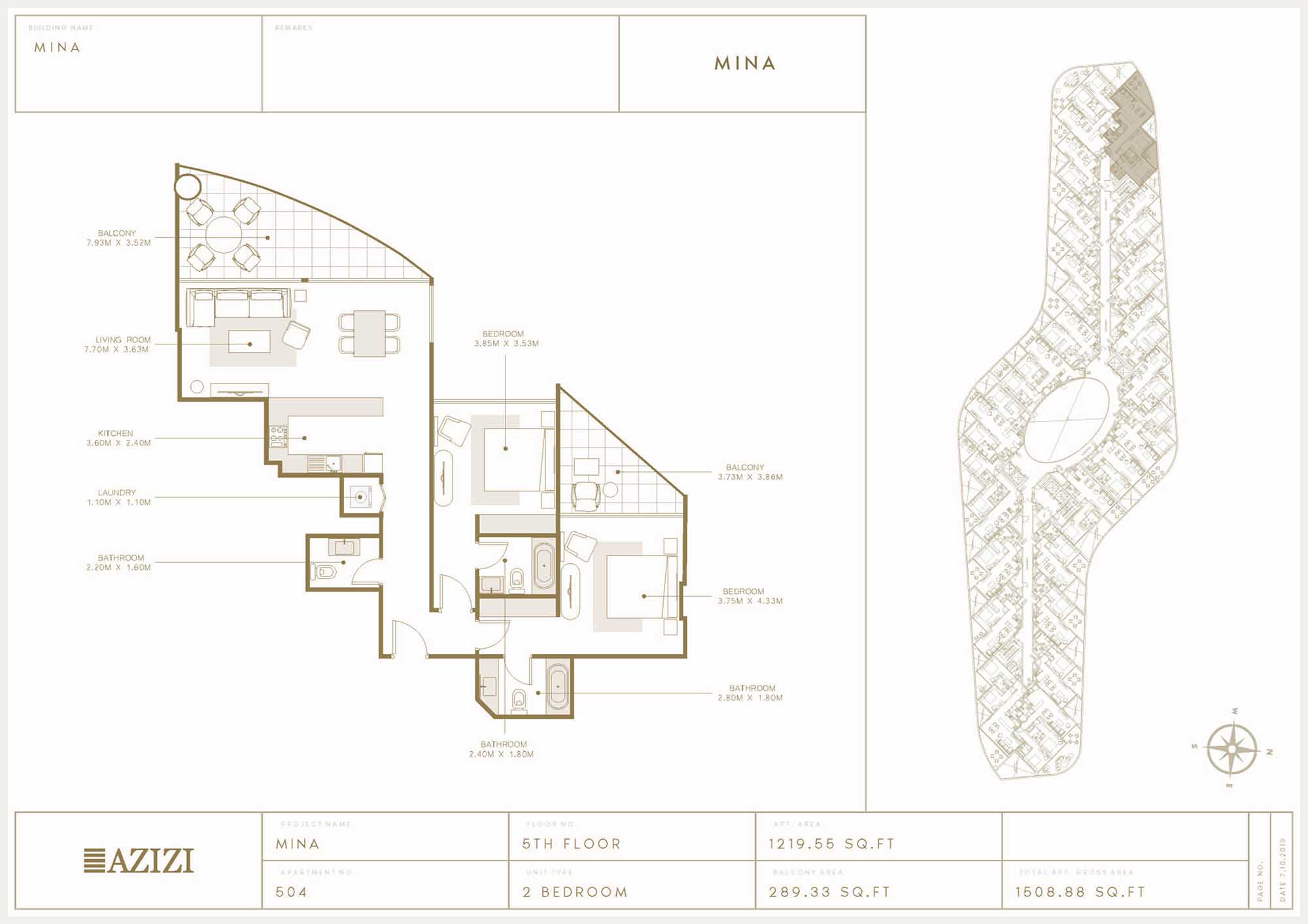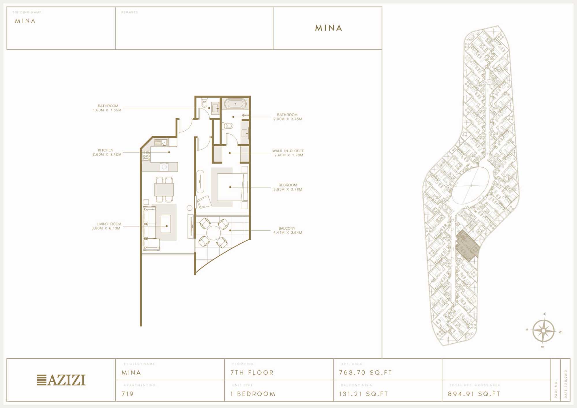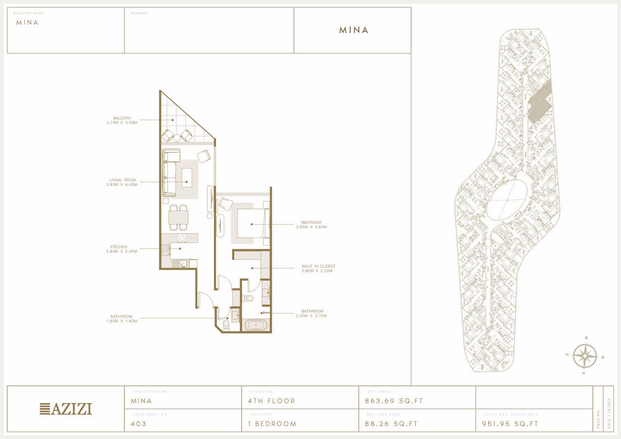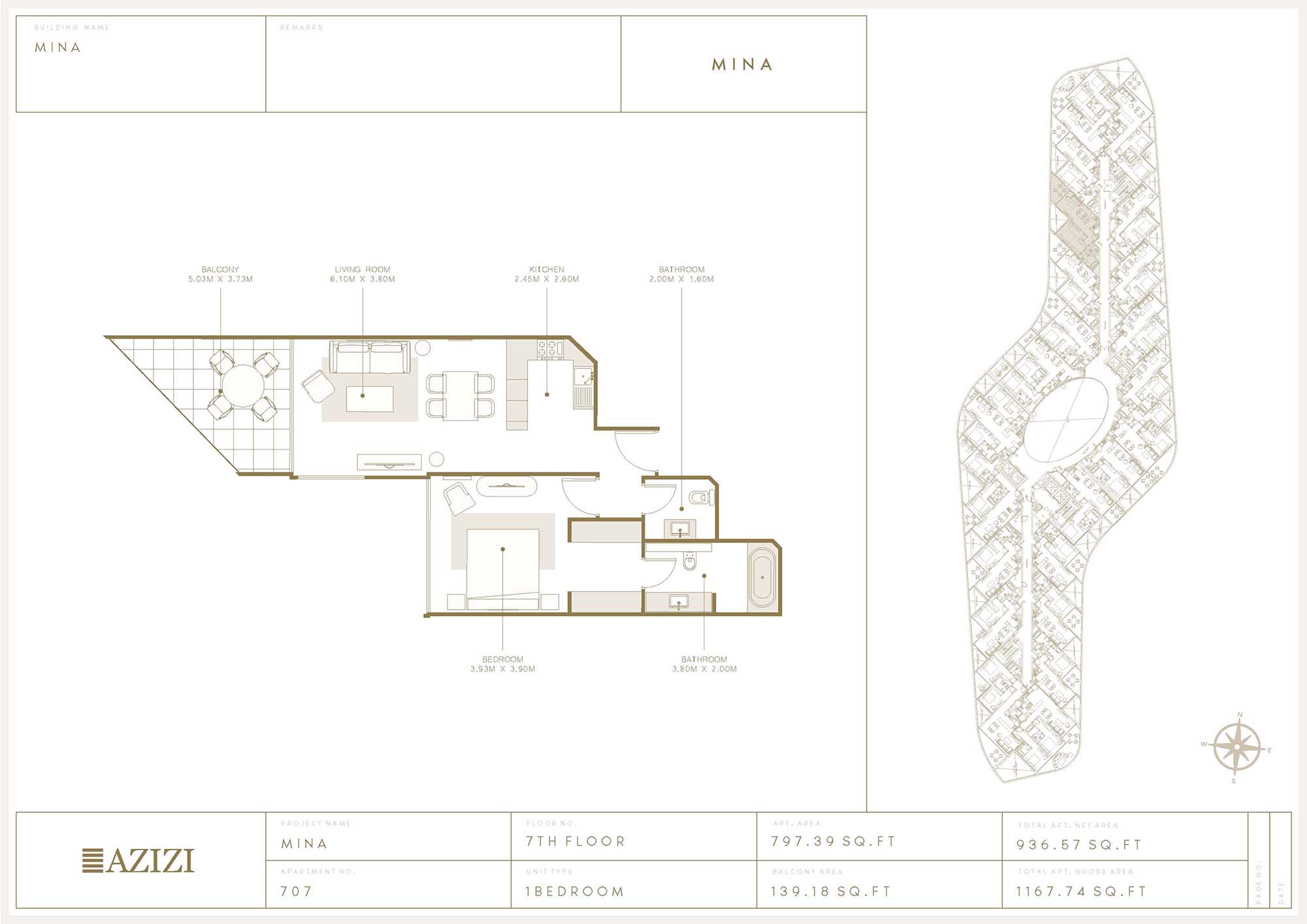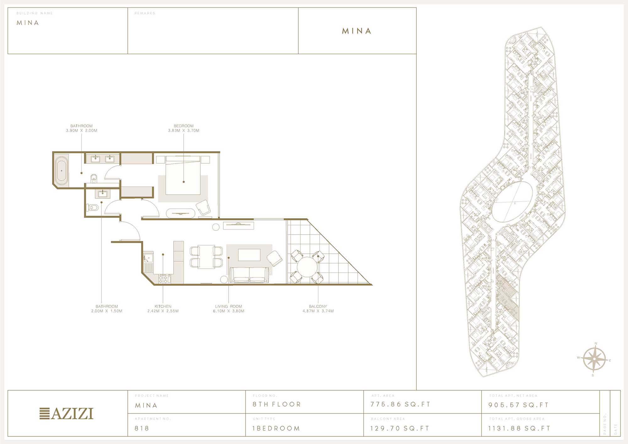 Azizi Mina provides spacious floor plan options offering waterfront designed 1 & 2-bedroom apartments and penthouses located in the serene community of the Palm Jumeirah. The development offers a total no of 178 elegant designed waterfront homes that further offers 120 one-bedroom, and 54 two-bedroom apartments along with four penthouses that are spread over an area of the total gross area of more than 2.3 hectares. While at the same time offers stunning views of the sea, deluxe amenities and interiors in a perfect backdrop of nature and style.