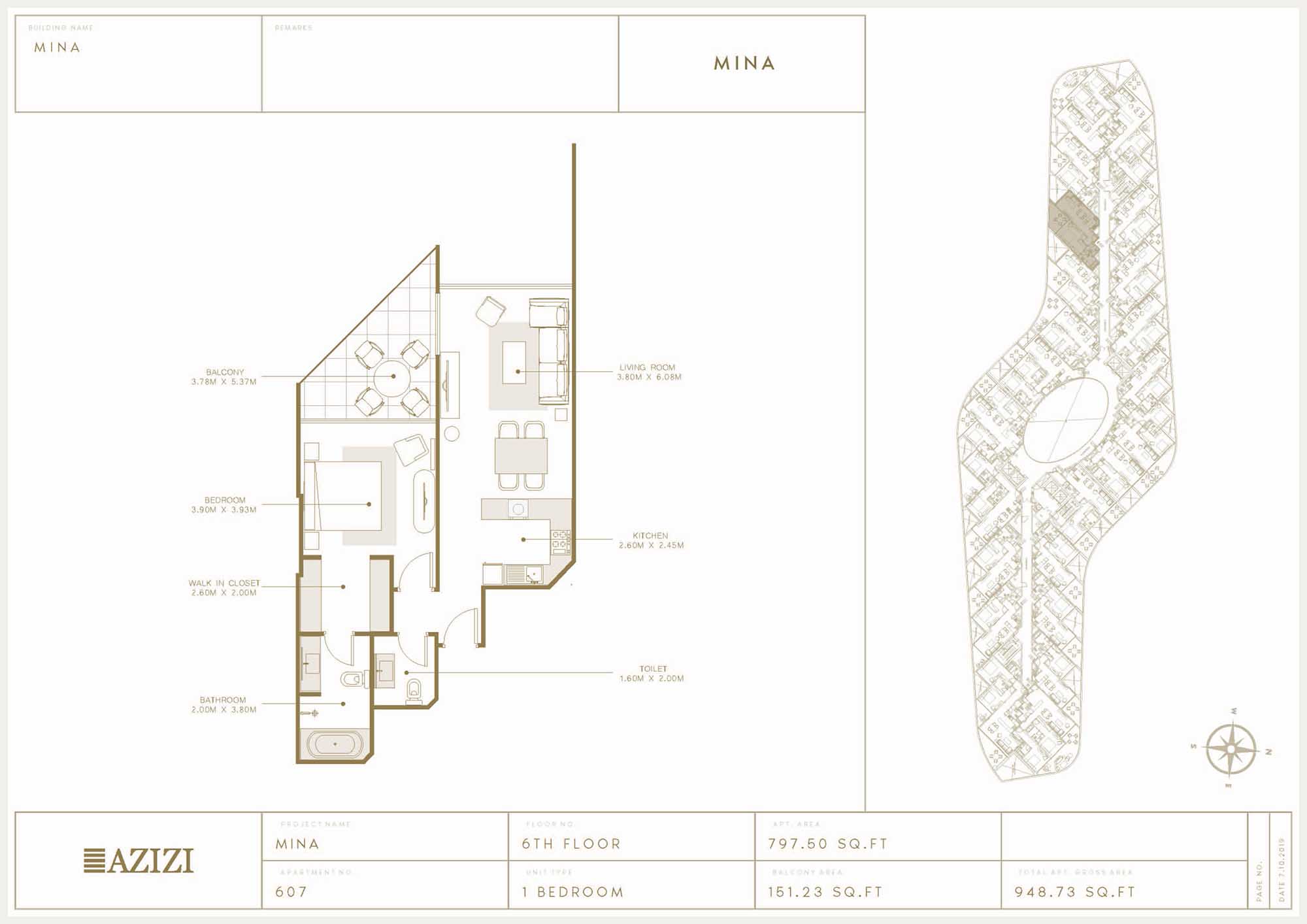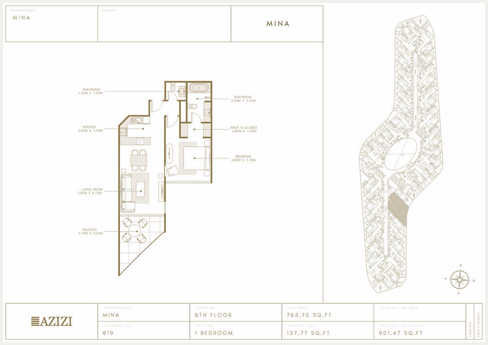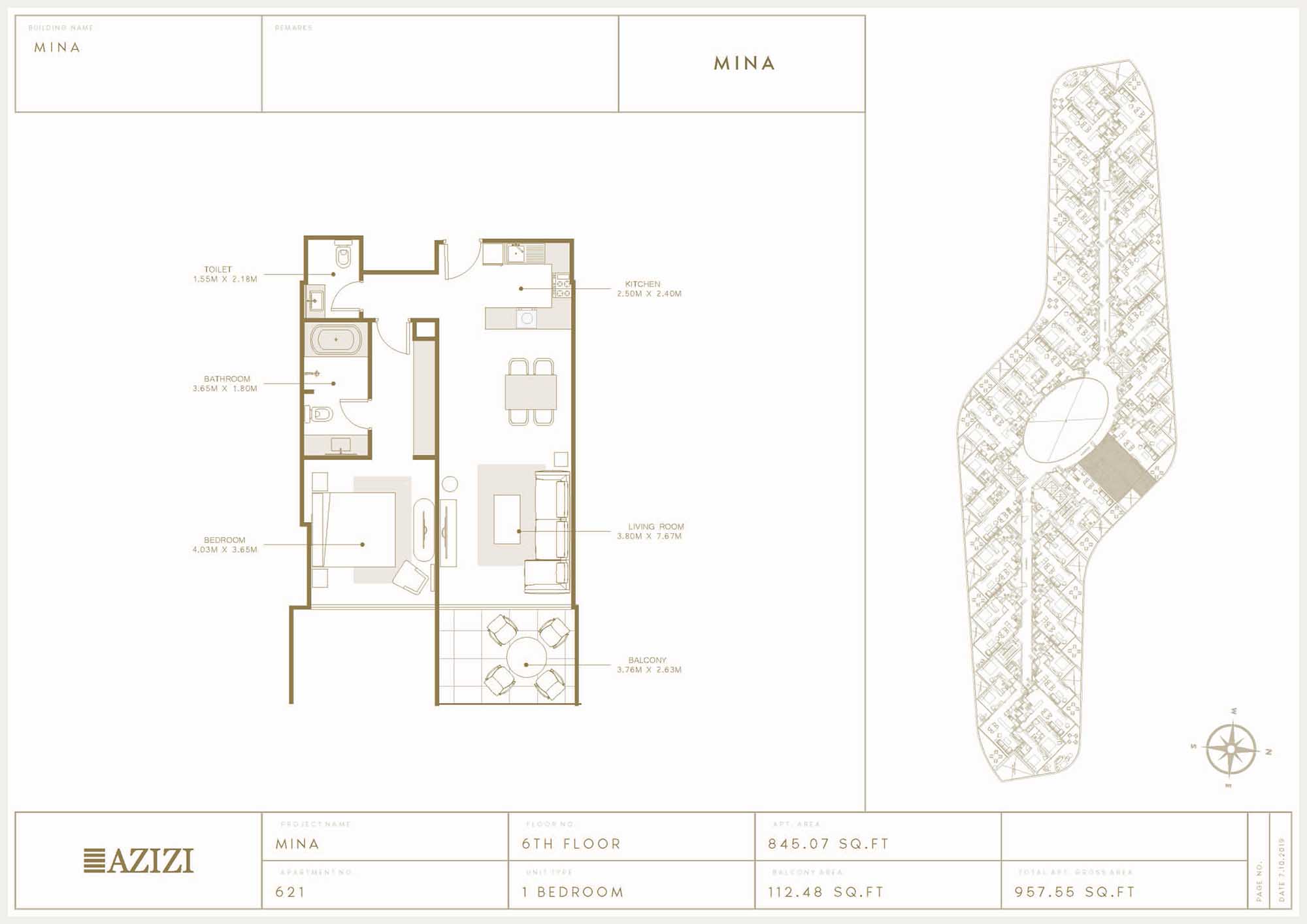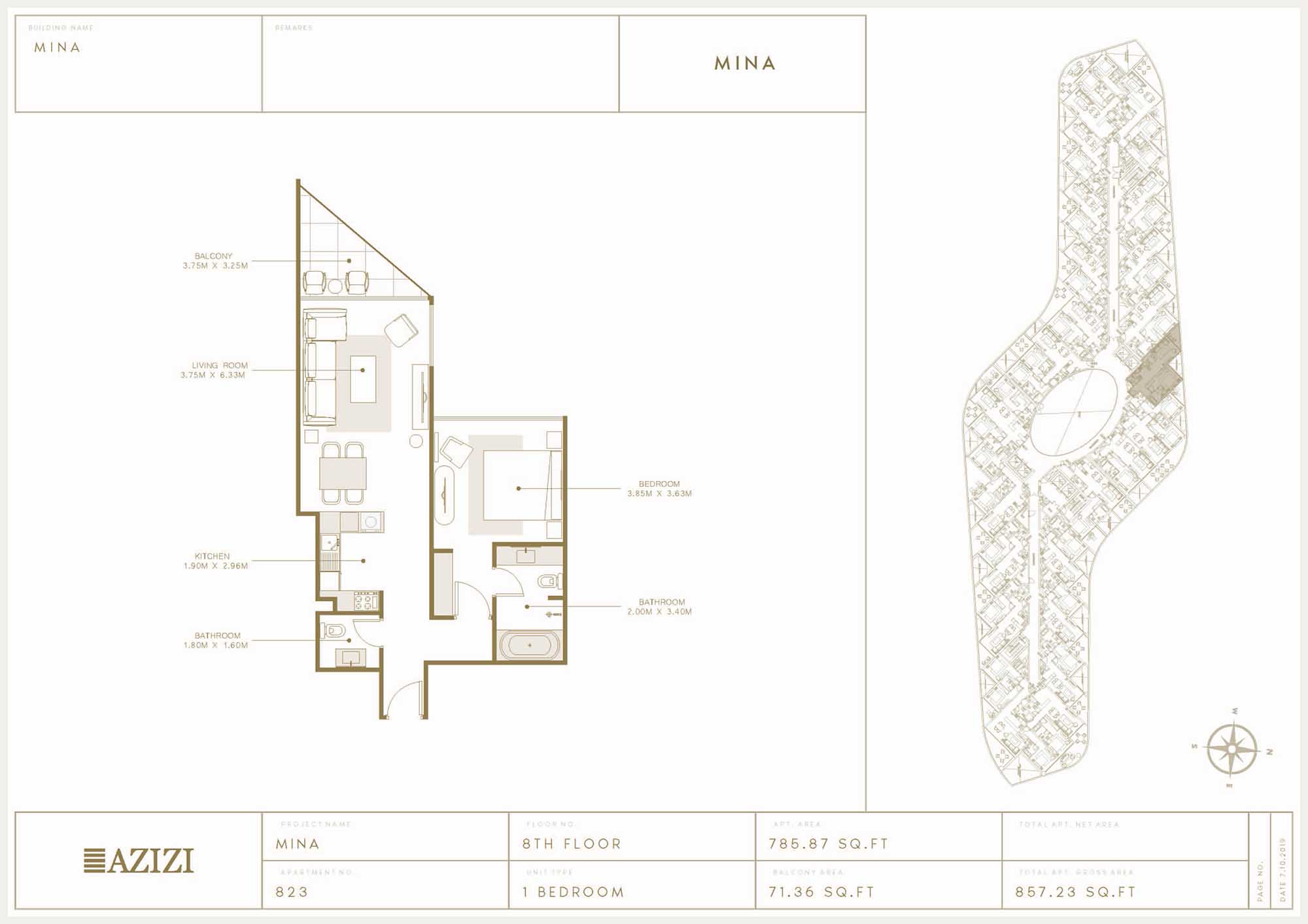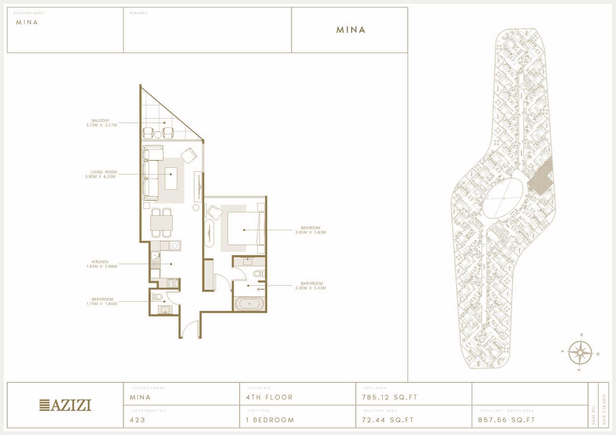 Azizi Mina provides spacious floor plan options offering waterfront designed 1 & 2-bedroom apartments and penthouses located in the serene community of the Palm Jumeirah. The development offers a total no of 178 elegant designed waterfront homes that further offers 120 one-bedroom, and 54 two-bedroom apartments along with four penthouses that are spread over an area of the total gross area of more than 2.3 hectares. While at the same time offers stunning views of the sea, deluxe amenities and interiors in a perfect backdrop of nature and style.