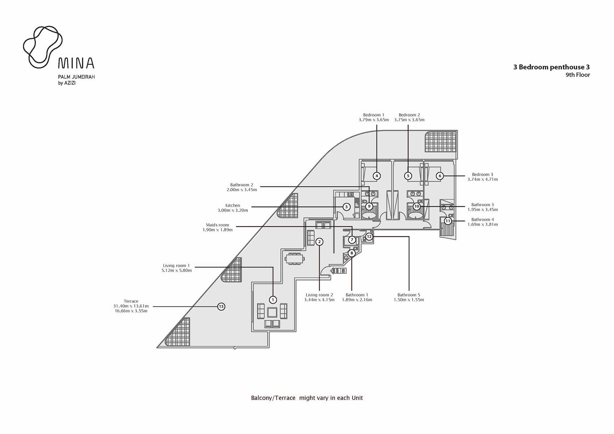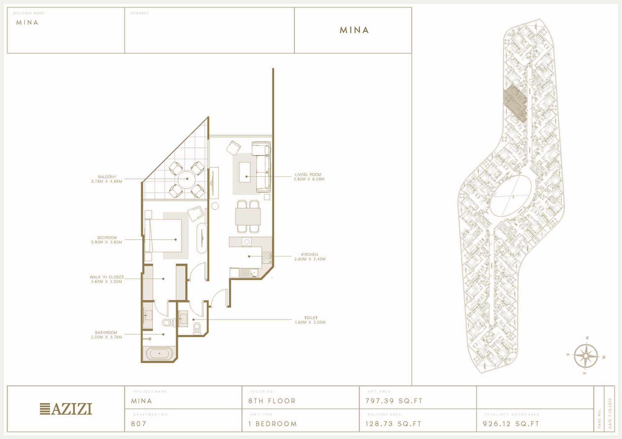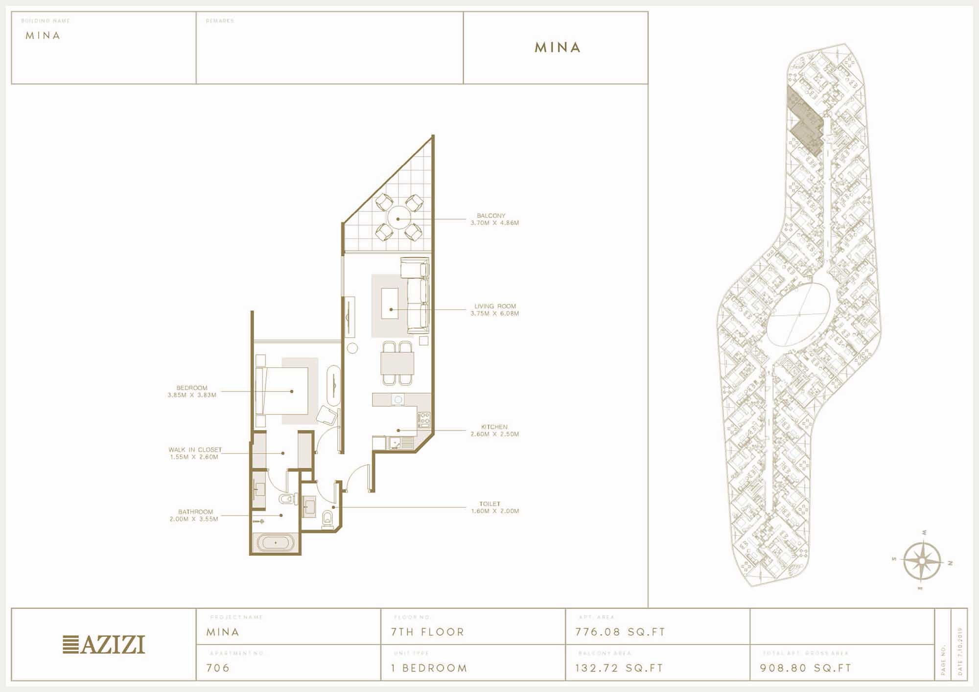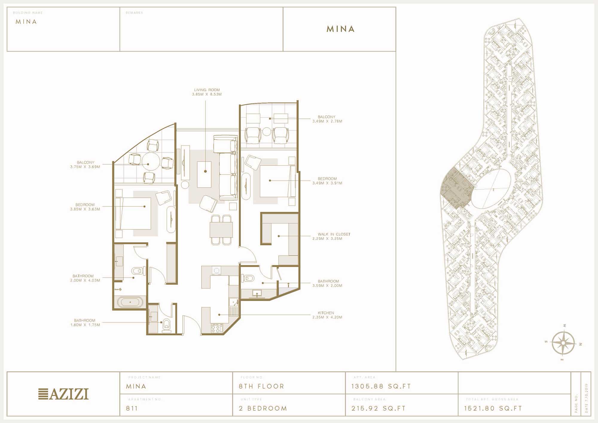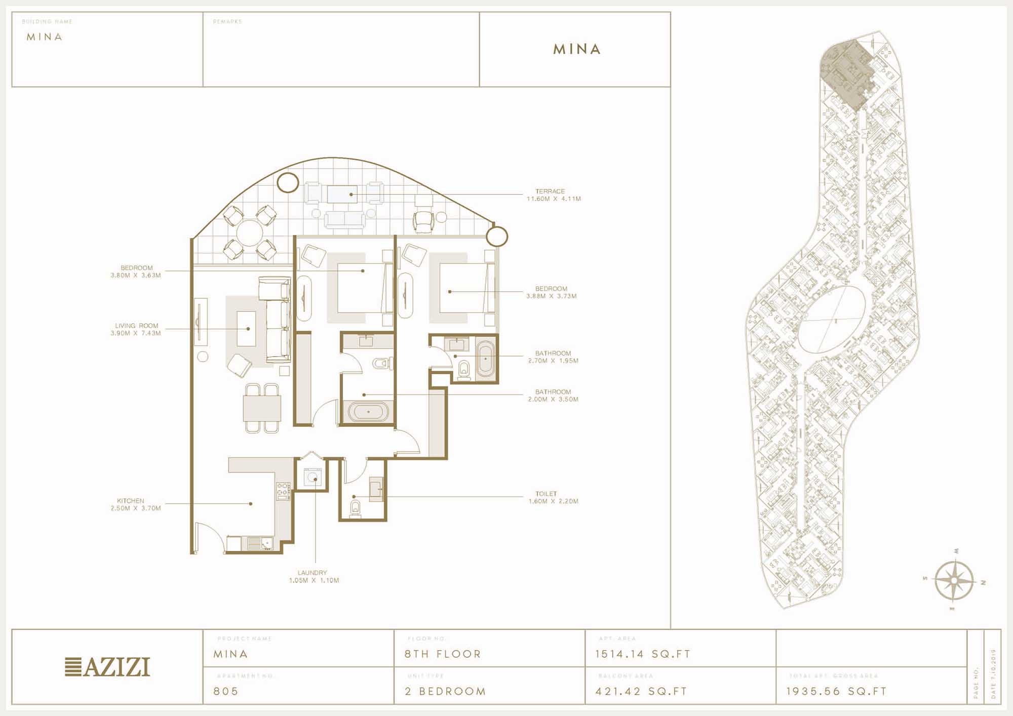 Azizi Mina provides spacious floor plan options offering waterfront designed 1 & 2-bedroom apartments and penthouses located in the serene community of the Palm Jumeirah. The development offers a total no of 178 elegant designed waterfront homes that further offers 120 one-bedroom, and 54 two-bedroom apartments along with four penthouses that are spread over an area of the total gross area of more than 2.3 hectares. While at the same time offers stunning views of the sea, deluxe amenities and interiors in a perfect backdrop of nature and style.