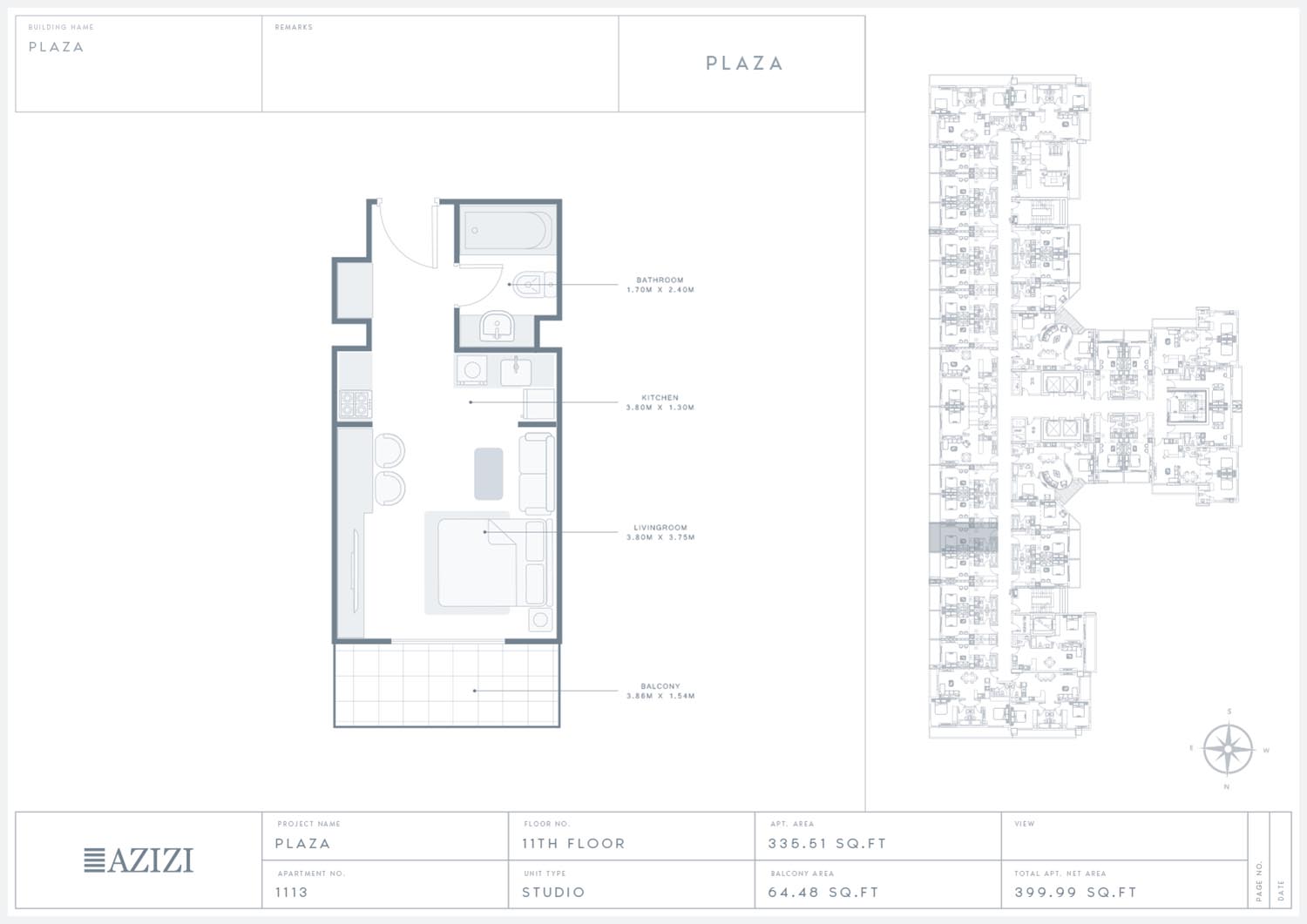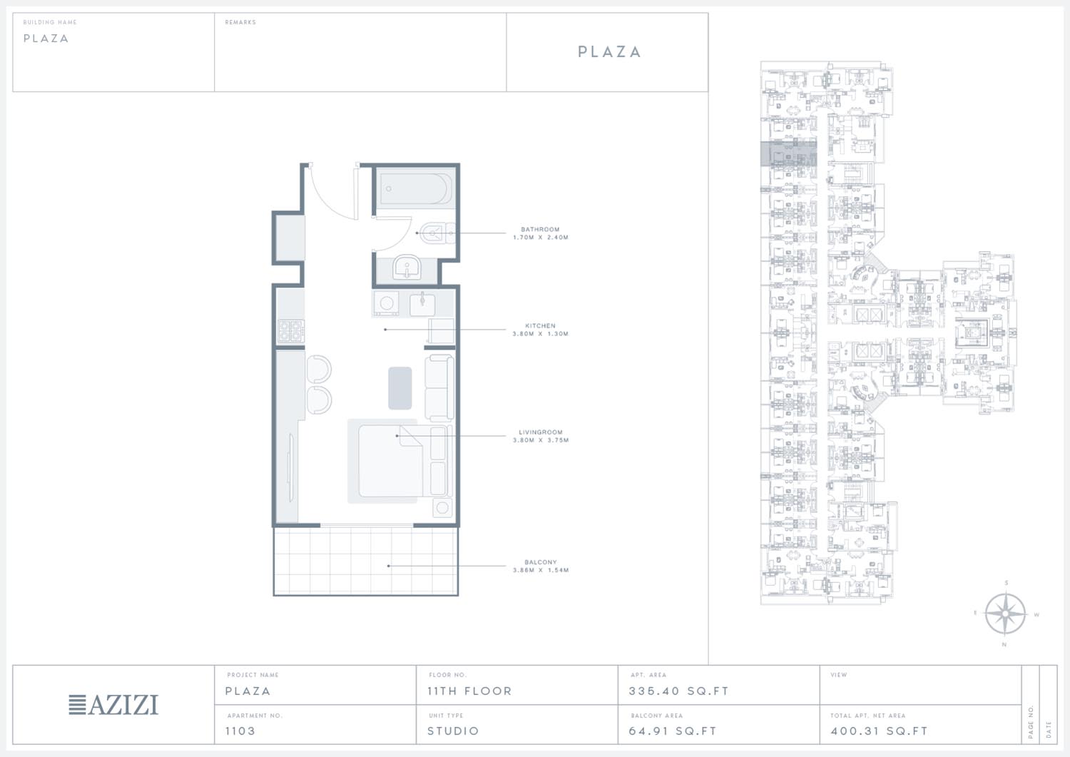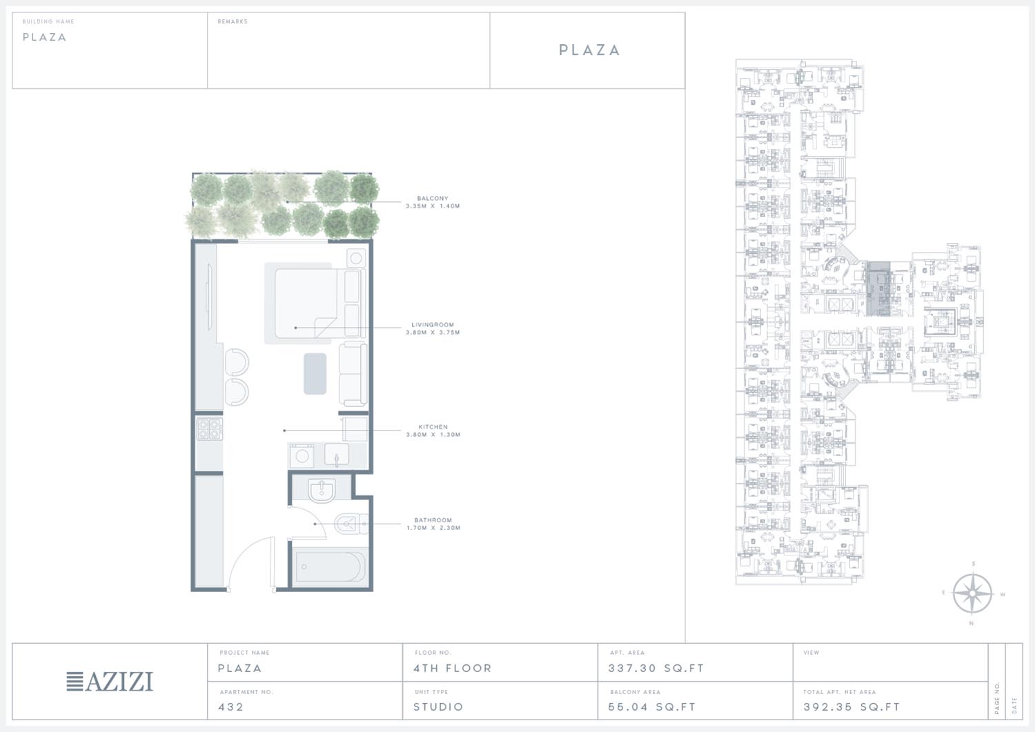 The development Azizi Plaza offers spacious floor plan solutions offering studios, 1 & 2-bedroom apartments that present the next level luxury at its best. The overall architectural aspect is designed with keeping in mind the residents that offer interesting lifestyle amenities. While it comes with a total no of 434 fully serviced bedroom apartments that offer a next-level contemporary lifestyle with its 9,400 sq. ft. of retail space area.