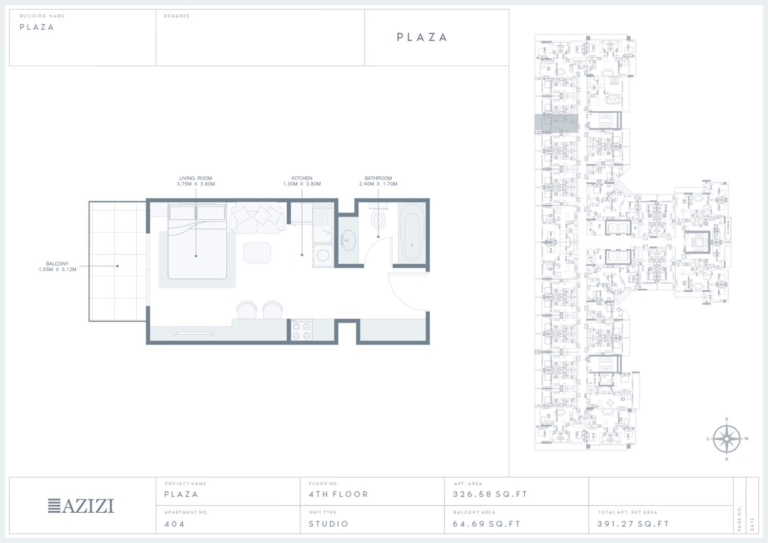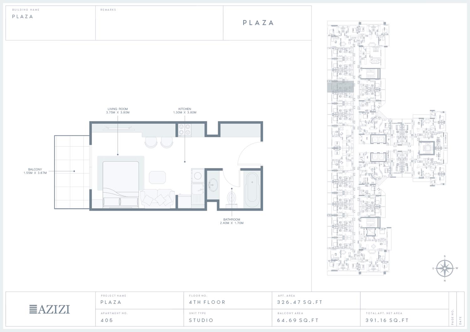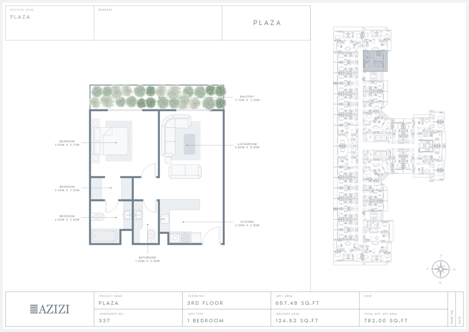 The development Azizi Plaza offers spacious floor plan solutions offering studios, 1 & 2-bedroom apartments that present the next level luxury at its best. The overall architectural aspect is designed with keeping in mind the residents that offer interesting lifestyle amenities. While it comes with a total no of 434 fully serviced bedroom apartments that offer a next-level contemporary lifestyle with its 9,400 sq. ft. of retail space area.