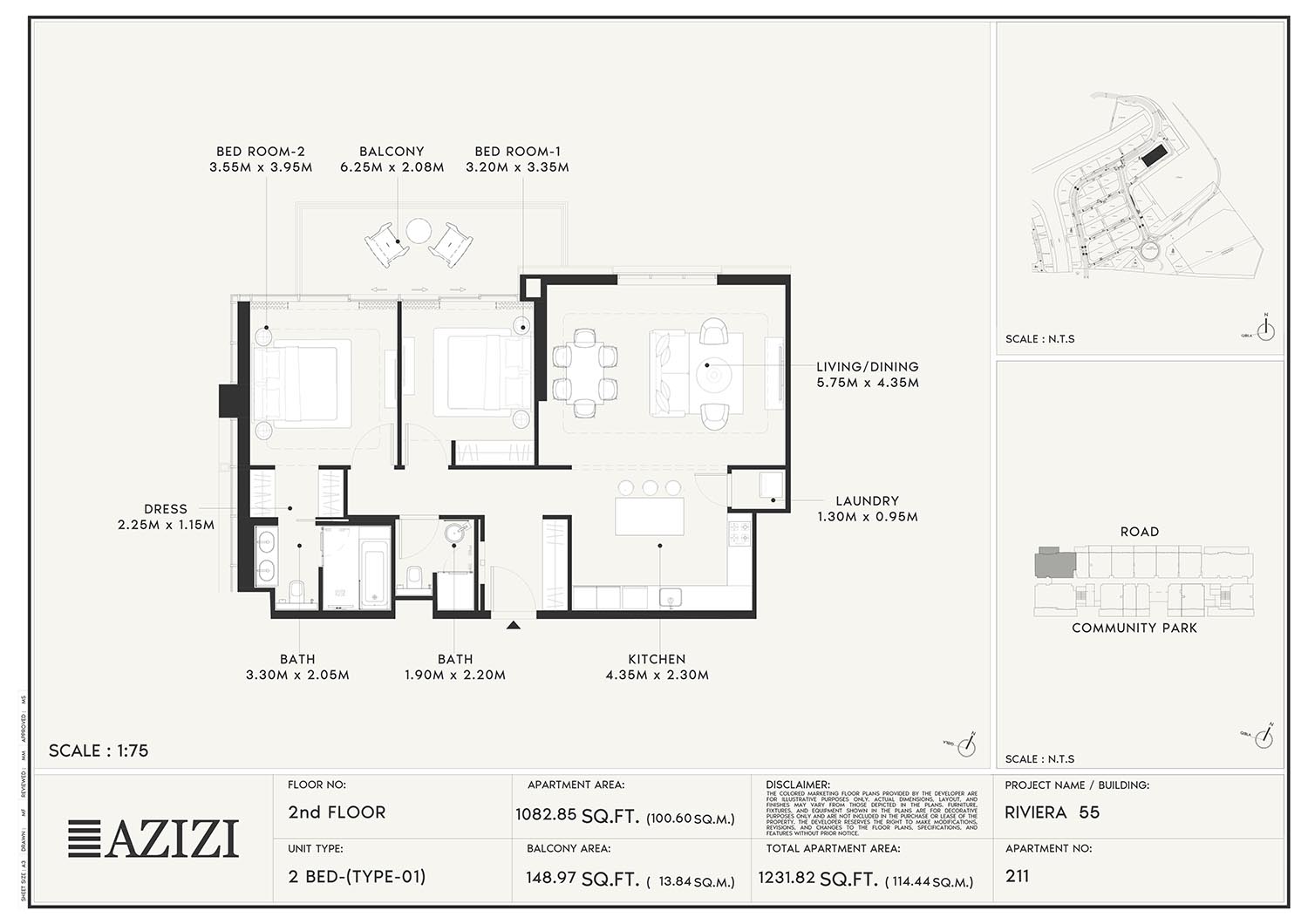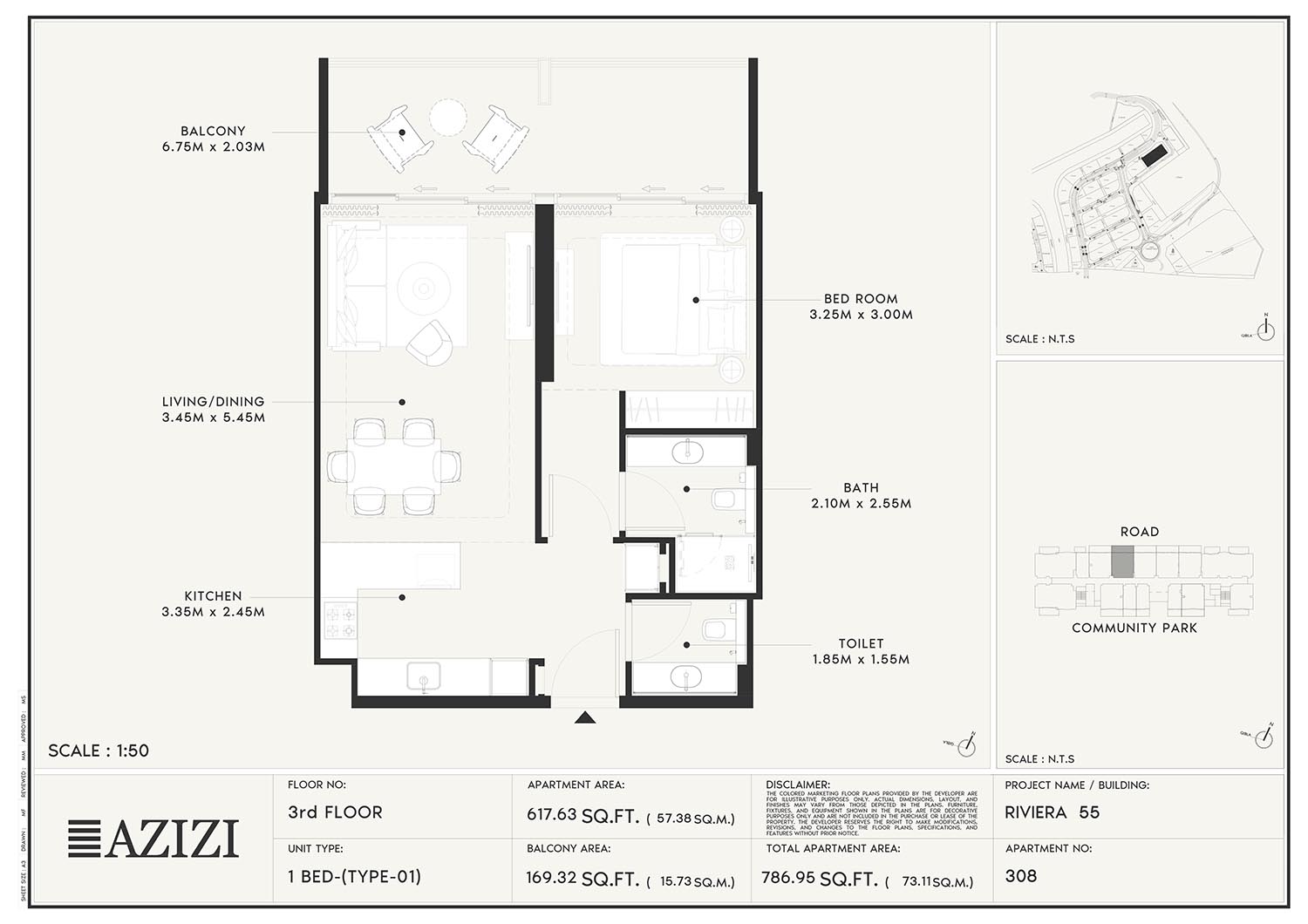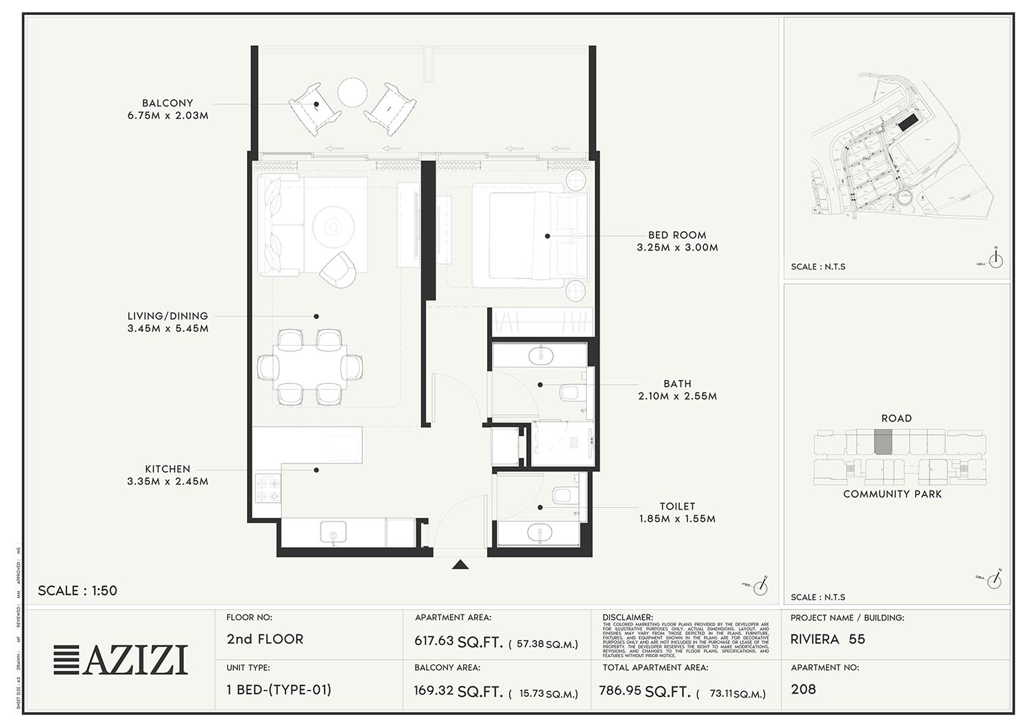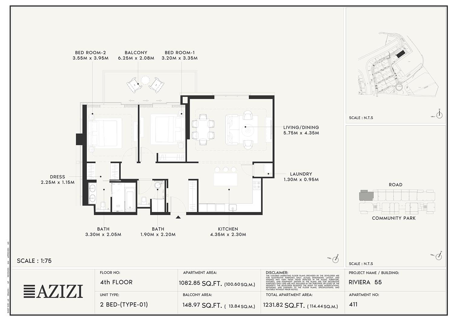 The smartly constructed floor plan layouts of Azizi Riviera 55 have a variety of elegantly designed residences to accommodate diverse lifestyles. The layout is an open one with a lot of natural light and space utilisation that each unit boasts. The expansive windows and individual balconies open to either calm lagoon side or the energetic and bustling community around. Mindfully imagined designs of the interior combine practicality with aesthetics, while modern kitchens, expansive living spaces, and good opulent bathrooms create a fluent daily routine. High quality finishes and intelligent storage make it even more appealing as nowhere is style sacrificed.