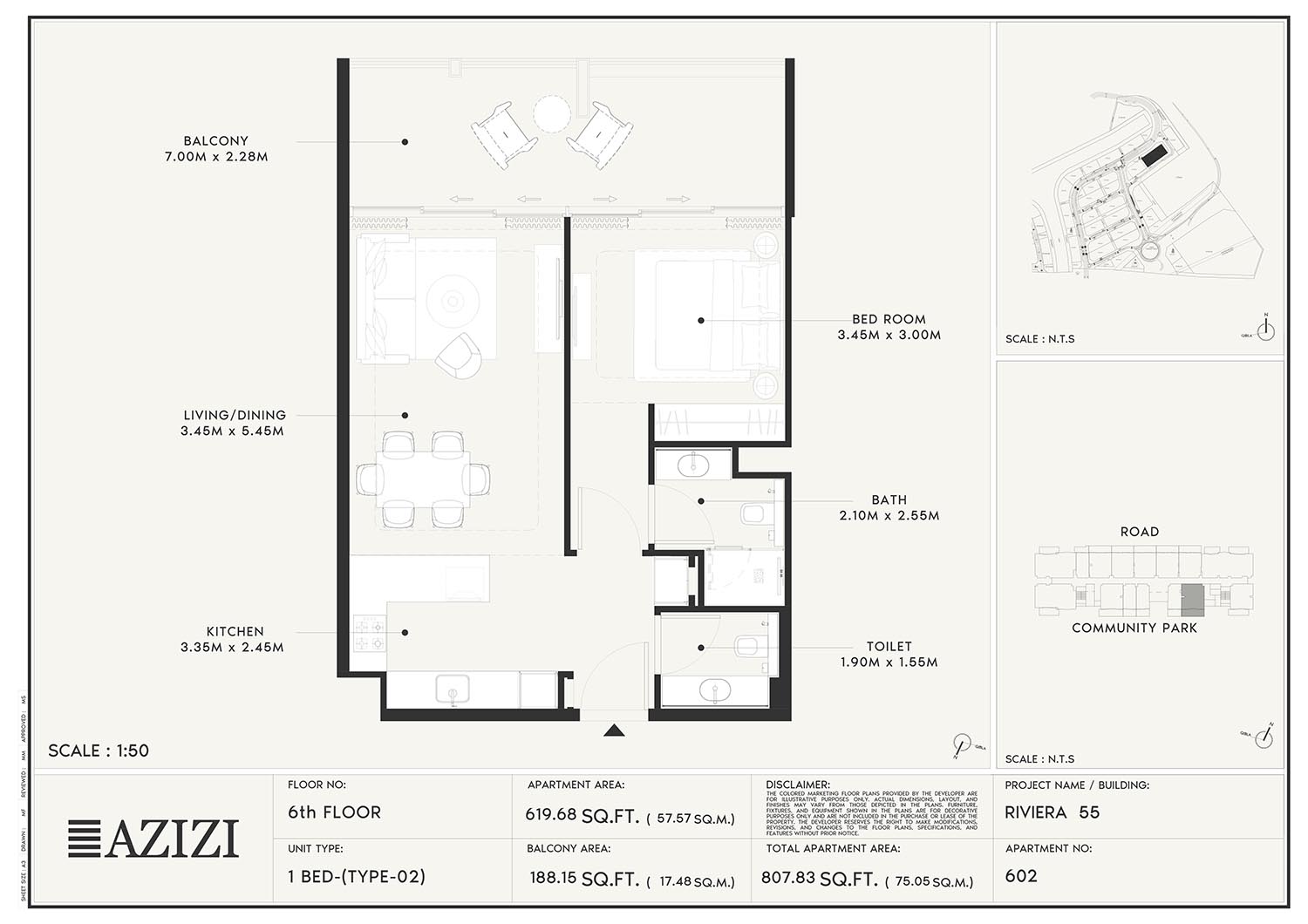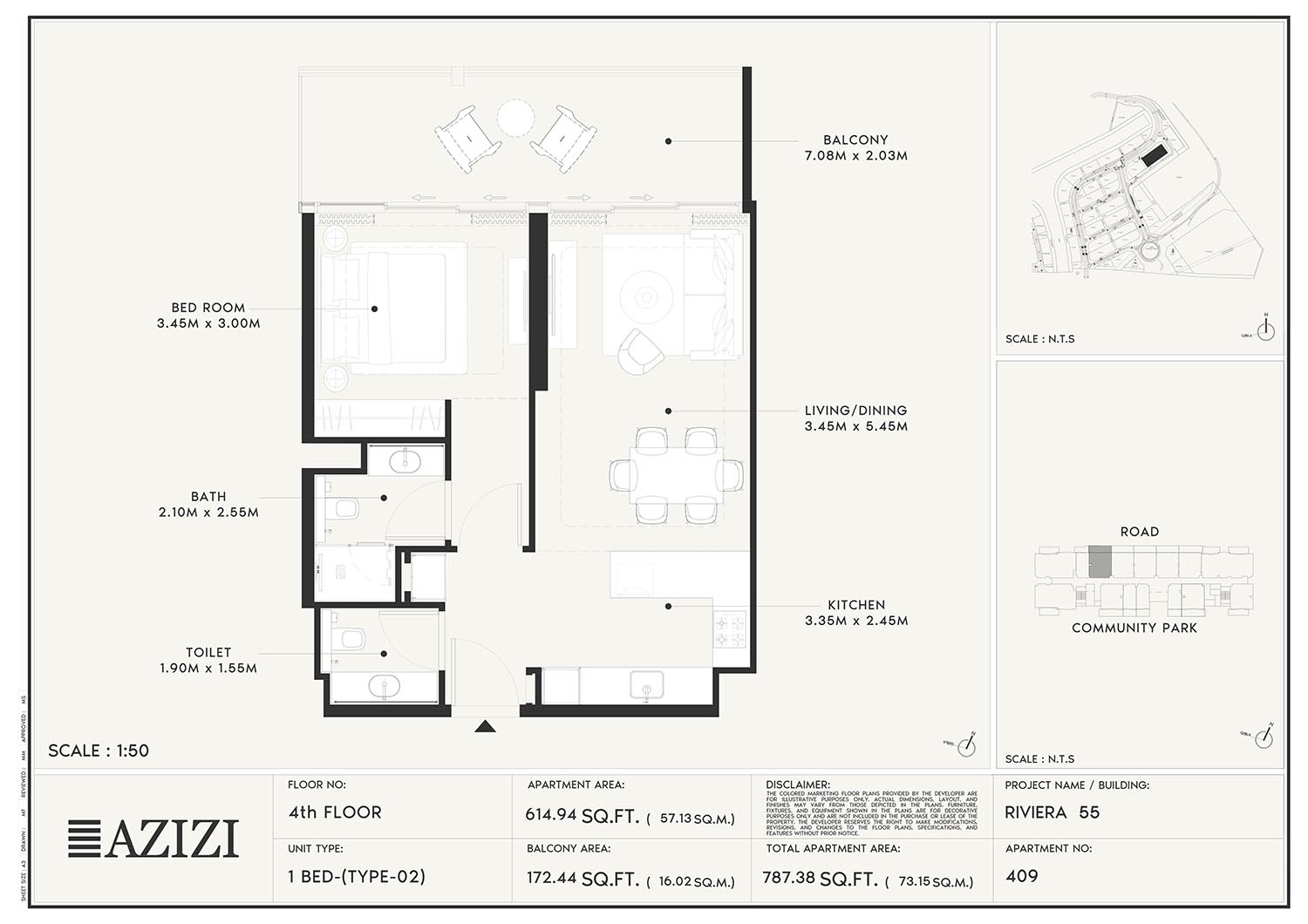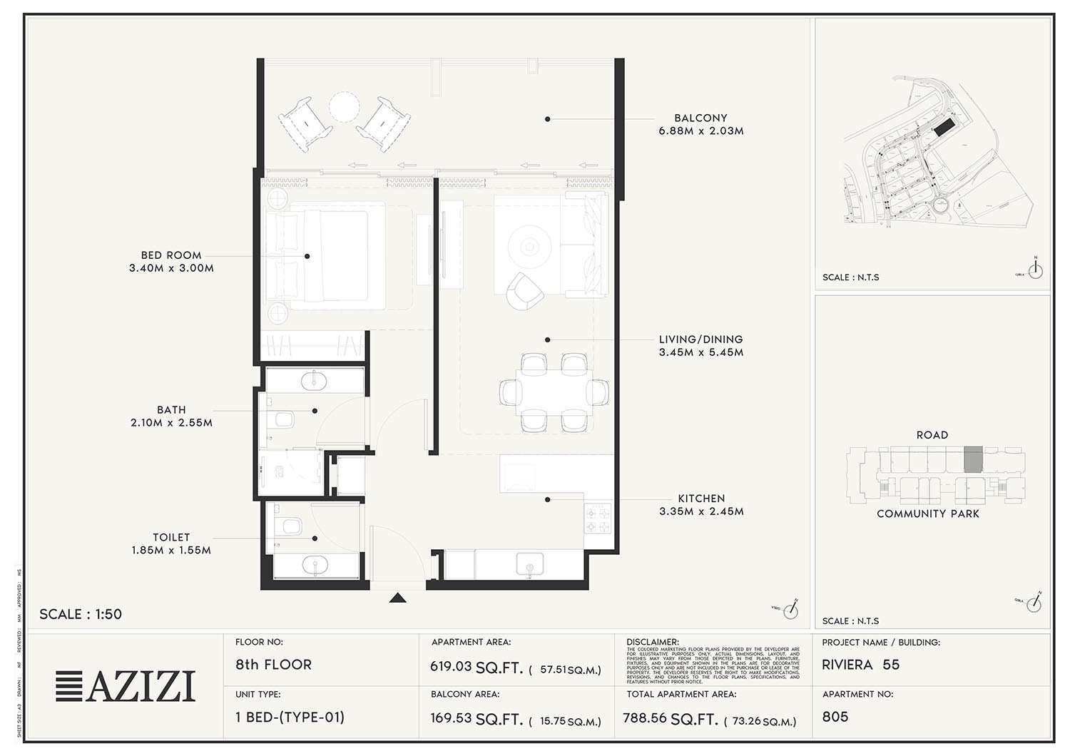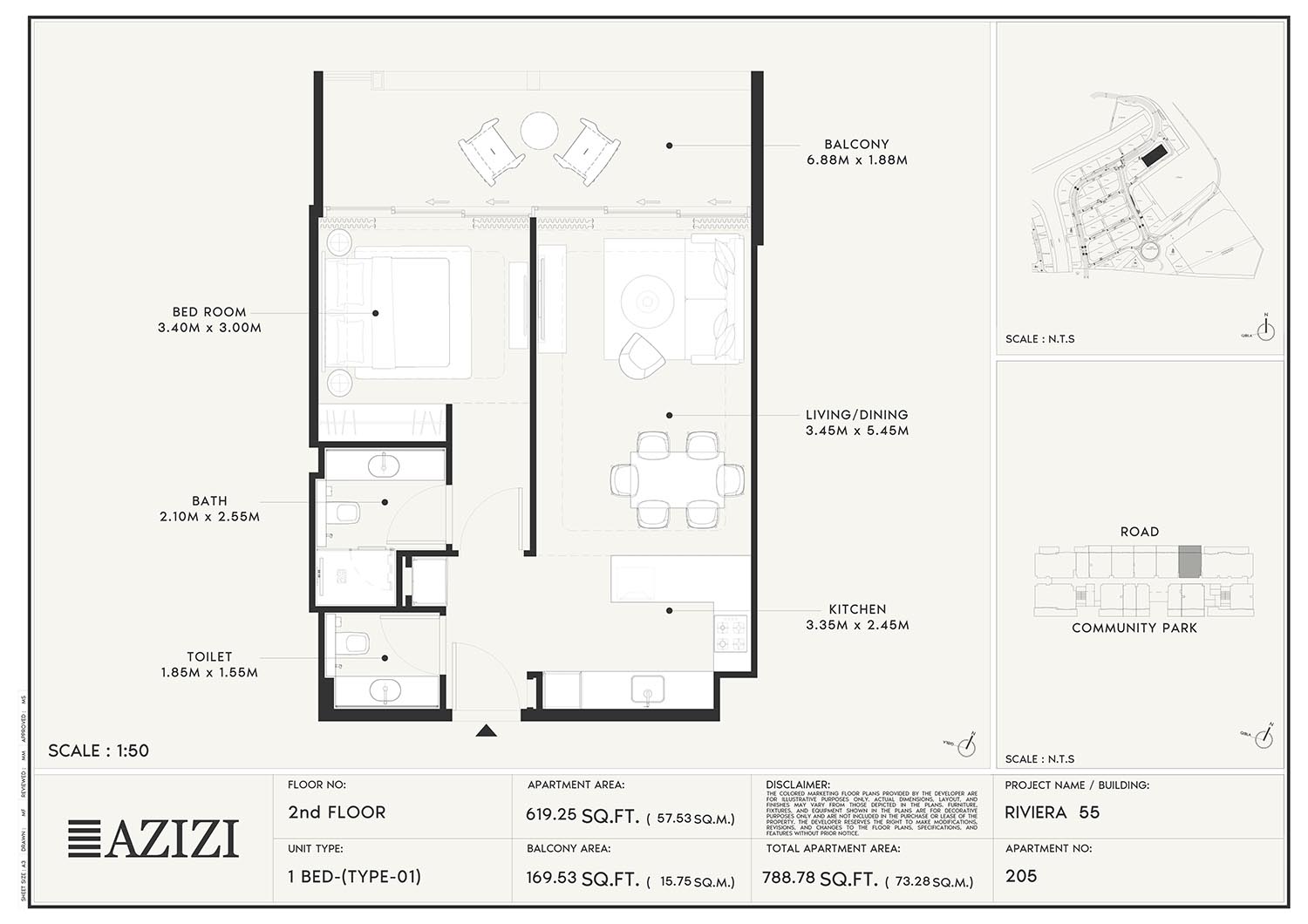 The smartly constructed floor plan layouts of Azizi Riviera 55 have a variety of elegantly designed residences to accommodate diverse lifestyles. The layout is an open one with a lot of natural light and space utilisation that each unit boasts. The expansive windows and individual balconies open to either calm lagoon side or the energetic and bustling community around. Mindfully imagined designs of the interior combine practicality with aesthetics, while modern kitchens, expansive living spaces, and good opulent bathrooms create a fluent daily routine. High quality finishes and intelligent storage make it even more appealing as nowhere is style sacrificed.