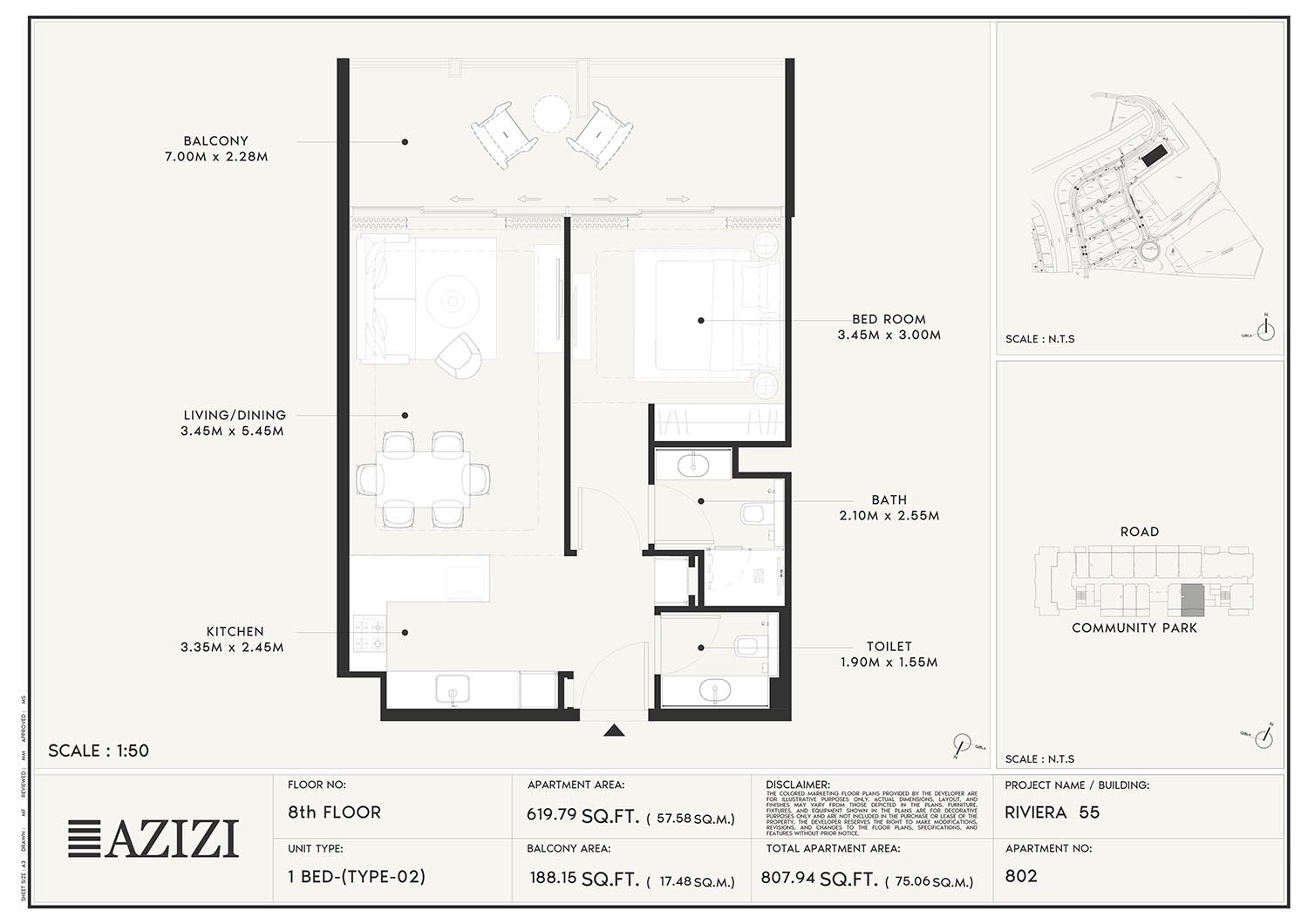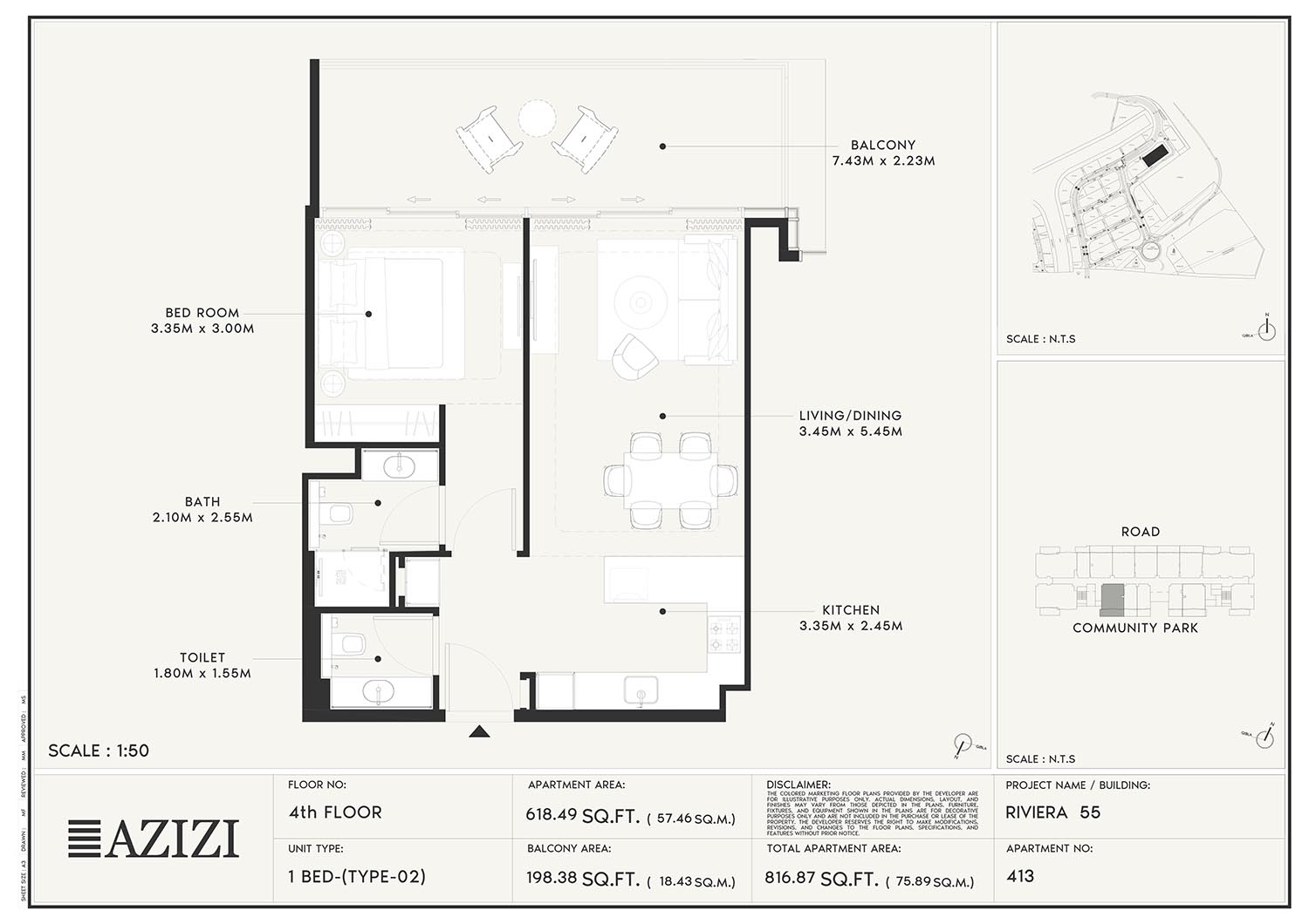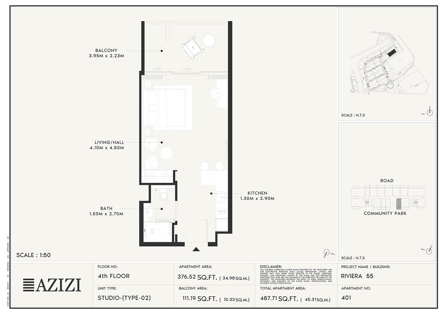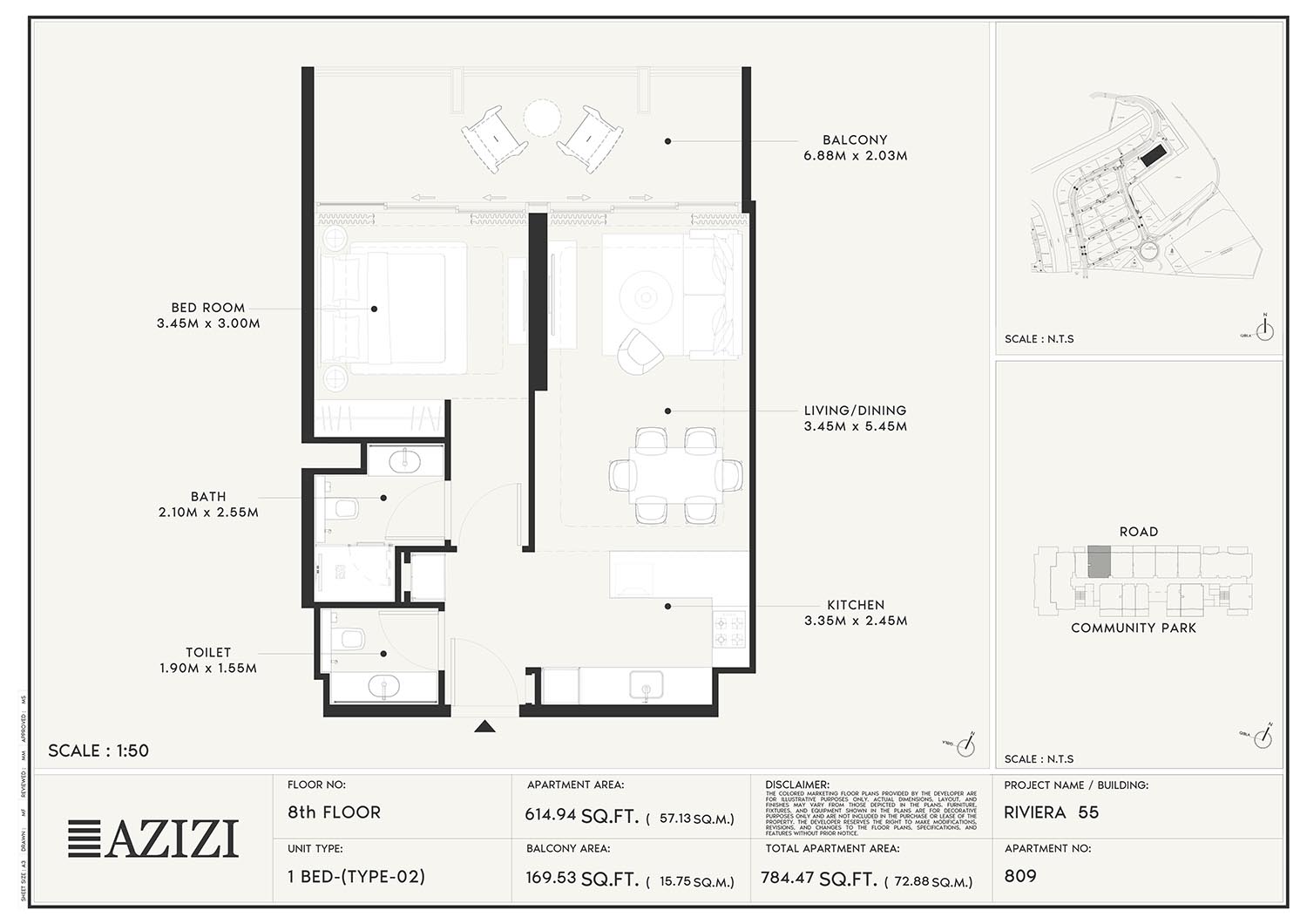 The smartly constructed floor plan layouts of Azizi Riviera 55 have a variety of elegantly designed residences to accommodate diverse lifestyles. The layout is an open one with a lot of natural light and space utilisation that each unit boasts. The expansive windows and individual balconies open to either calm lagoon side or the energetic and bustling community around. Mindfully imagined designs of the interior combine practicality with aesthetics, while modern kitchens, expansive living spaces, and good opulent bathrooms create a fluent daily routine. High quality finishes and intelligent storage make it even more appealing as nowhere is style sacrificed.