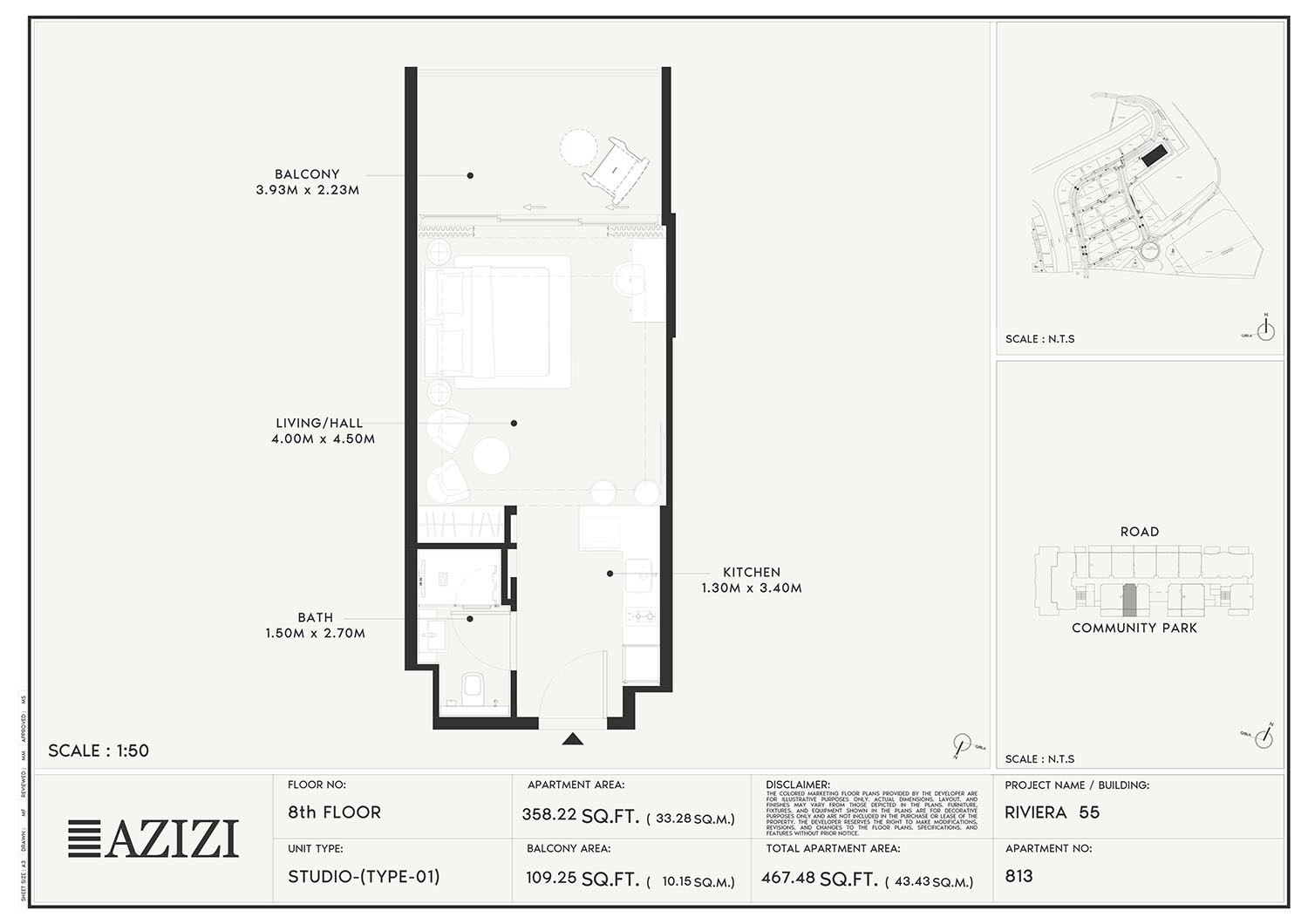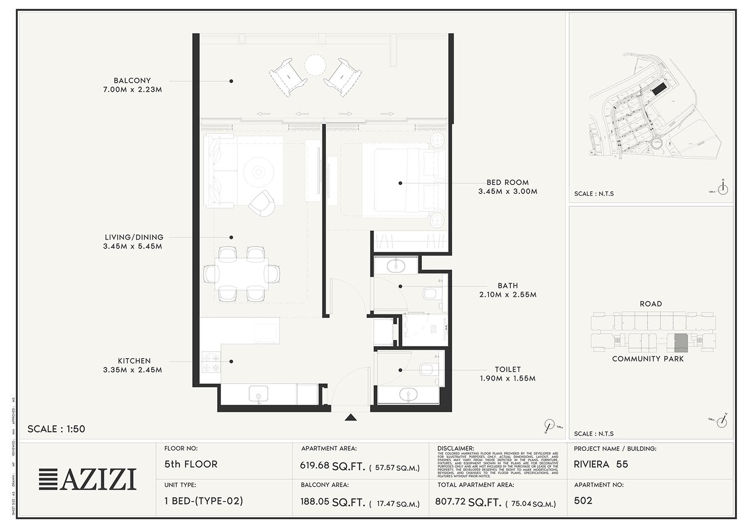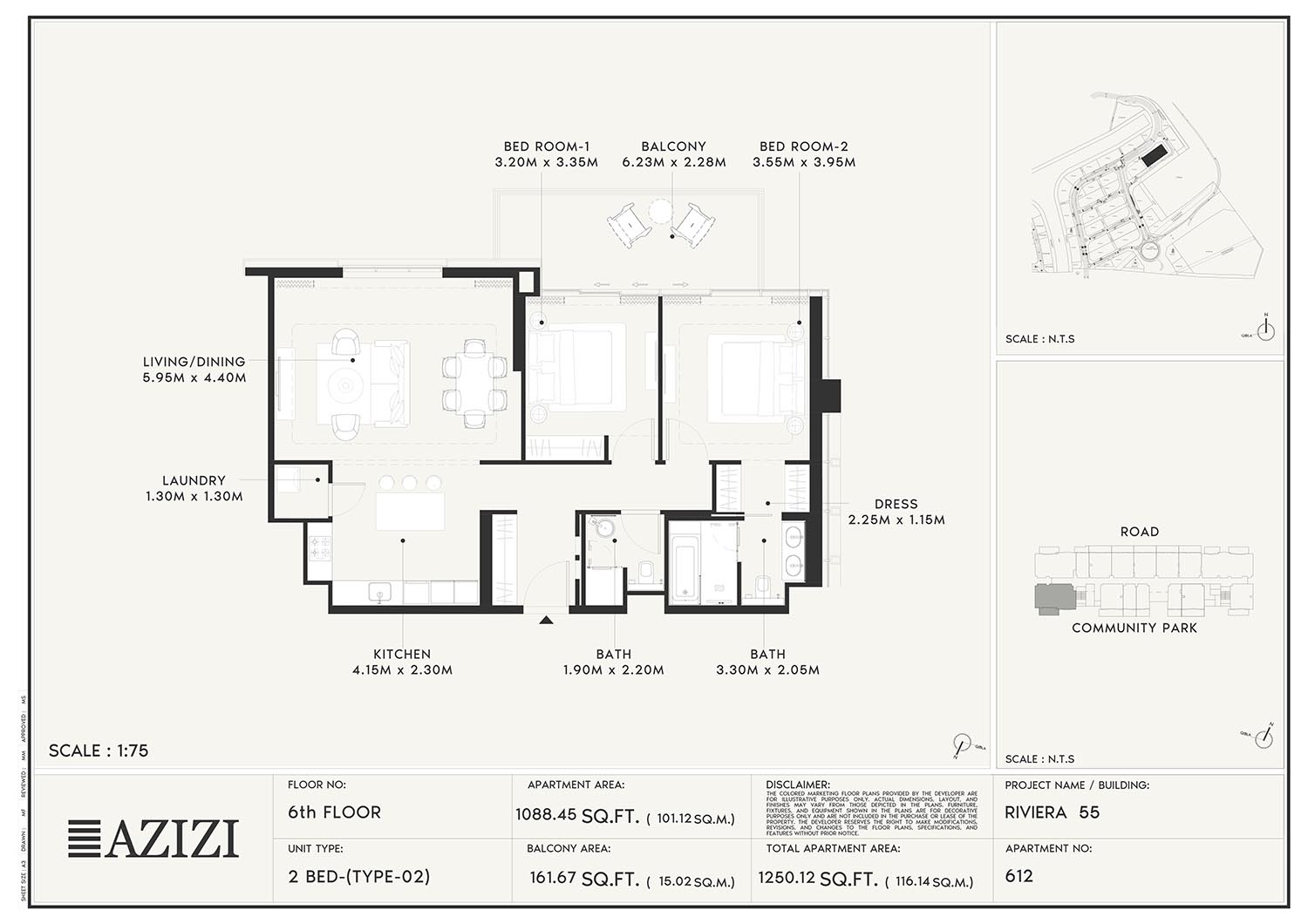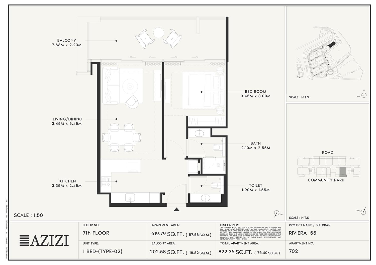 The smartly constructed floor plan layouts of Azizi Riviera 55 have a variety of elegantly designed residences to accommodate diverse lifestyles. The layout is an open one with a lot of natural light and space utilisation that each unit boasts. The expansive windows and individual balconies open to either calm lagoon side or the energetic and bustling community around. Mindfully imagined designs of the interior combine practicality with aesthetics, while modern kitchens, expansive living spaces, and good opulent bathrooms create a fluent daily routine. High quality finishes and intelligent storage make it even more appealing as nowhere is style sacrificed.