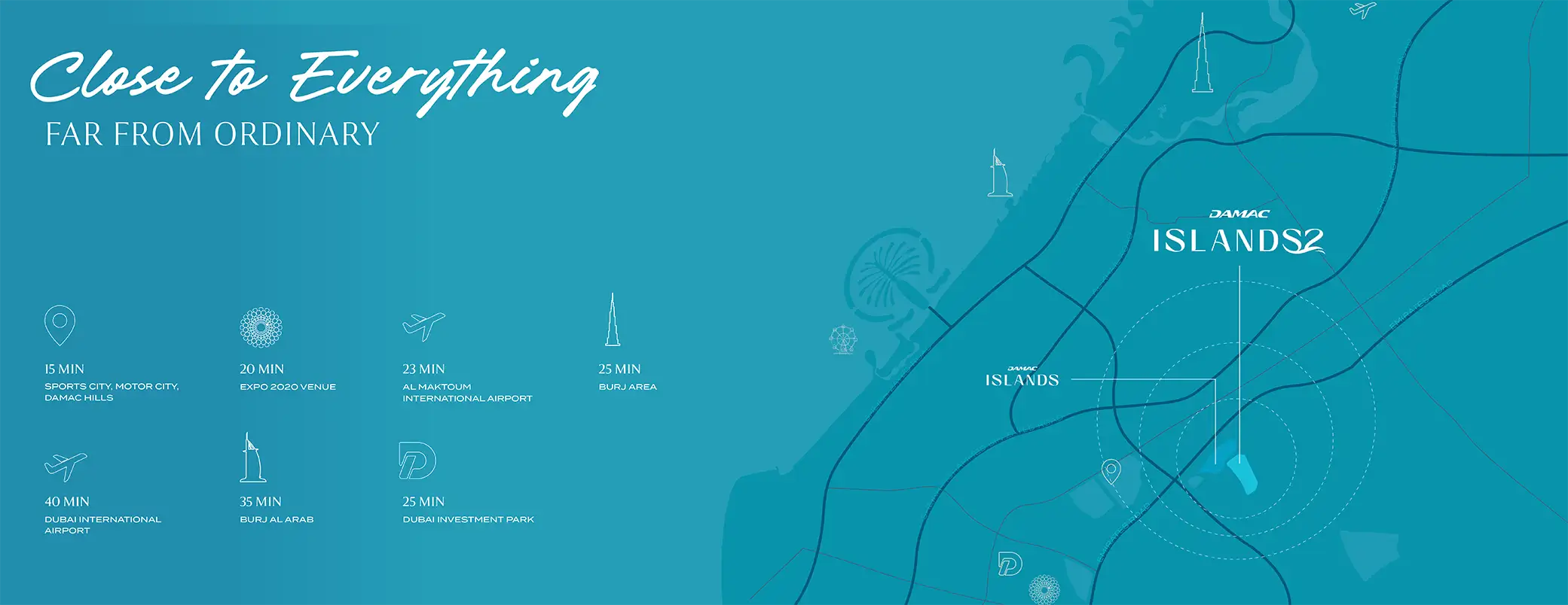 Positioned carefully, next to the first phase of Damac Islands, this newly announced cluster carries on the heritage of a shared elevated living described by a tropical theme. The thoughtfully laid out infrastructure of this address features twin villas and luxury villas at the edge of the water bodies, while the townhouses are secluded amidst the calm and lush greenery in a walkable locality. Here, luxury villas are the refined creations of expensive and elevated lifestyles, where each luxury unit comes with a personal pool, terraces, and the privilege of quick access to the lagoon.