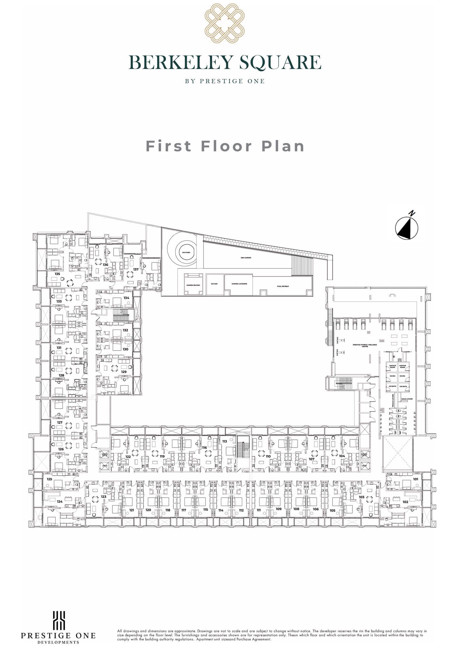 Berkeley Square proposes a well formulated floor plan combination of an additional studio, 1, 2 and 3 bedroom apartments to accommodate variety of residents. All the floor plans are designed with an aim of efficiency of spaces, open plans, and exquisite finishes. Generous windows variable and generous living quarters make the interiors light and airy and the luxury of separate bedroom quarters makes the space comfortable and relaxing. The contemporary kitchens and the bathrooms are neat and functional and are part of the design. The intelligent design would provide you with a magnificent living experience regardless of whether you are an individual professional, a couple, or an expanding family.