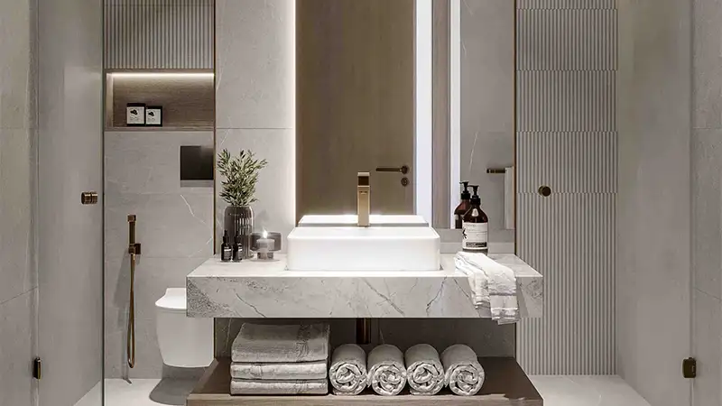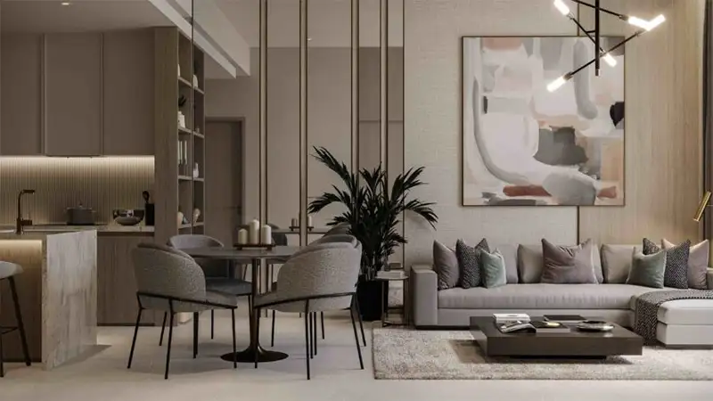 Explore an unmatched welcome into the designer lobby that is defined by an inviting and opulent ambience. Imagined creatively, the spaces fuse exquisite elements with warm and enticing tones. Complete with finely chosen lavish furnishings, chic lighting, and soft finishes, every corner has been crafted to enhance the comfort and elegant spirit for dwellers and guests. The insides of homes are also something extraordinary with open-plan layouts, where a living room features an open dining zone and a furnished seating zone. The kitchen is also integrated into the living room, crafted with a commitment to quality, spacious cabinets, and functional spaces. Bedrooms are simply calming and mesmerising sanctuaries to relax and nourish your mental and physical well-being in privacy.