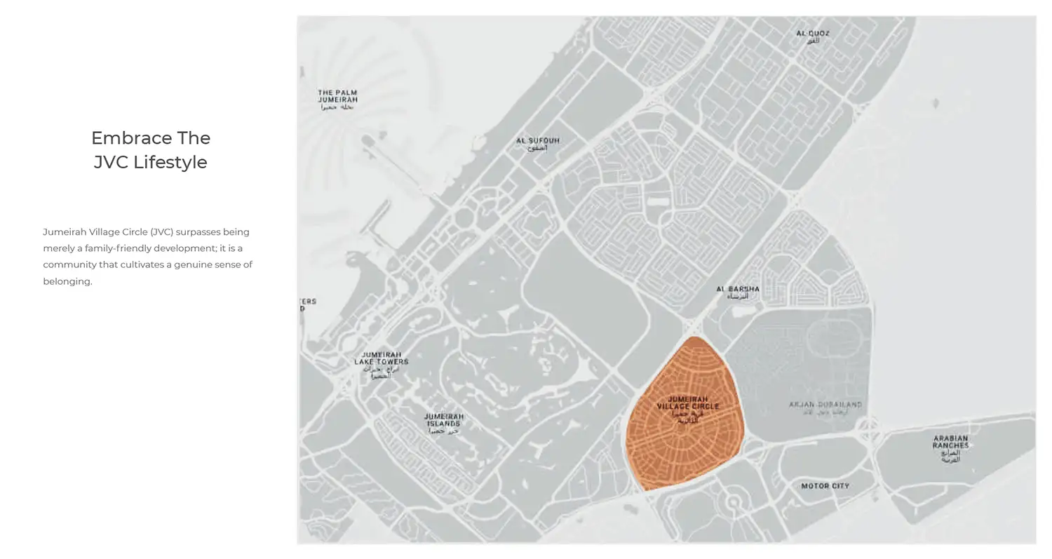 - Situated in the iconic JVC community, close to the parks, Al Khail Road, premium cafes, dining zones, and The First Collection Hotel