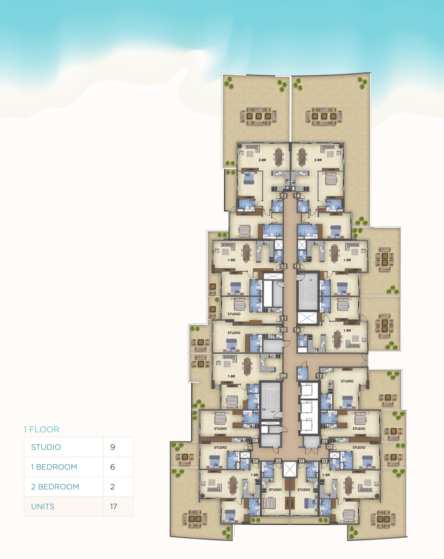 With private beach access, lush green parks, and a range of recreational areas, the development invites residents to a world of tranquillity. The design reflects a harmonious balance between nature and modern architecture, surrounded by vibrant landscapes. Residents will find a well-curated selection of retail outlets, dining options, and entertainment venues within the community, providing both convenience and a cosmopolitan lifestyle. The façade not only prioritizes elegance and luxury but also a secure and comfortable lifestyle, offering 24/7 security and services.