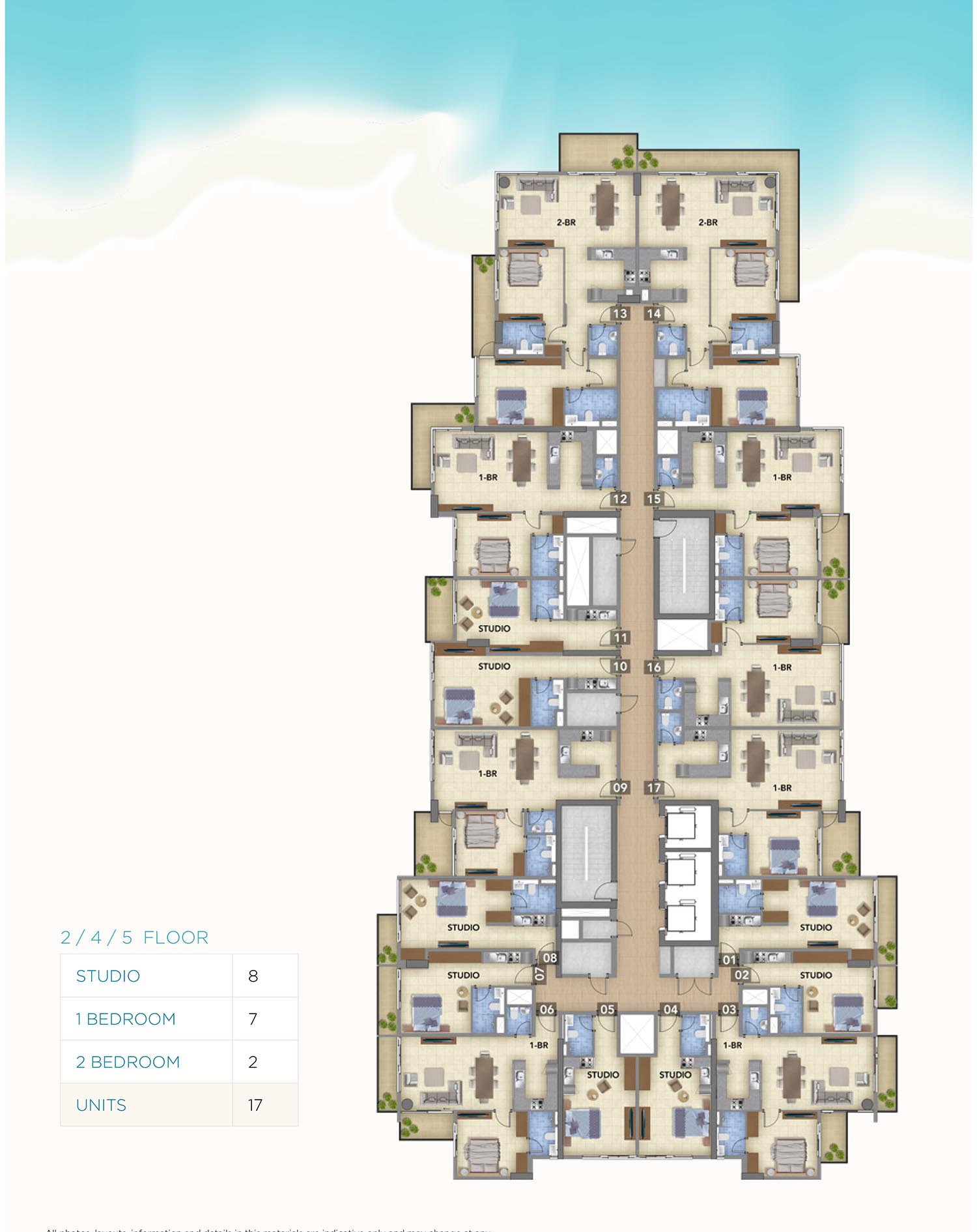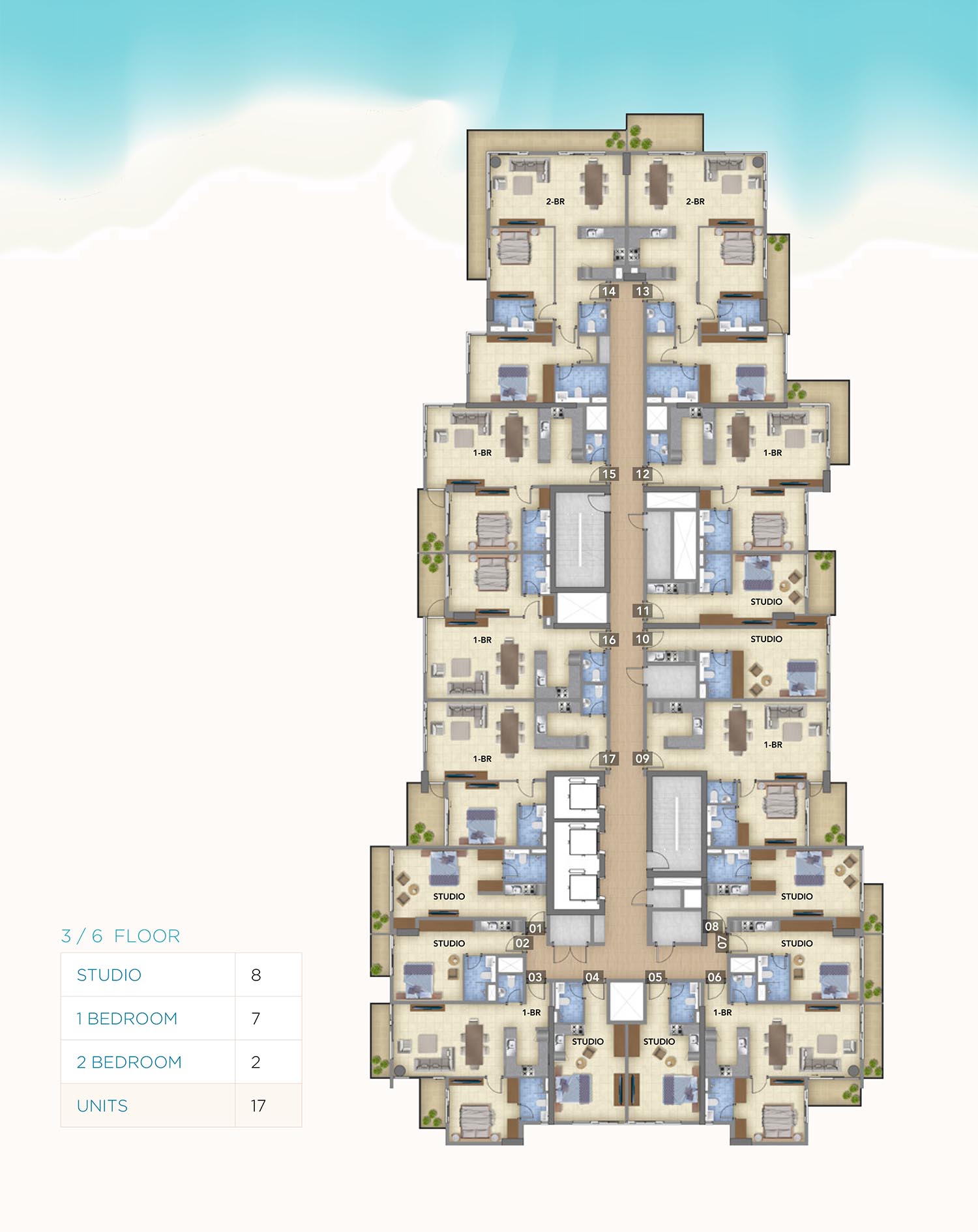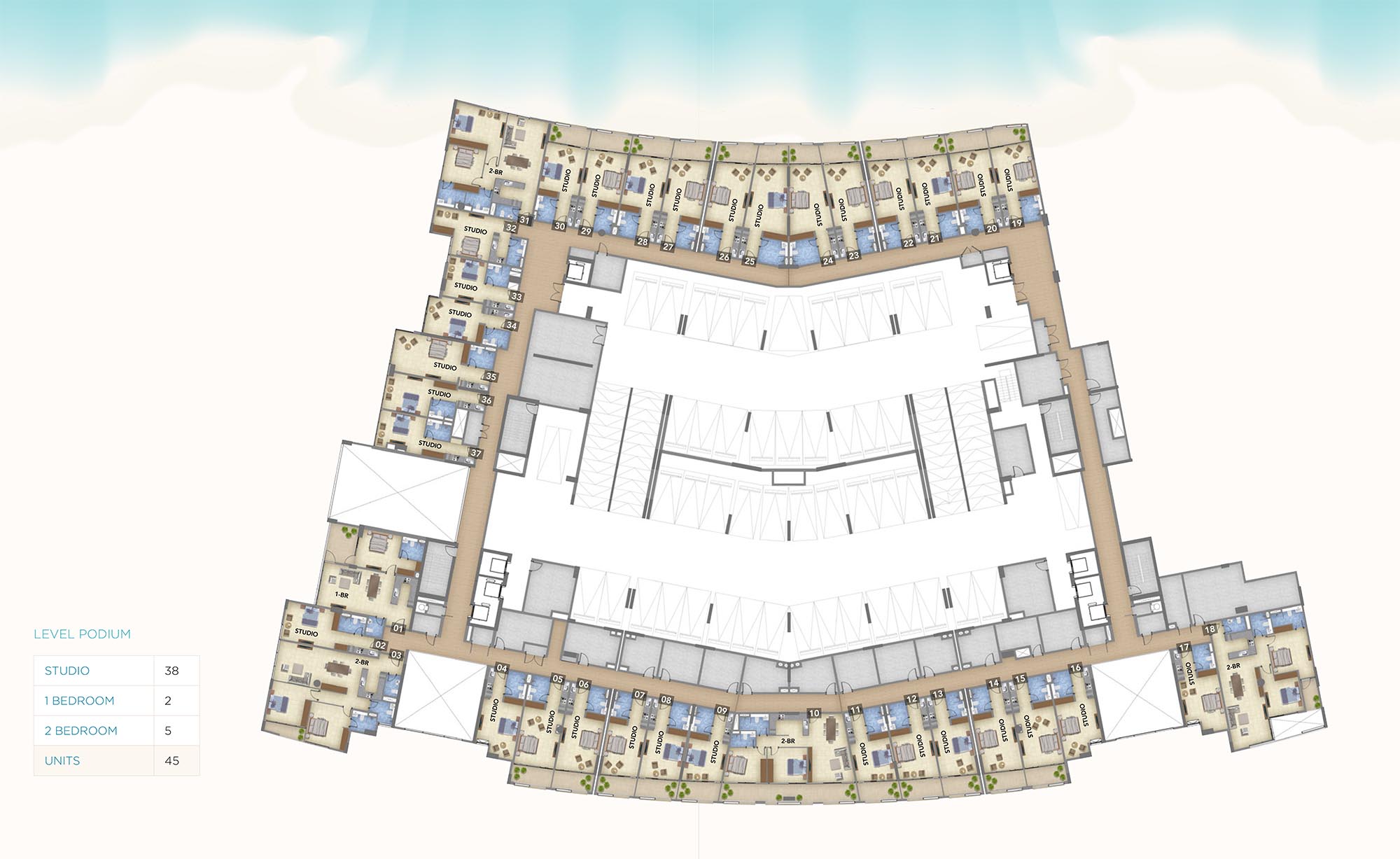 Blue Pearls offers a diverse selection of spacious and meticulously designed floor plans of plush bedroom residences to cater to different preferences and lifestyles. Each residence is crafted with modern layouts and high-quality finishes, maximizing both space and comfort. The floor layouts are strategically designed to incorporate open living spaces, allowing for natural light and seamless flow between rooms. Modern kitchens, elegant bathrooms, and spacious bedrooms are standard, with many units featuring private balconies with breathtaking views of the waterfront and surrounding landscapes.