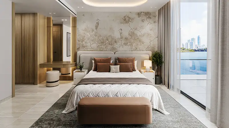 With an exclusive collection of 131 residences, every abode is placed to offer privacy and a serene environment with quieter corridors and a sense of luxurious living. Every unit has been crafted with a smart home system and fully furnished rooms, where you will have control over lighting, temperature, and security by just touch or voice commands. This includes energy-efficient features, built-in security, voice & touch control, and custom lighting & temperature settings. The living room of each unit is extravagantly spacious with huge windows that are framed by the horizon of sea, island, and the city, while the double-height balconies open to the sunlight and breathtaking vistas. All the fully furnished bedrooms come with walk-in closets, branded pieces, and an impressively cosy and calm ambience for relaxation.