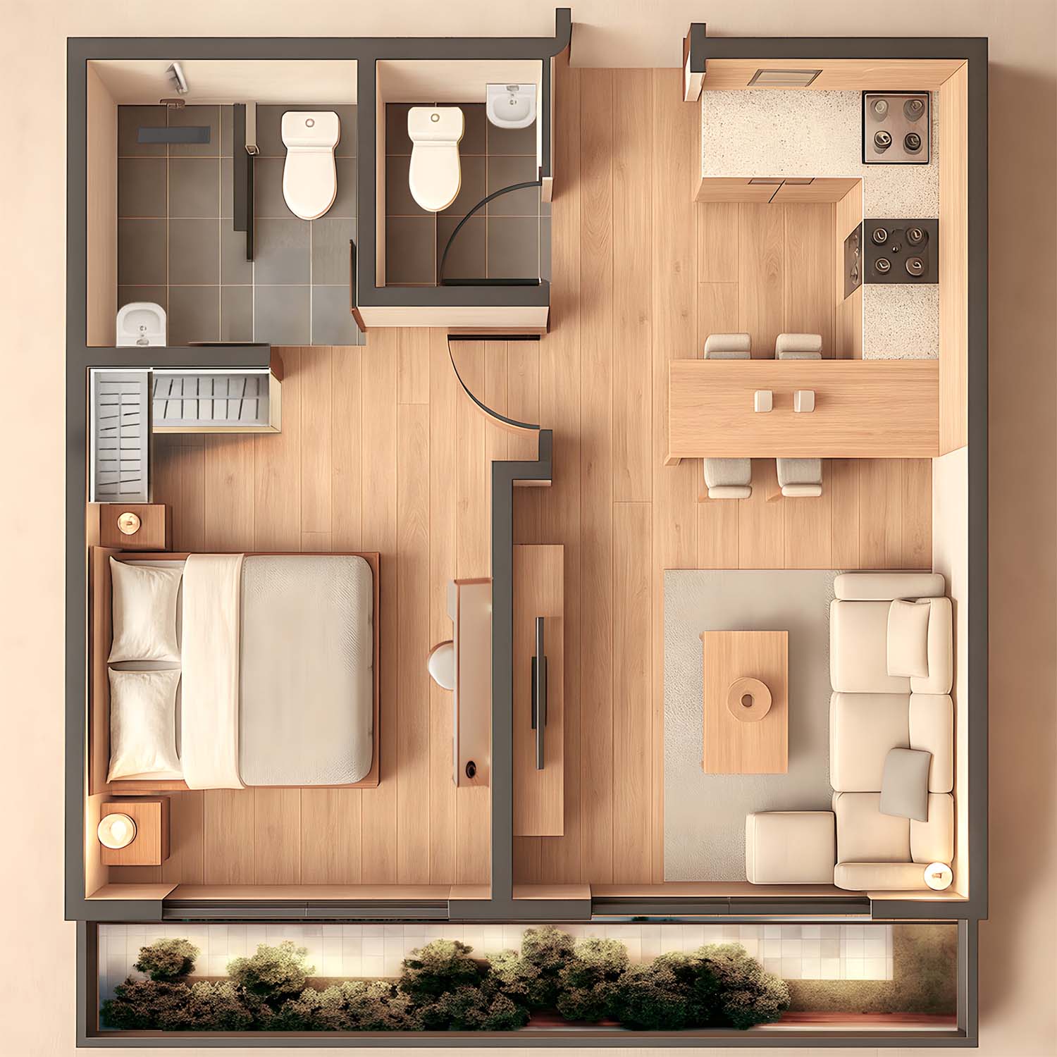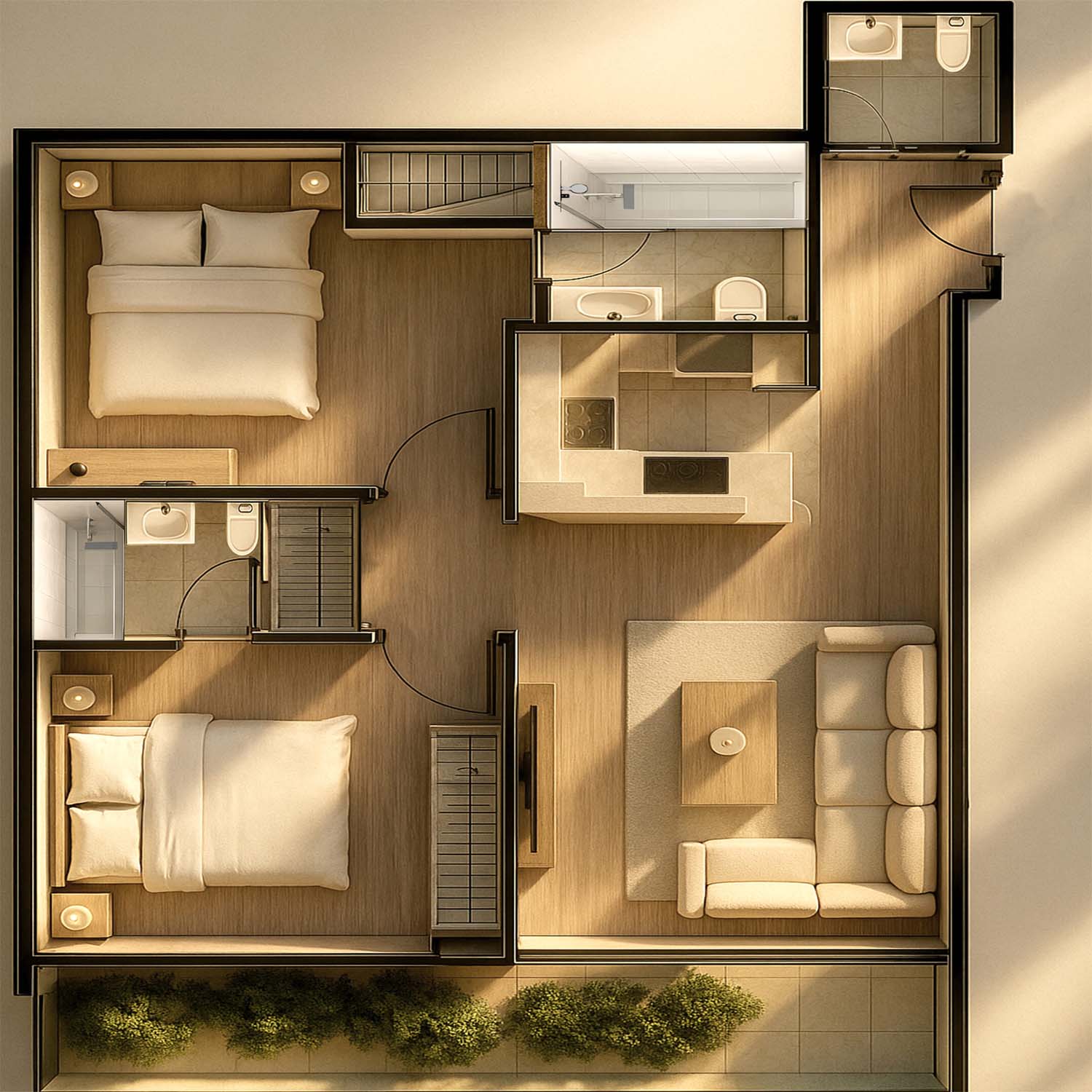 Featuring a total of 168 exclusive studios and 91 and 13 units of one & two-bedroom homes. All fully furnished homes of this tower are made to match the urban lifestyle of the natives. Each unit comes with elegant and neutral soft layouts with an open concept design. Every living room comes with huge windows that bring daylight through the restful seating, dining, and modern kitchen spaces for fluent accessibility. The bedrooms are the cosiest retreats with a warm and serene ambience, while direct access to the balcony blends the scenic indoor and outdoor experiences.