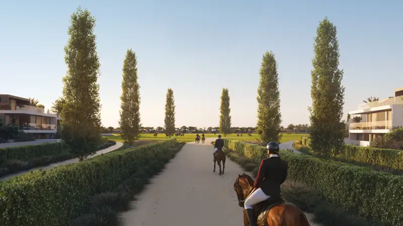 Imagine looking out from the expansive windows of your villa to see emerald-green polo fields stretching across the horizon, their verdant contours glistening with golden rays. This second phase marks a singular blend of modern architectural sensibility and the timeless splendour of equestrian tradition, resulting in a dwelling that's not merely a home but a legacy.