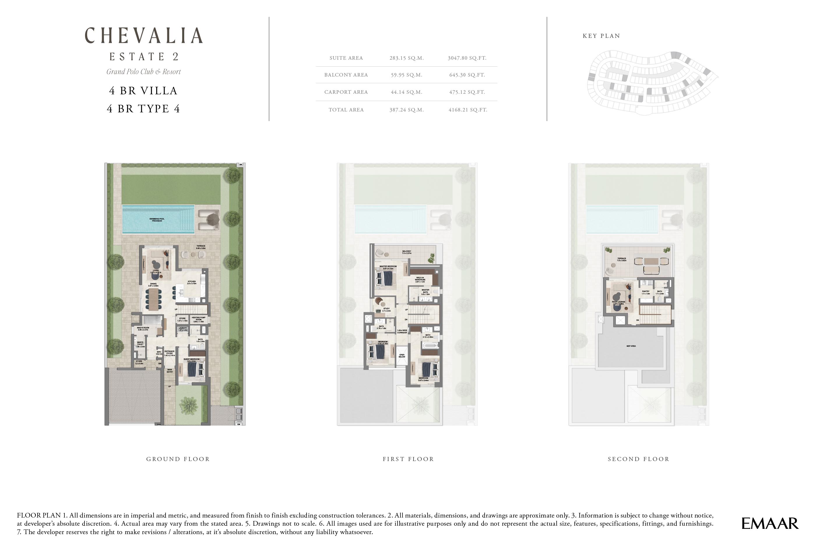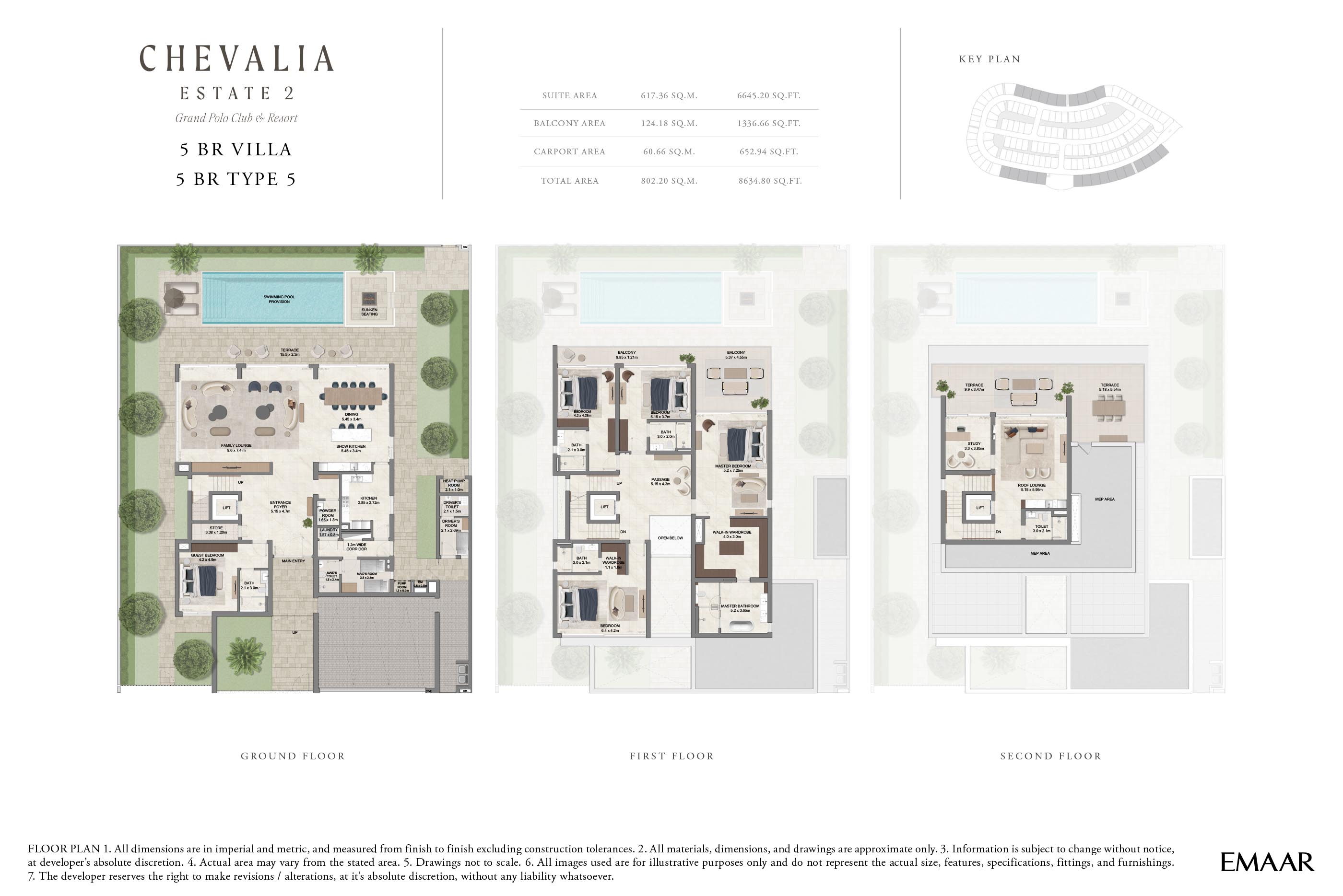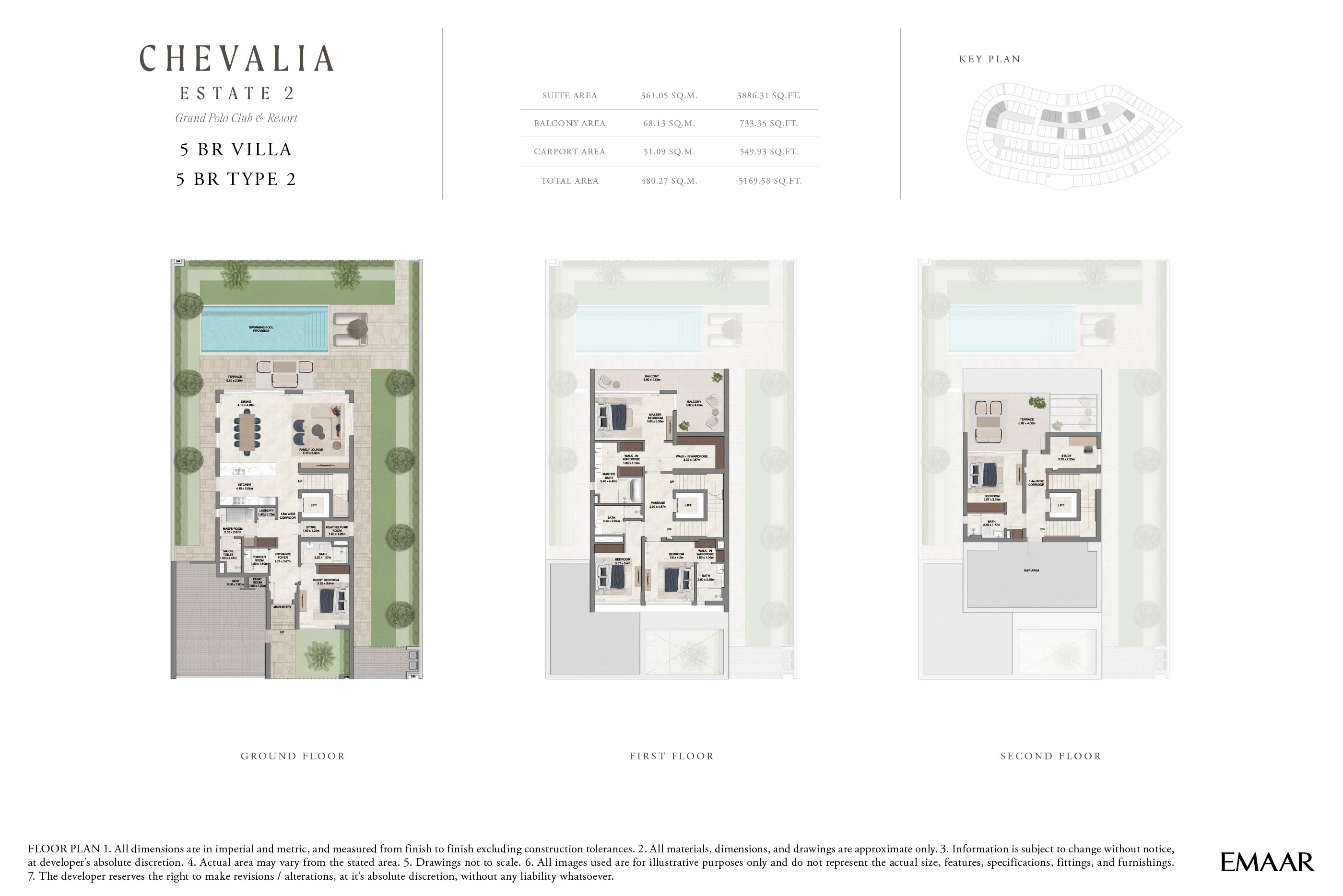 At Chevalia Estate 2, residents can explore the grand floor plans of 4 and 5-bedroom villas across expansive built-up areas. Open-plan living rooms flow seamlessly into dining spaces and outdoor terraces, creating an atmosphere of fluidity and connection. Master suites are designed as personal sanctuaries, featuring walk-in closets, private balconies and spa-inspired bathrooms. Kitchen are crafted with high-end finishes and modern appliances, perfect for both everyday living and entertaining.