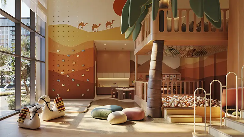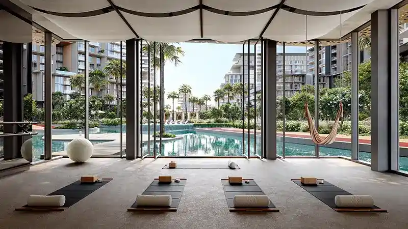 Step outside within this walkable community and explore a realm of experiences. This includes swimming pools for kids’ & adults, sunken lounges, and water features that invite relaxation and tranquillity throughout the setting. A well-equipped training studio, yoga studio, world-class padel, & tennis courts, and jogging & cycling tracks are the places provided to enjoy the active and well-being experiences in the natural energy of this society.