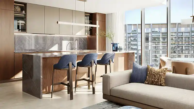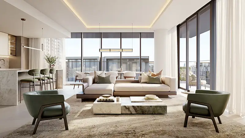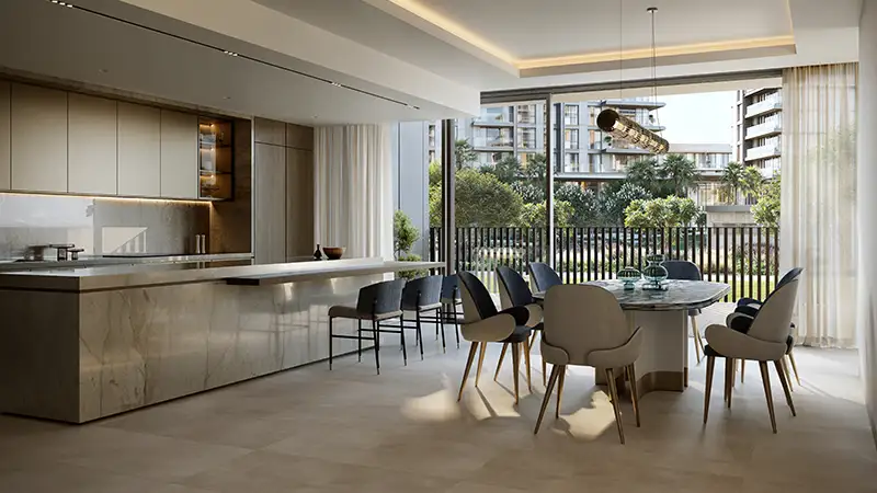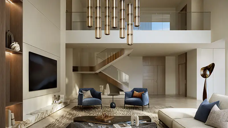 All the apartments are paired with simply modernist design and sweeping views of the surroundings. The insides come with thoughtfully planned layouts, high-end finishes, and modern kitchens made to enhance both convenience and comfort. A limited collection of duplexes is also combined for elevated indulgences, where every detail speaks of unmatched luxury. Each unit features double-height living areas effortlessly linked to the personal terrace that offers panoramic views of the park, serene water features, and the buzz of the city.