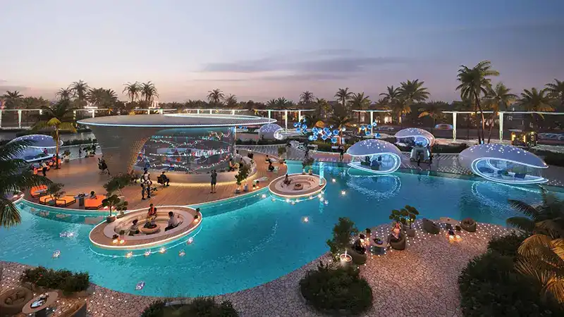 - Wellness-focused working spaces such as AI integrated, trading garden, eco business pods, organic pool, eco-friendly design
