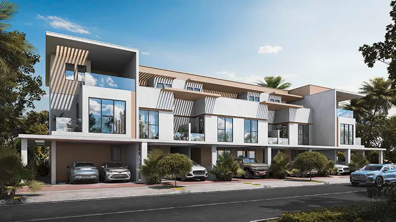 Luxury villas are the best of the creation of this community. Here, each unit comes with Calacatta Gold general flooring, brushed brass, walnut wooden veneer wardrobes, and ultra massive bathrooms feature wall of Marvel W Taj Mahal, polished porcelain tile, and general metal of brushed brass that enhance the overall quality with modern elegance. The insides of twin villas are not only enormous, but also warm, elegant, and welcoming to families. Comes with two soft, earthy and neutral calming variants of tones of materials, the living space of each home is extended and furnished with a seating area, a dining zone, and an open kitchen fitted with quality materials and additional spaces.