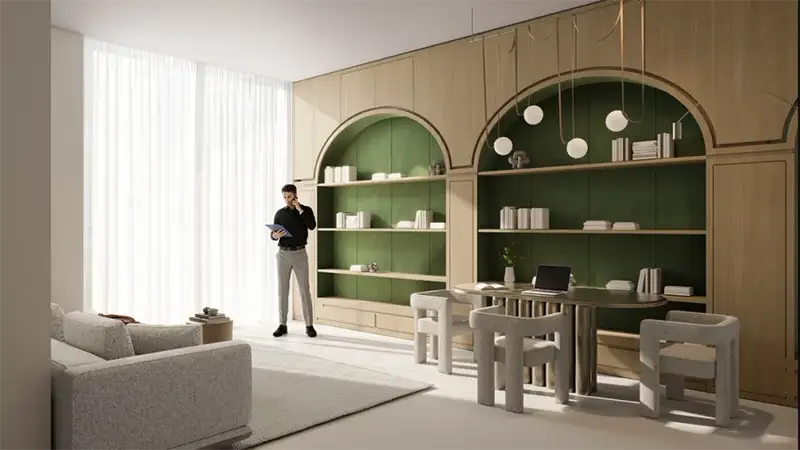 The architecture is contemporary and intricate, featuring luxurious private and shared common spaces that communicate with the outside surroundings. Every element has been mindfully aligned, and each detail speaks sophistication, whether it is clear lines, sharp edges, well-framed units, or the landscaped podium with trees and plantations. The home interiors are themselves visually compelling with ample storage, layouts, and furnished settings perfect for living. Additionally, the parking, retail, offices, and amenities are integrated into this complex, which enhances a balanced daily lifestyle.