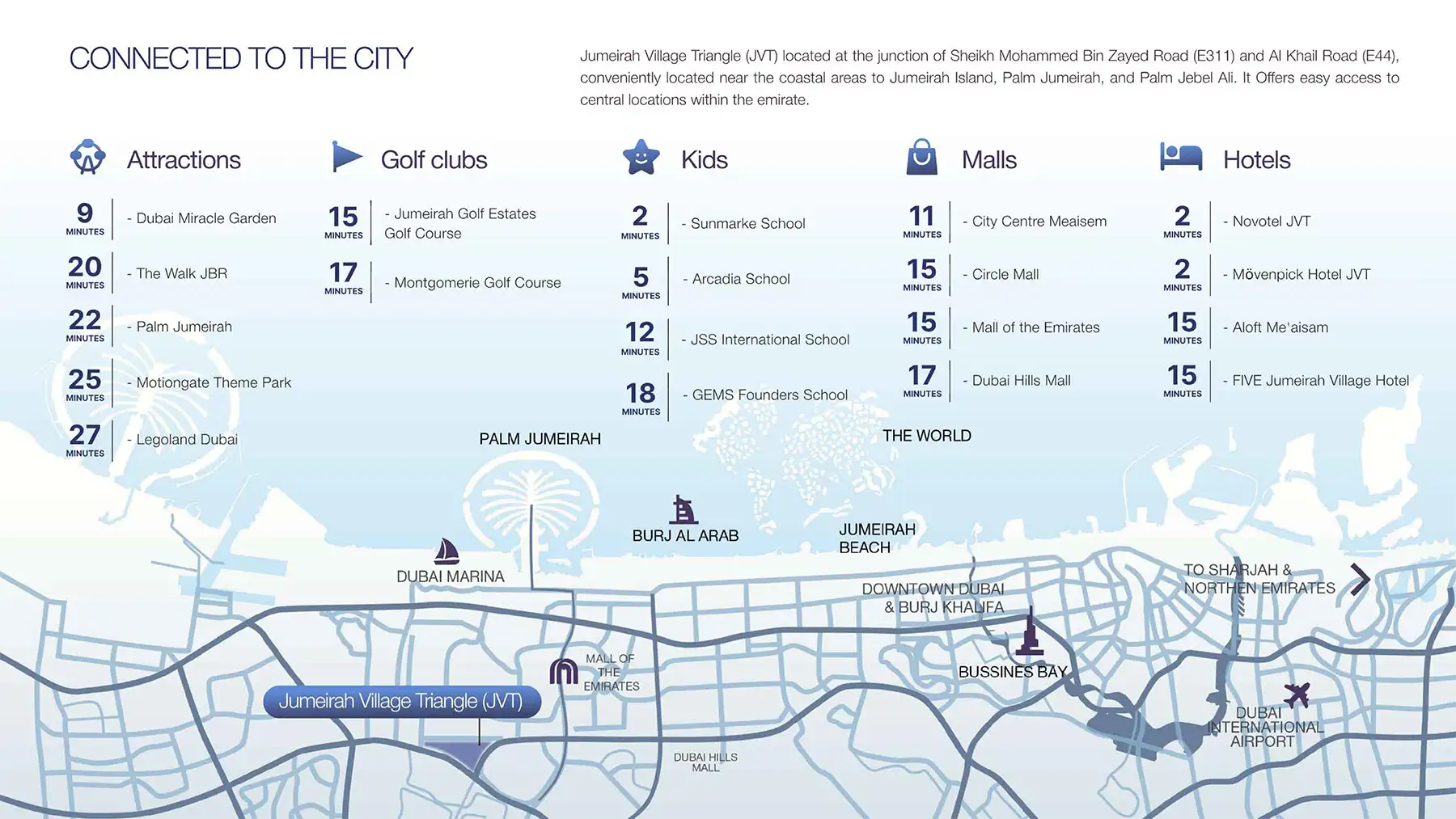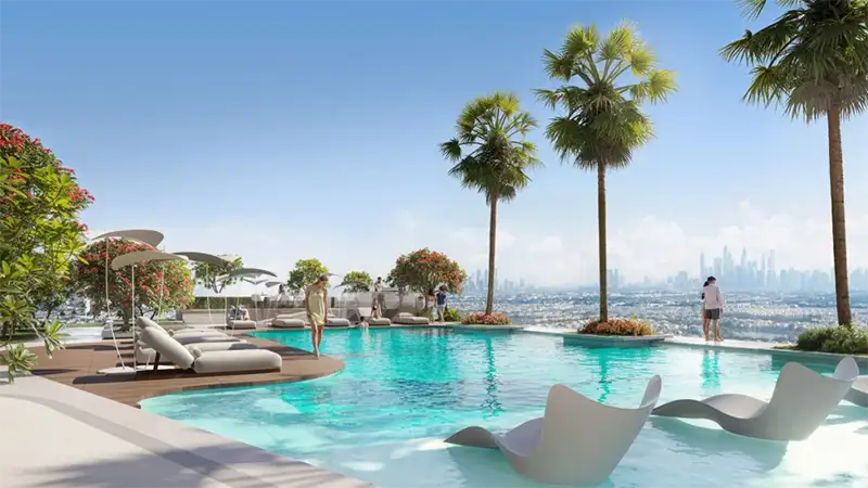 Elaris Sky by Object 1 Development discloses a stylish and soaring vertical sanctuary in JVT Dubai, presenting a mix of studios, 1 & 2-bedroom apartments. The unique name of this sky-touching jewel is derived from the Greek language, which represents the natural elements of light and air. More than just a piece of concrete, metal, and glass, it is a paradise of balance and serenity that embraces nature’s lively harmony. Situated in the sustainable and well-connected region of the Emirates, the Jumeirah Village Triangle stands as a green freehold district with an impressive and evolving suburban environment. The tower’s timeless design is crafted to offer an all-inclusive ambience, where living, working, and other leisureful and lifestyle experiences coexist.
