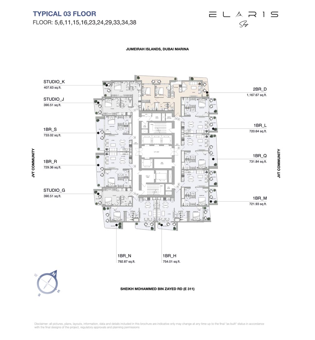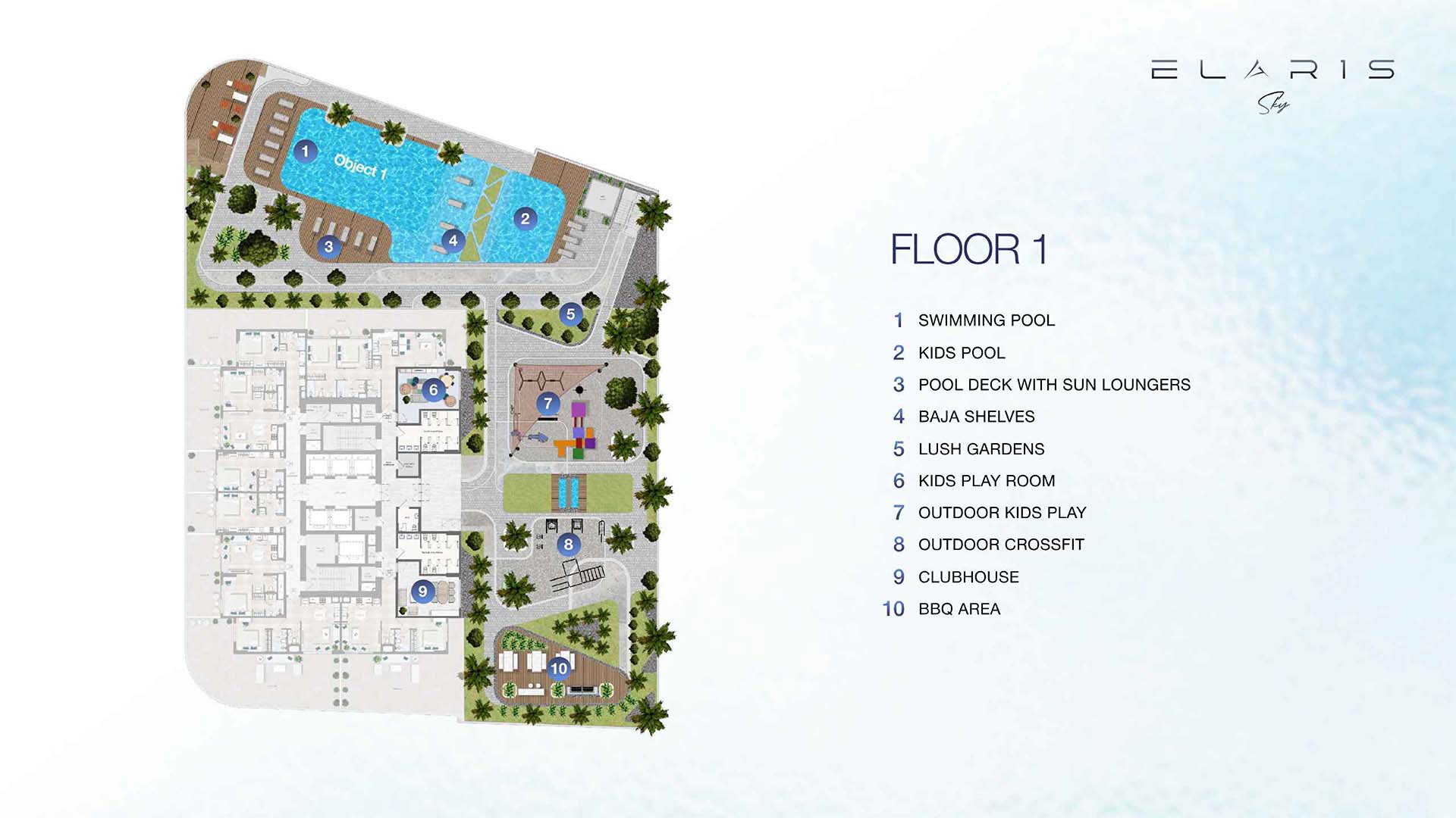Rising as a residential milestone, the Elaris Sky comprises a selection of studios, 1 & 2-bedroom apartments with comprehensive and chic floor plans. In this multi-storey jewel, every residence focuses on providing spaces for calm relaxation and celebrating meaningful moments with family. The expensive living room is merged into the open dining zone and extended to the modern kitchen that offers a sense of functionality in a comfortable setting. All the bedrooms and living zone with huge windows and balconies express the perfect ambience that blends scenic views and fresh air into the private and opulent homes.