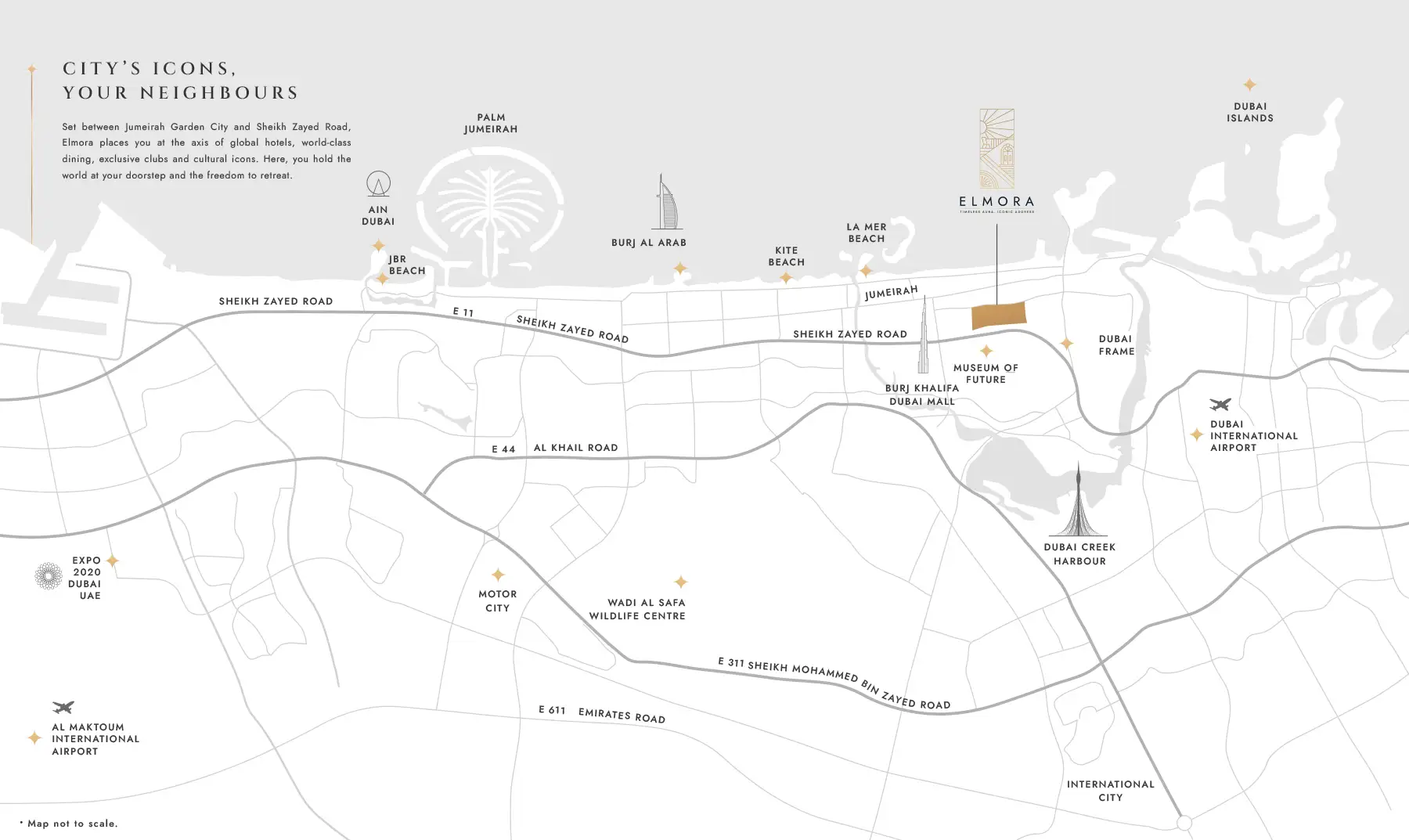 Neoterra Developments showcases an exclusive residential epitome of Elmora at Jumeirah Garden City, Dubai, with plush studios, 1, and 2-bedroom apartments. This low-rise sculptural masterpiece reflects an elegant appeal, while the design is an expression of a timeless design with an eternal flair. Configuring a unique concept of luxurious residences and various lifestyle amenities, leisure & convenient shared spaces and services, it is a heavenly paradise built to cater to all sorts of urban lifestyles. Lies amidst the dazzling seacoast and the bustling modern energy, this boutique property is a proud part of the premier suburban community of Al Satwa.