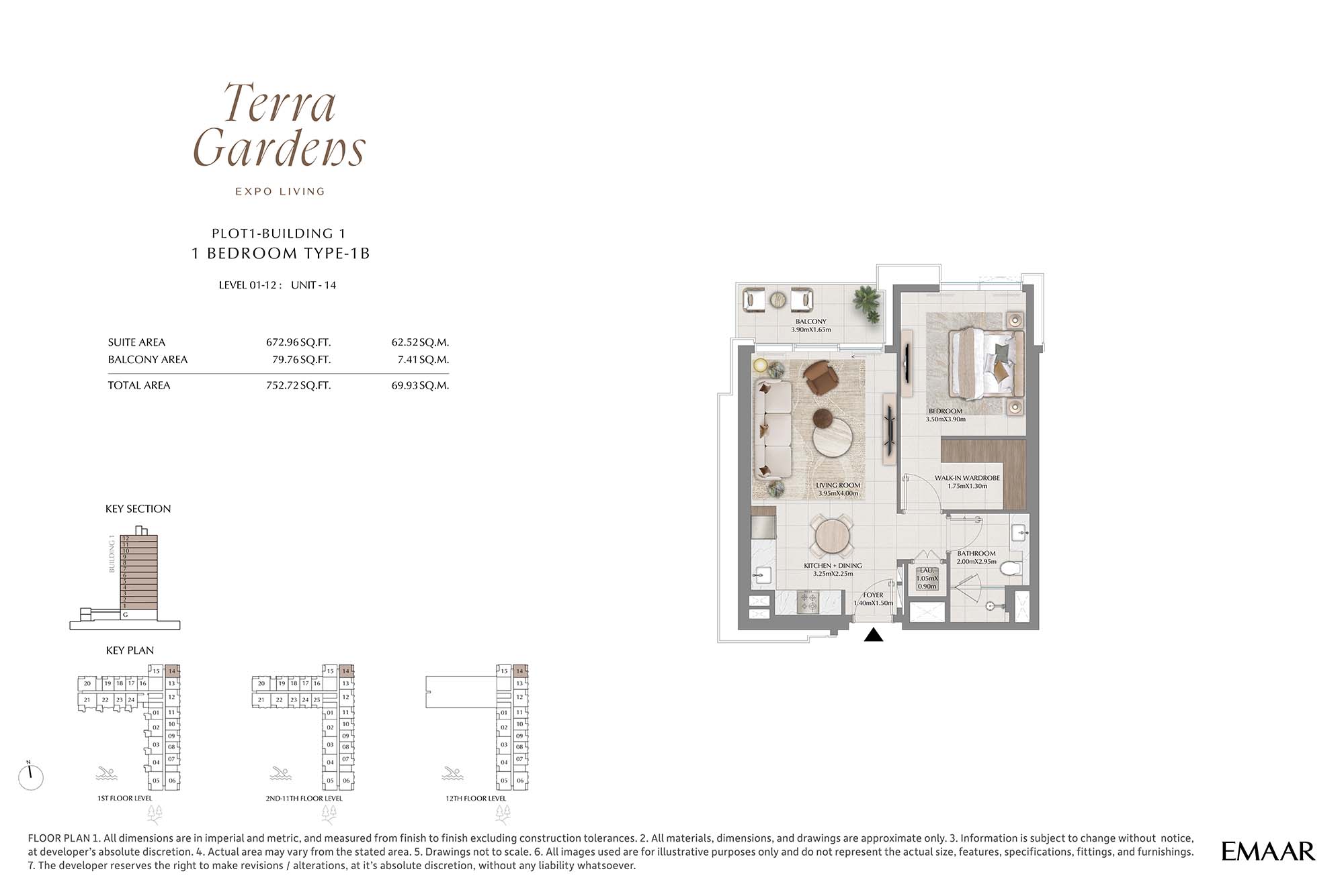 | Building 1 | 1 Bedroom | 1st-12th Level Unit-14 (Type-1B) | 752.72 Sq Ft | Apartment |