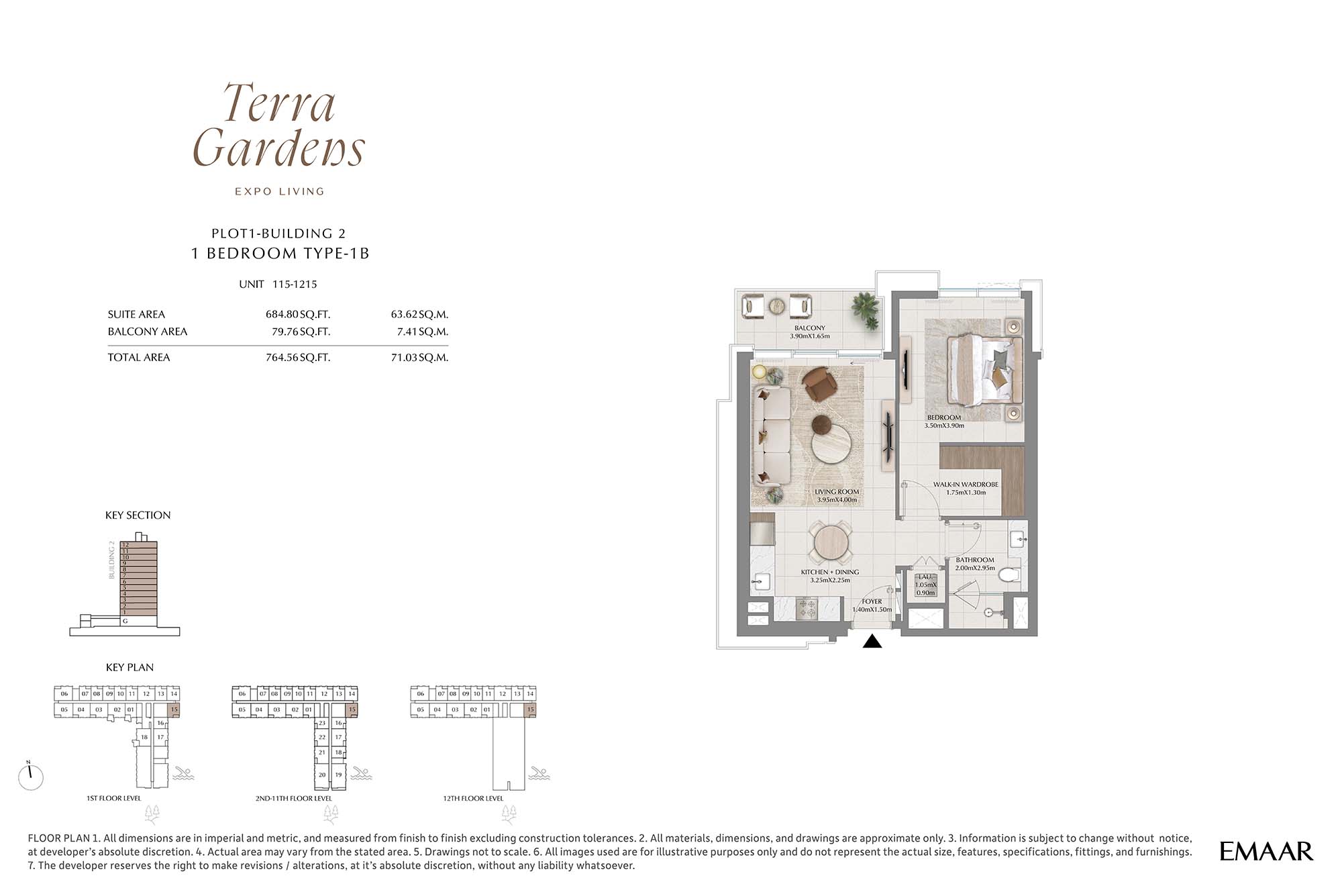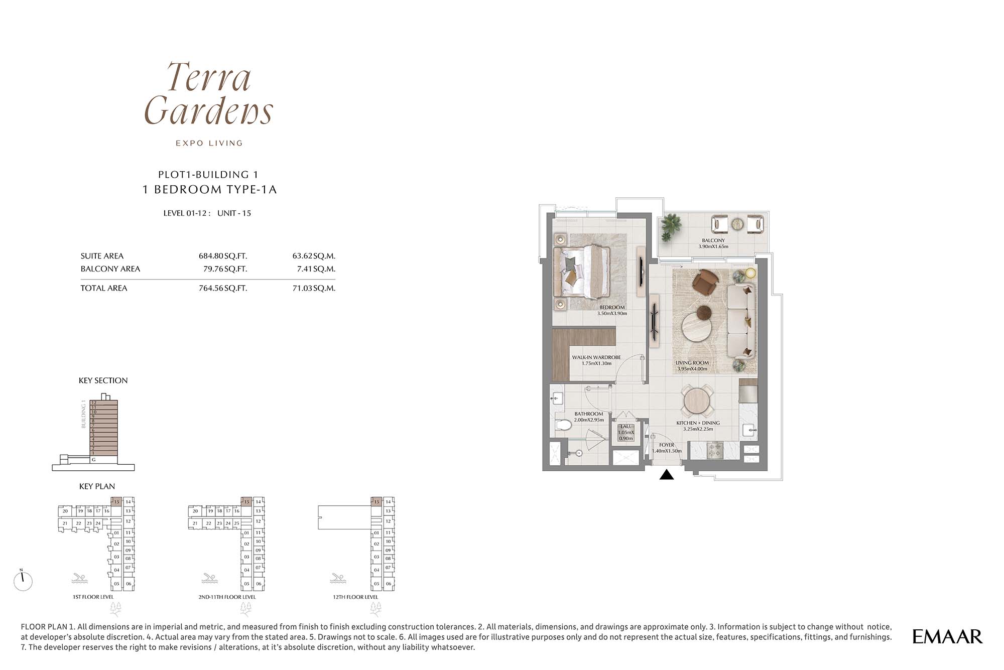 | Building 1 | 1 Bedroom | 1st-12th Level Unit-15 (Type-1A) | 764.56 Sq Ft | Apartment |