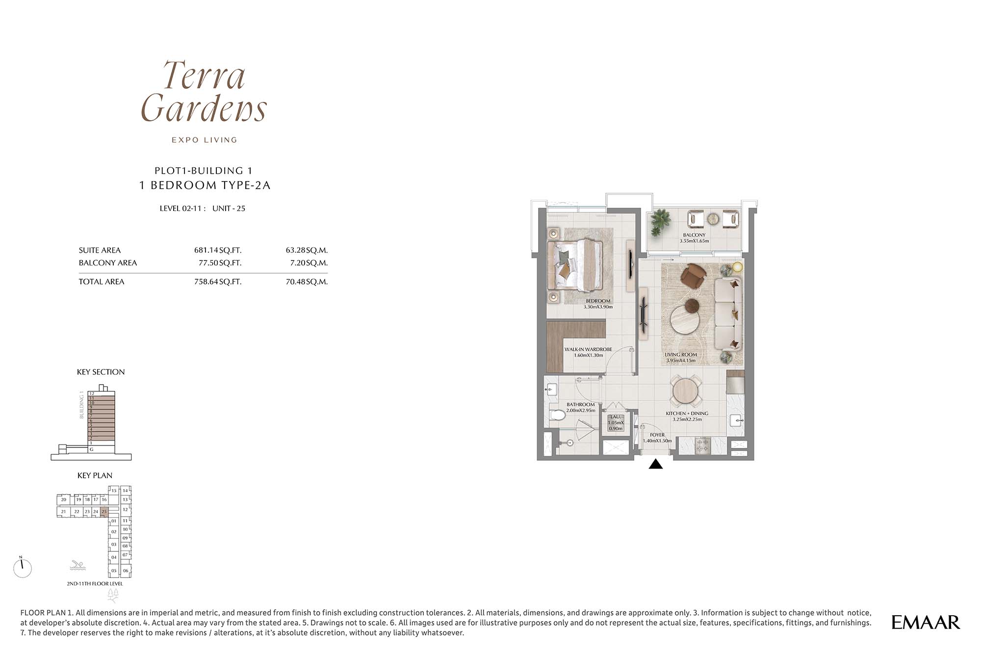 | Building 1 | 1 Bedroom | 2nd-11th Level Unit-25 (Type-2A) | 758.64 Sq Ft | Apartment |