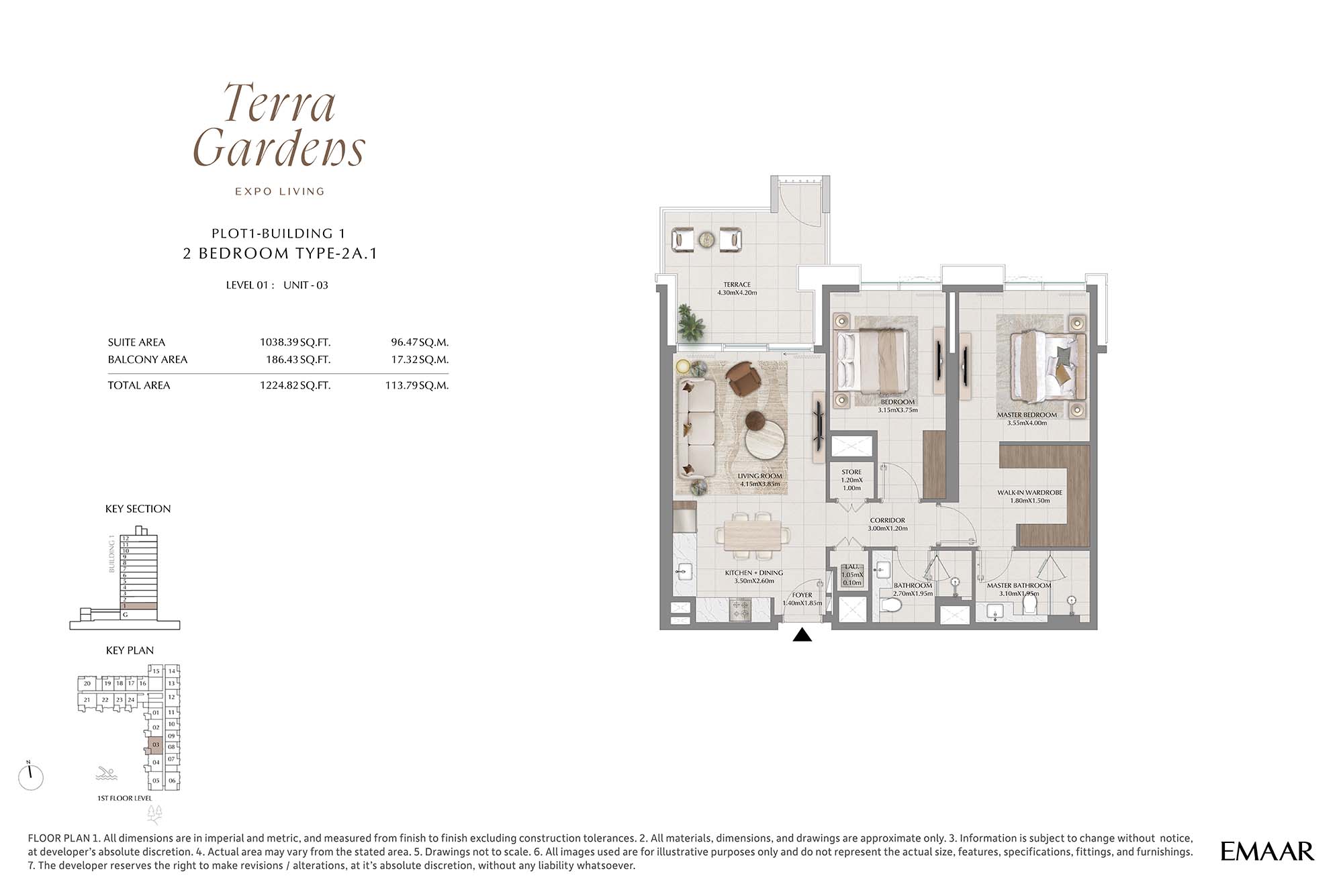 | Building 1 | 2 Bedrooms | 1st Level Unit-03 (Type-2A.1) | 1224.82 Sq Ft | Apartment |