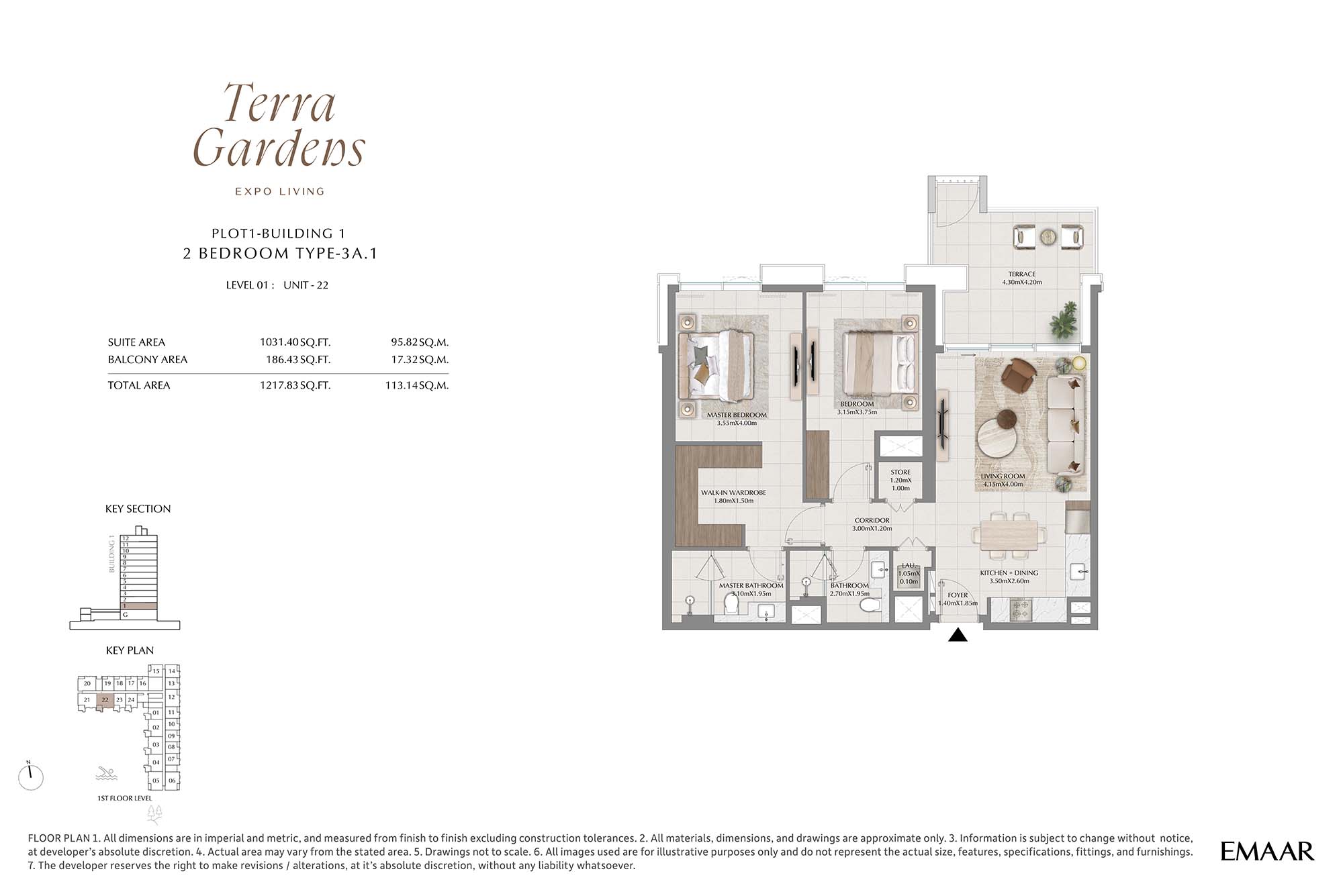 | Building 1 | 2 Bedrooms | 1st Level Unit-22 (Type-3A.1) | 1217.83 Sq Ft | Apartment |
