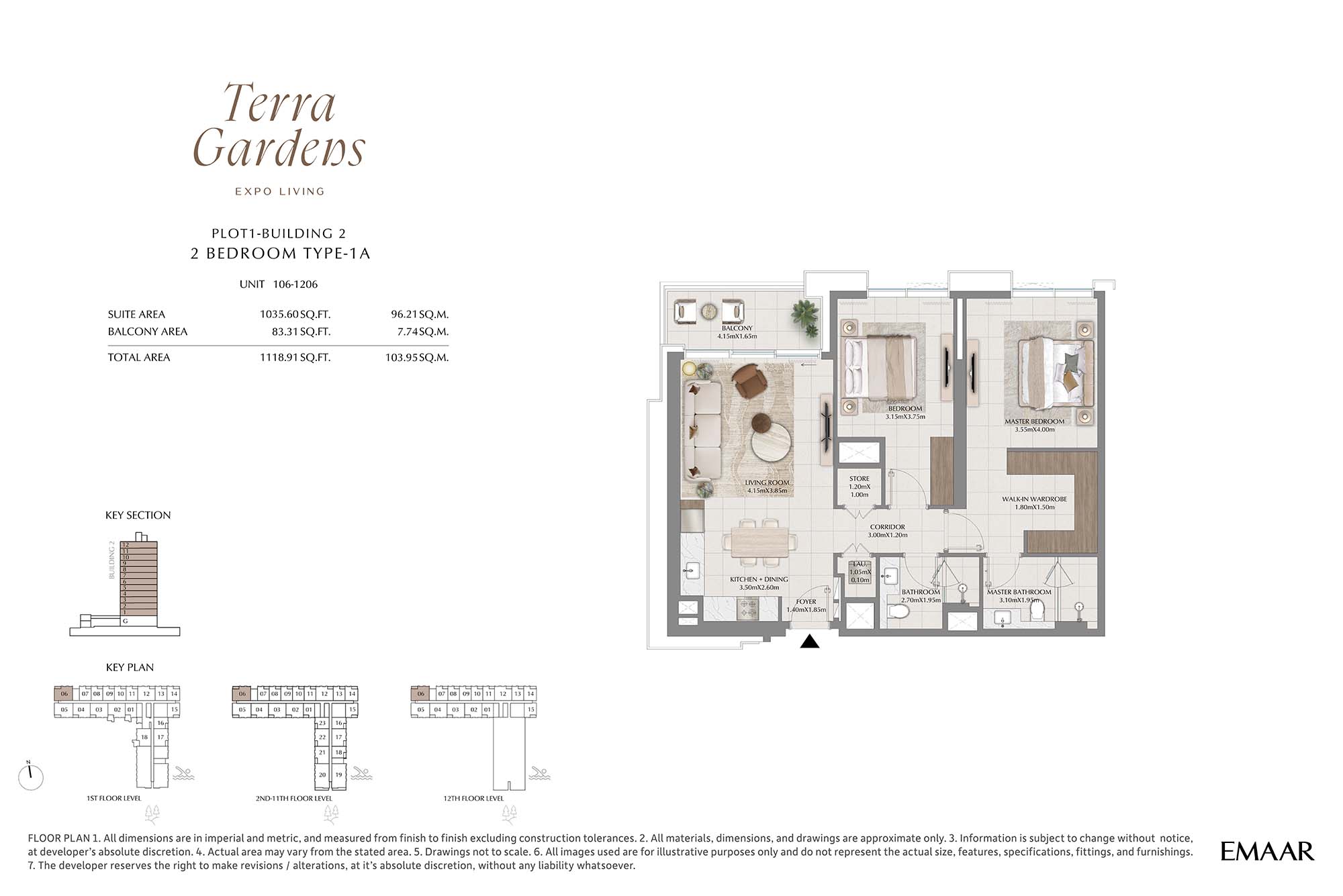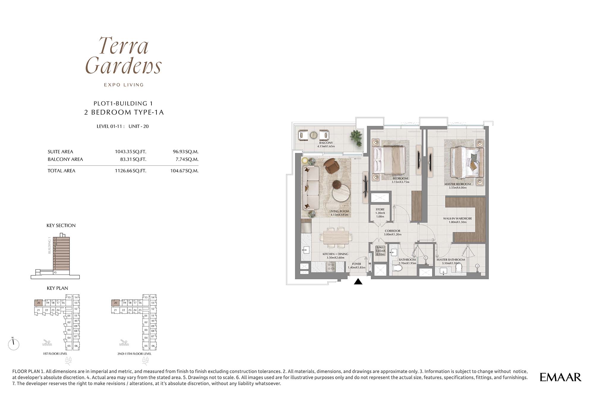 | Building 1 | 2 Bedrooms | 1st-11th Level Unit-20 (Type-1A) | 1126.66 Sq Ft | Apartment |