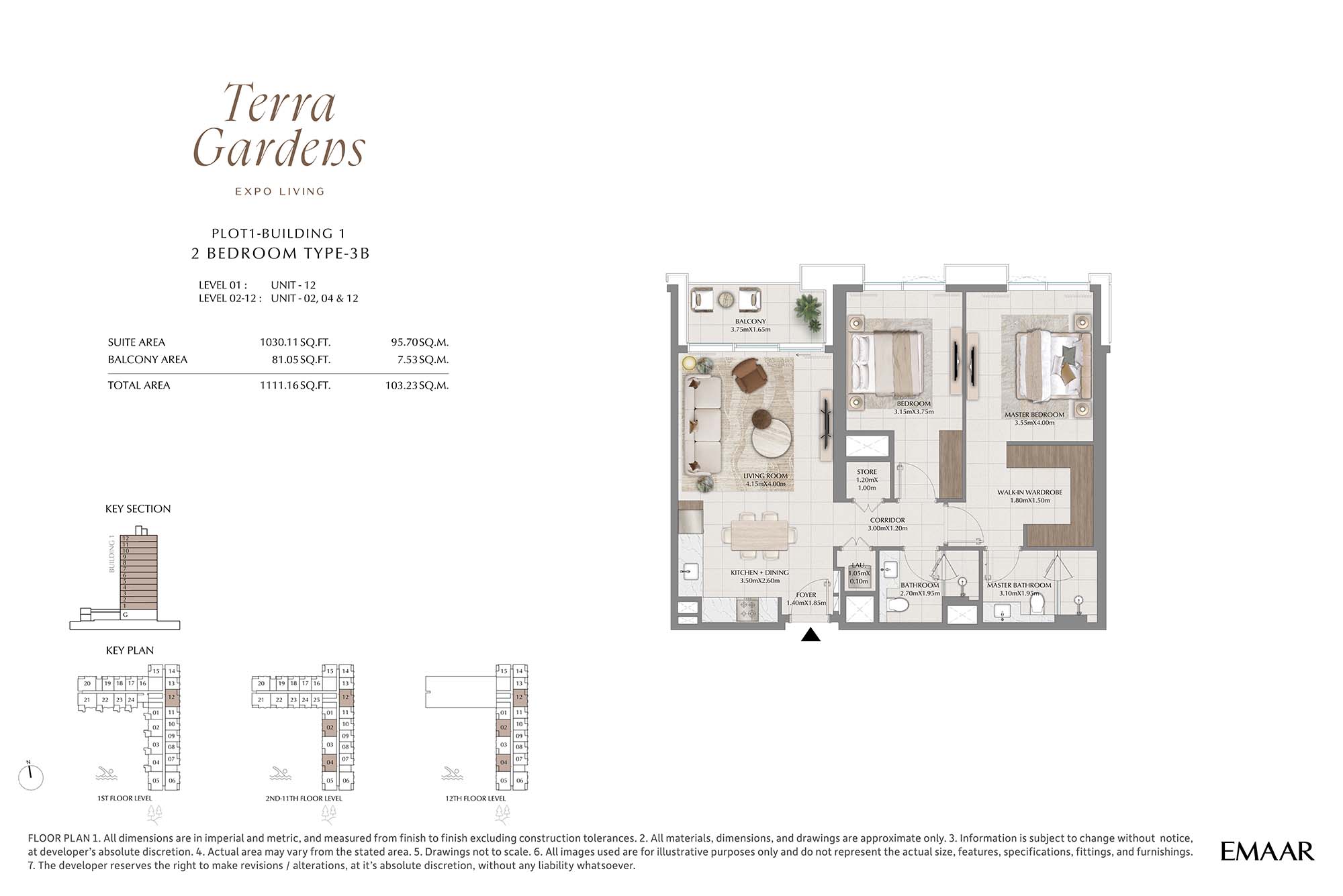 | Building 1 | 2 Bedrooms | 1st-12th Level Unit-02-12 (Type-3B) | 1111.16 Sq Ft | Apartment |