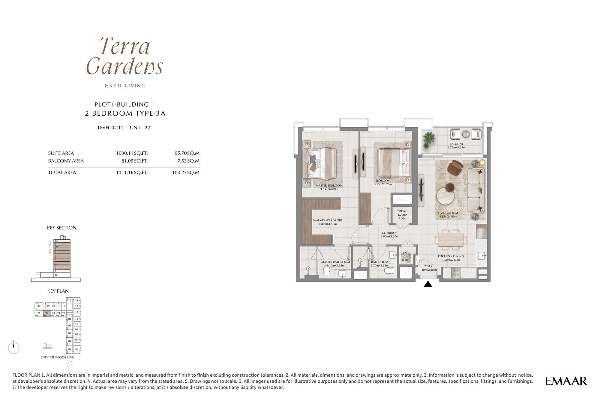 | Building 1 | 2 Bedrooms | 2nd-11th Level Unit-22 (Type-3A) | 1111.16 Sq Ft | Apartment |