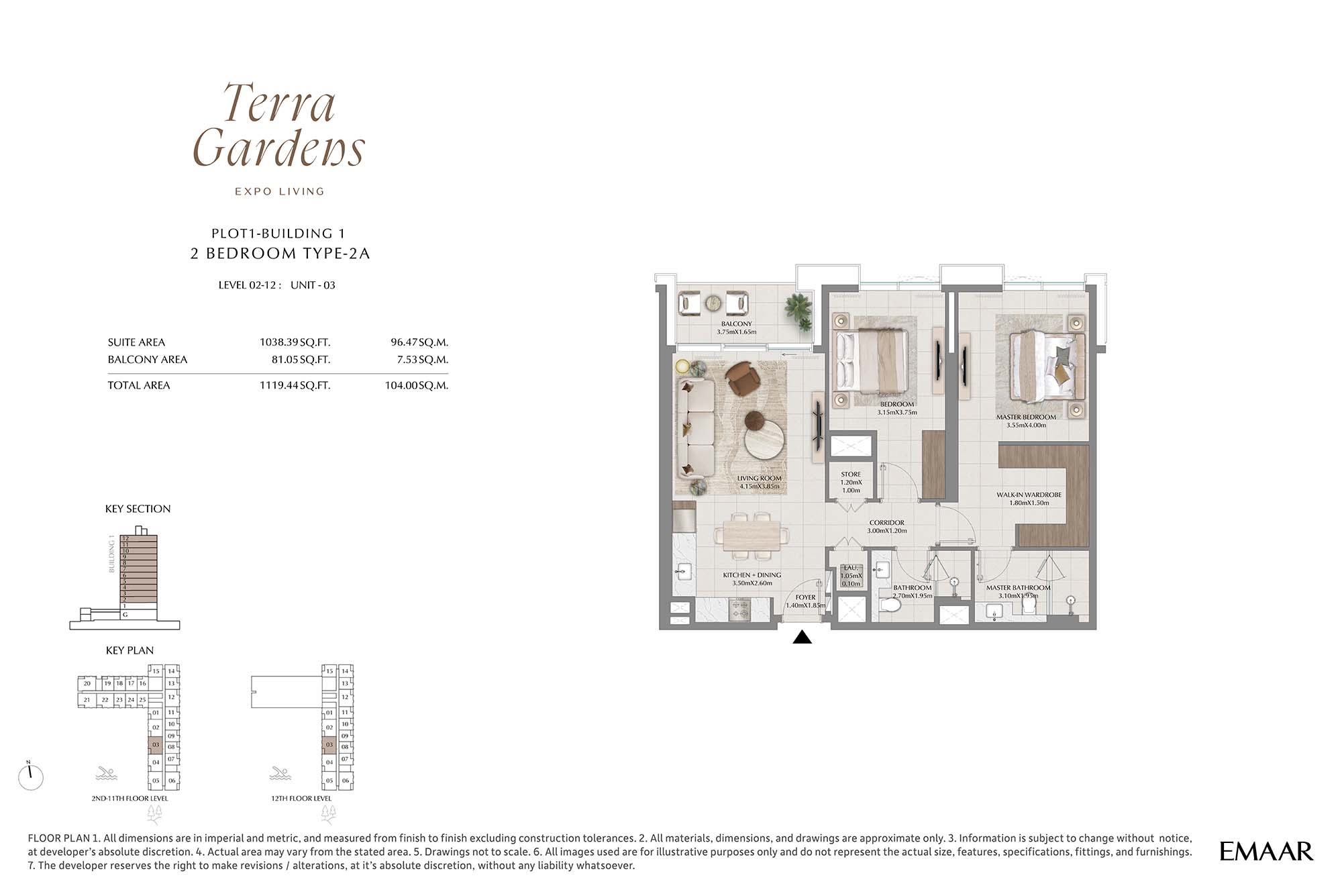 | Building 1 | 2 Bedrooms | 2nd-12th Level Unit-03 (Type-2A) | 1119.44 Sq Ft | Apartment |
