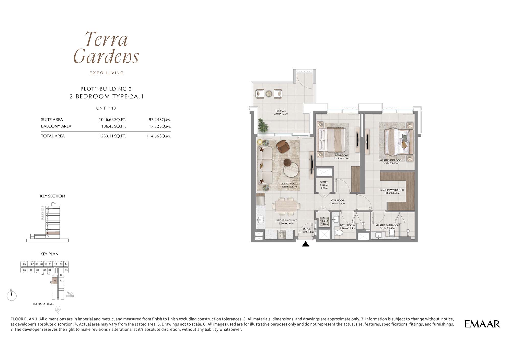 | Building 2 | 2 Bedrooms | 1st Level Unit 118 (Type-2A.1) | 1233.11 Sq Ft | Apartment |