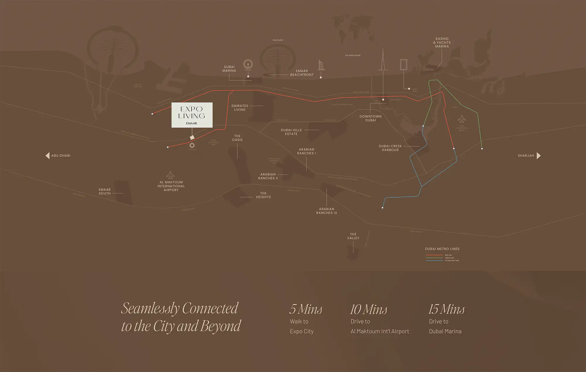 Terra Gardens celebrates a family-focused and harmonious lifestyle located at the exclusive Expo Living in Madinat Al Mataar of Dubai. In this premier escape, connectivity is a privilege for seamless connection throughout the city within minutes. This address is just moments from the Expo Metro station and the intersection of Sheikh MBZ and Expo Roads. With these amazing routes and means of transportation, you are within a short drive from the Al Maktoum International Airport, Dubai Marina, The Palm, and Burj Al Arab. The Expo Mall and the futuristic Expo City with business setups, tourist attractions, and modern infrastructure are also in the locality for exploration.