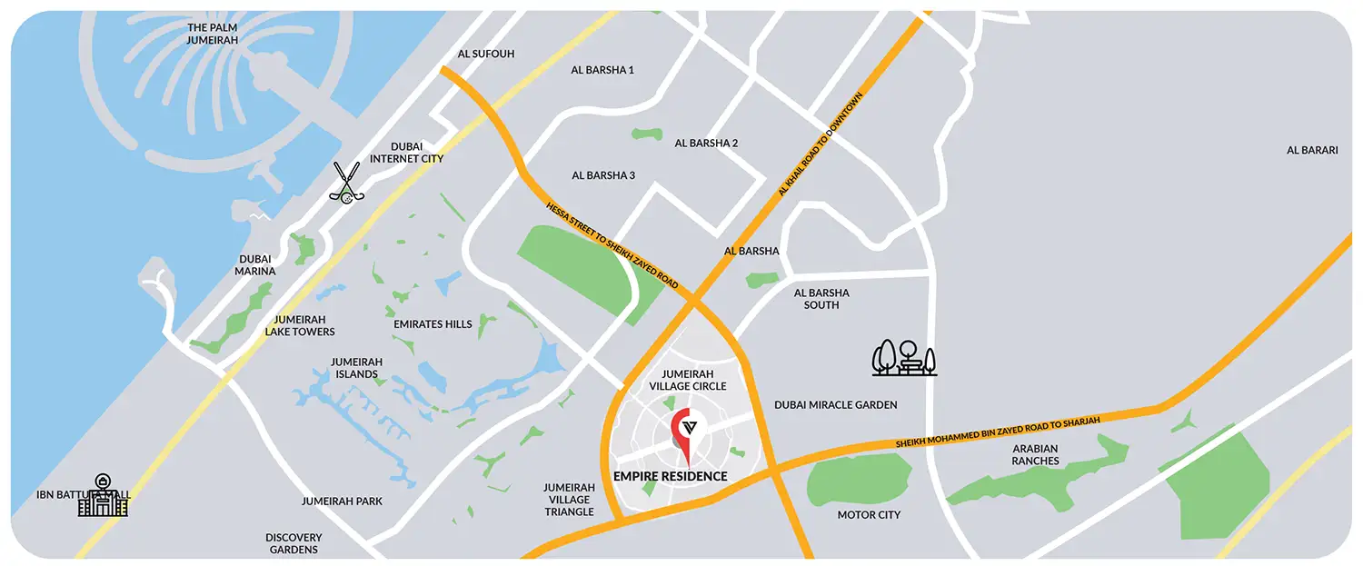 - Strategically located in Jumeirah Village Circle (JVC), just minutes from Downtown Dubai, Palm Jumeirah, and Mall of the Emirates.