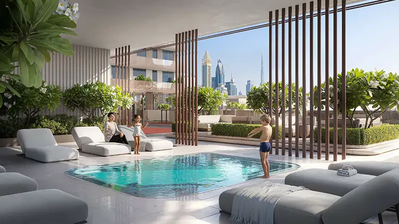 The development provides residents with more than residential dwellings as it features sophisticated lifestyle amenities of an international calibre. Available amenities include swimming pools and a gym with modern facilities along with a CrossFit area that allows residents to practice outdoor workouts. Parents find happiness with the dedicated children's play facilities and kid-friendly pools and families looking for wellness can utilize meditation and yoga areas with relaxation spaces. The residence provides easy social interactions through its welcoming barbecue facilities and lounge areas, where memorable family and friend weekends take place.