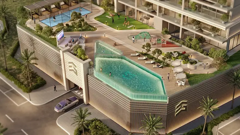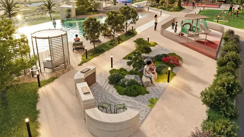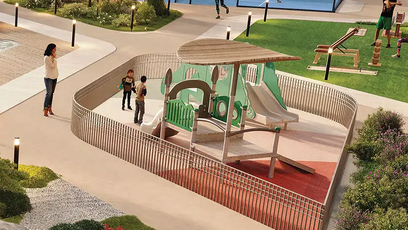 - A premium series of amenities infinity pool, yoga zone, a jogging track, kids’ play area, padel court, gym, Zen Garden, rooftop forest, BBQ zone, and outdoor cinema