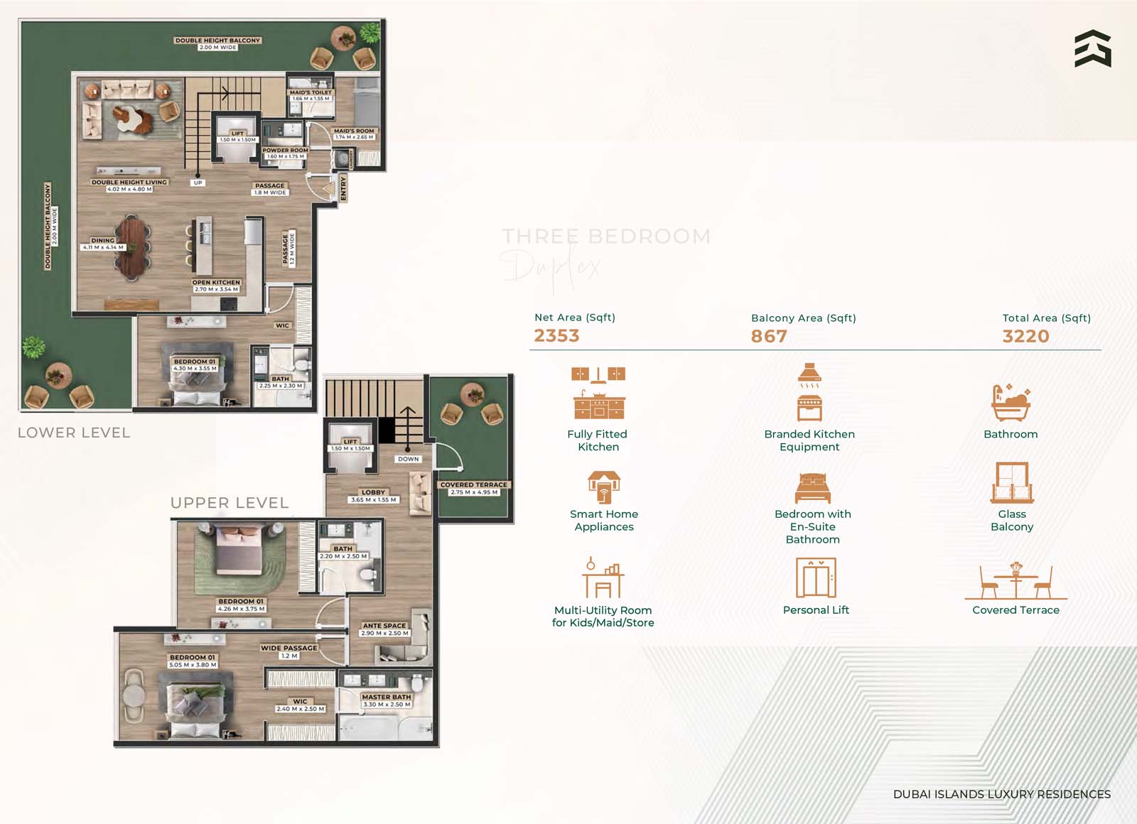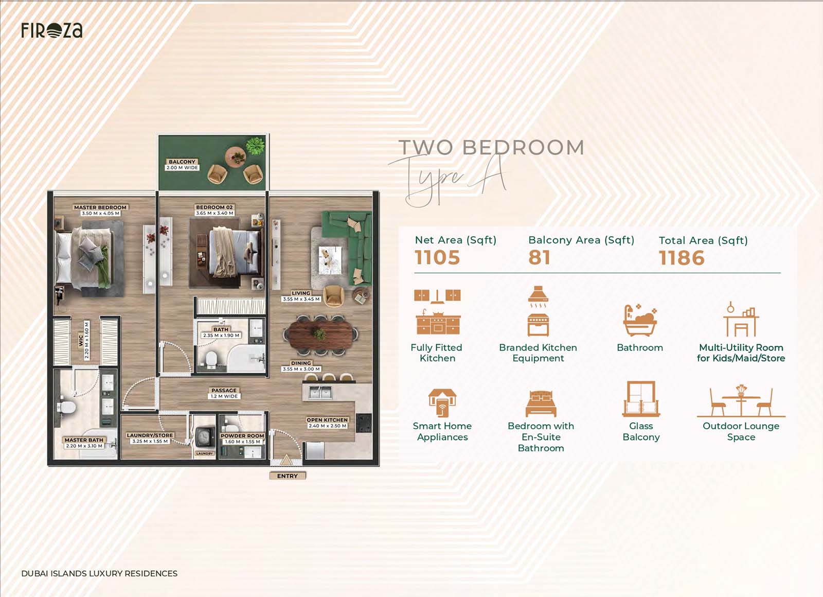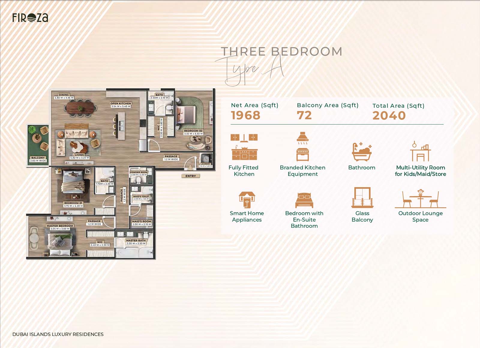 Firoza by Ever Glory Developments is a deluxe accommodation at Dubai Islands, featuring 1, 2, 2.5, and 3-bedroom apartments, duplexes, & townhouses. Revealing a better future, this magnificent residential address offers possibilities in this realm of luxury. It is a groundbreaking property that will redefine what it means to be luxurious. Crafted for those who value and are looking for elegant & private homes surrounded by the tranquillity of the inspiring island. Blending modernist architecture with top-notch built-in amenities, scenic views of the mall, lush and vibrant suburban setting, it is a refined escape that enhances the alluring beauty of a floating paradise.