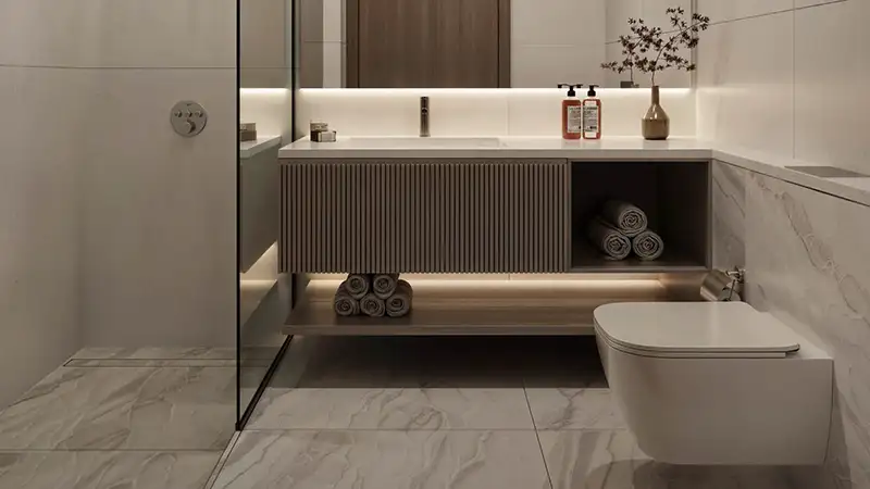 The entrance of this building offers a testament to the creativity that is perfectly aligned with contemporary luxury and soft functional aesthetics. Here, you will be welcomed delightfully by a reception desk, which is followed by the grand lobby with a waiting area. Here, every decorated sculpture, rich lighting, earthy and neutral tones, smooth & intricate finishes, and exquisite quality of materials that exude a true sense of never-fading luxury. The corridor also comes with ample storage, 2 residential elevators, and a service lift for instant functionality from inside out.
