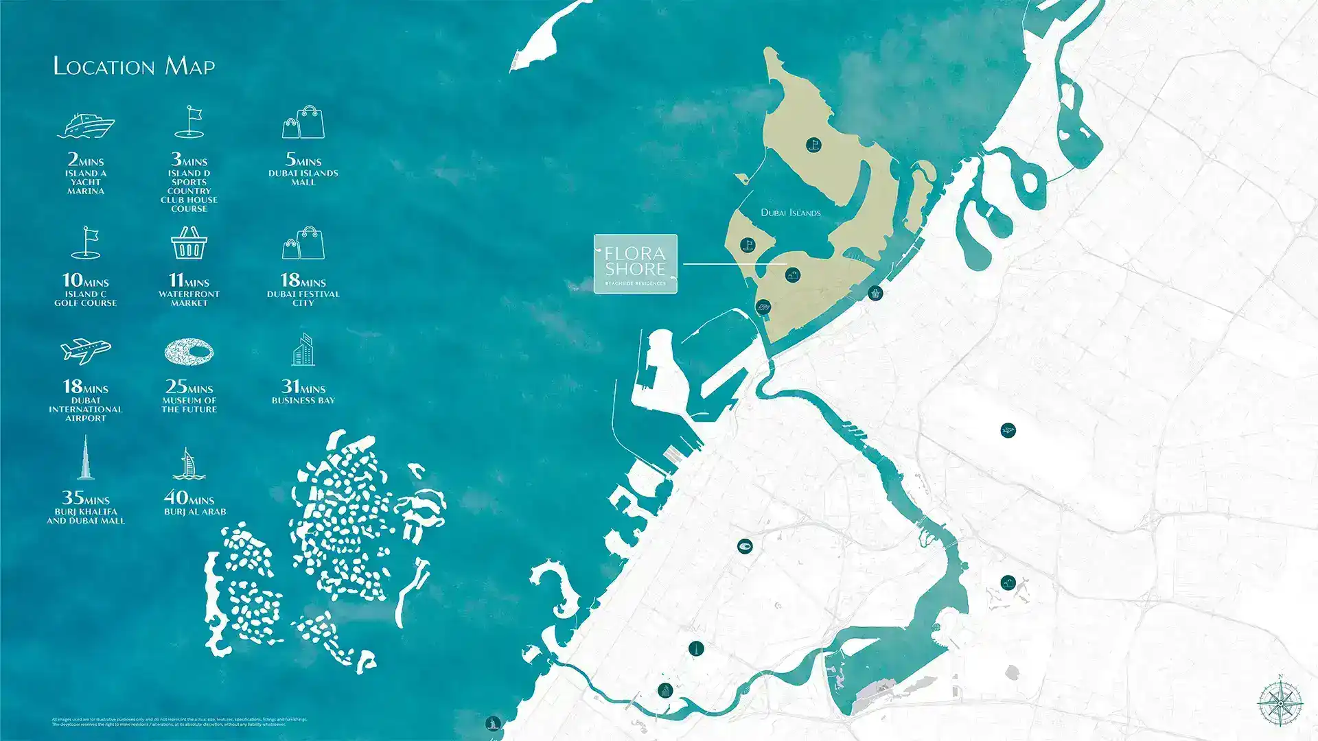 - Located on Dubai Island A that offers waterfront residential areas, a shopping mall, beaches, and a vibrant art & cultural district