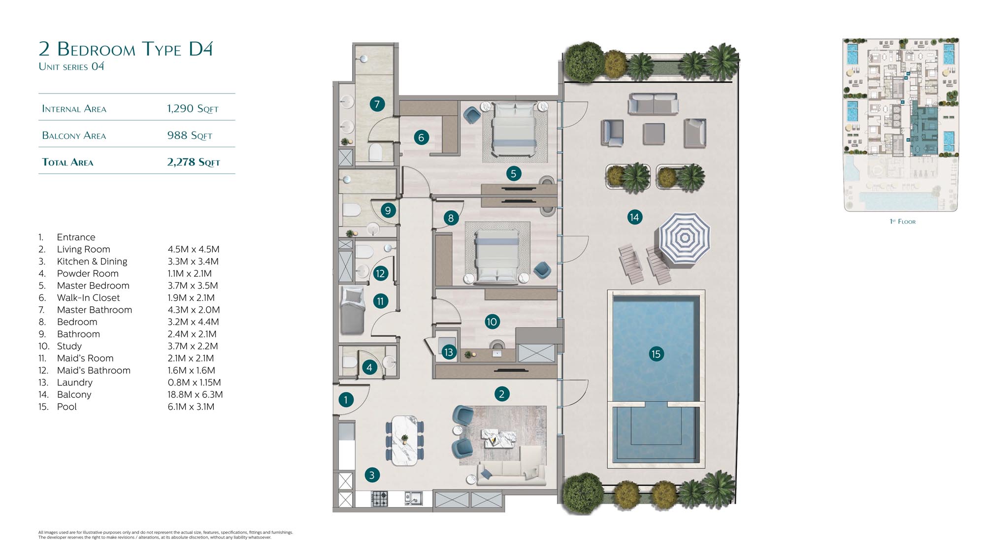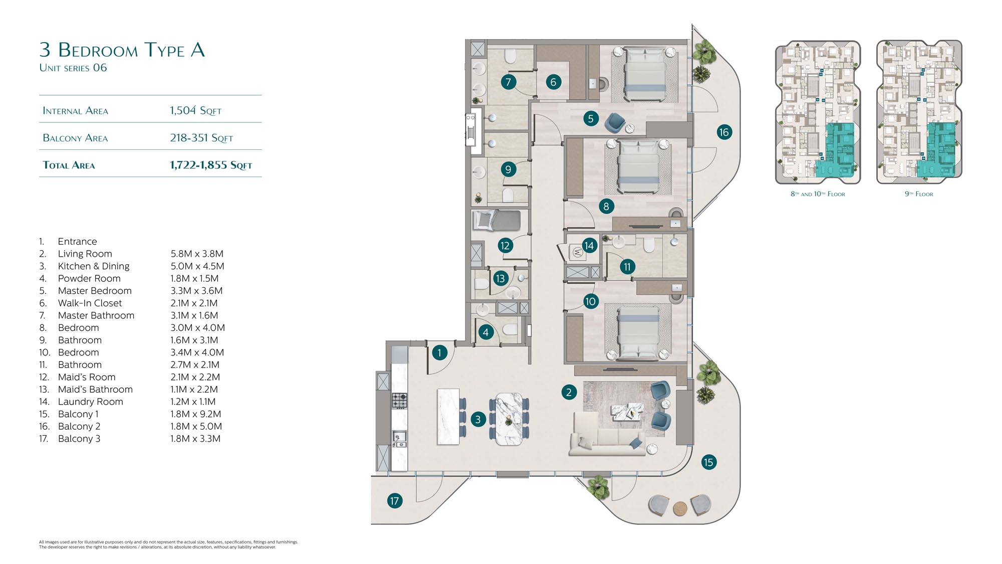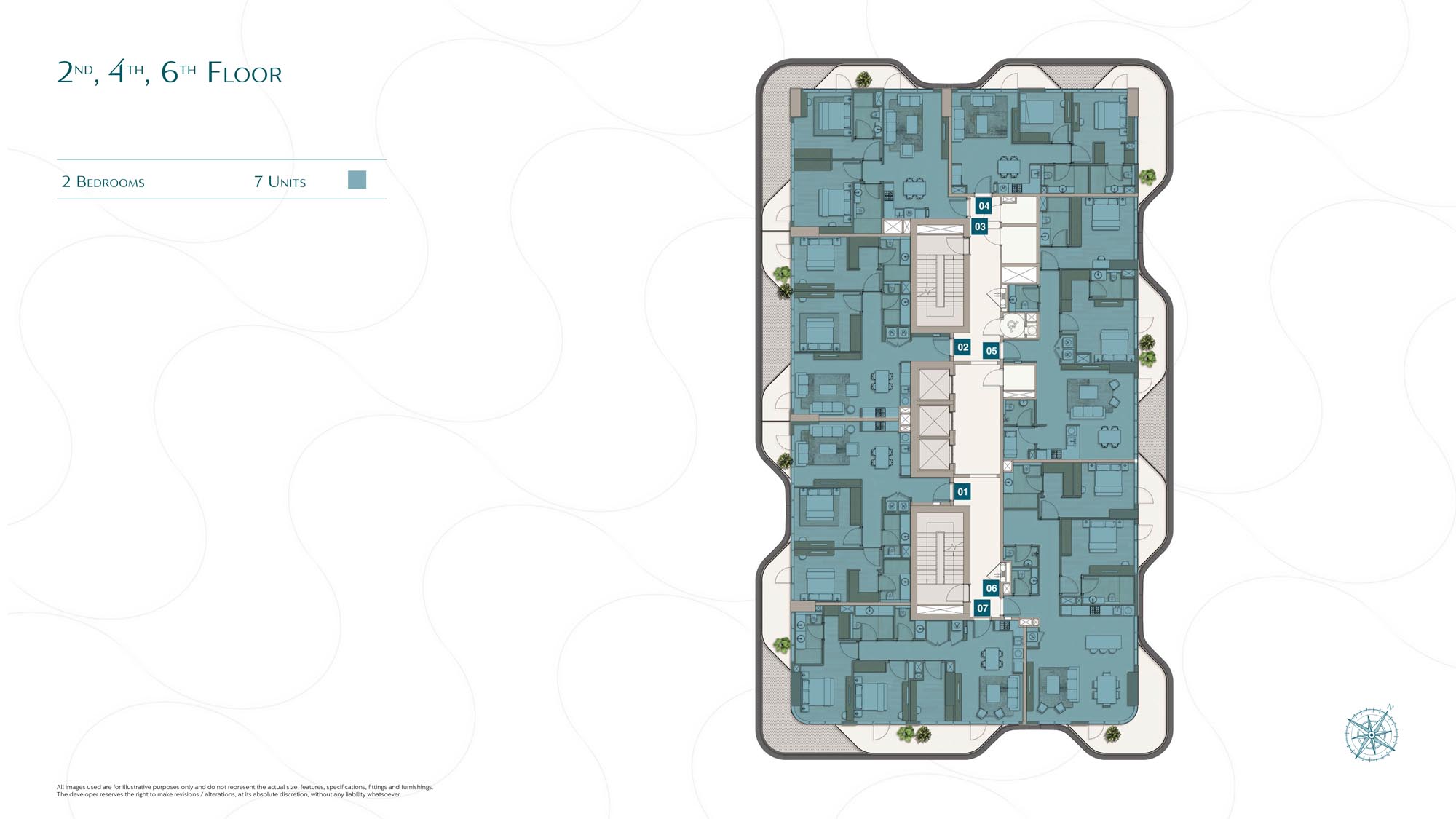 Flora Shore exudes itself as a symbol of pristine coast-side living with 14 storeys, offering 2, 3, & 4-bedroom apartments with dynamic floor plans. There are only 76 fully furnished units throughout the 14 floors, designed to promote efficiency in daily life. In each unit, the living room is grand with 3.2 metres height, a seating area, a dining zone, and an open kitchen with premium materials and appliances. The bedrooms are also grand with walk-in closets and huge windows that offer sun-lit ambience and an ideal space to relax in privacy.